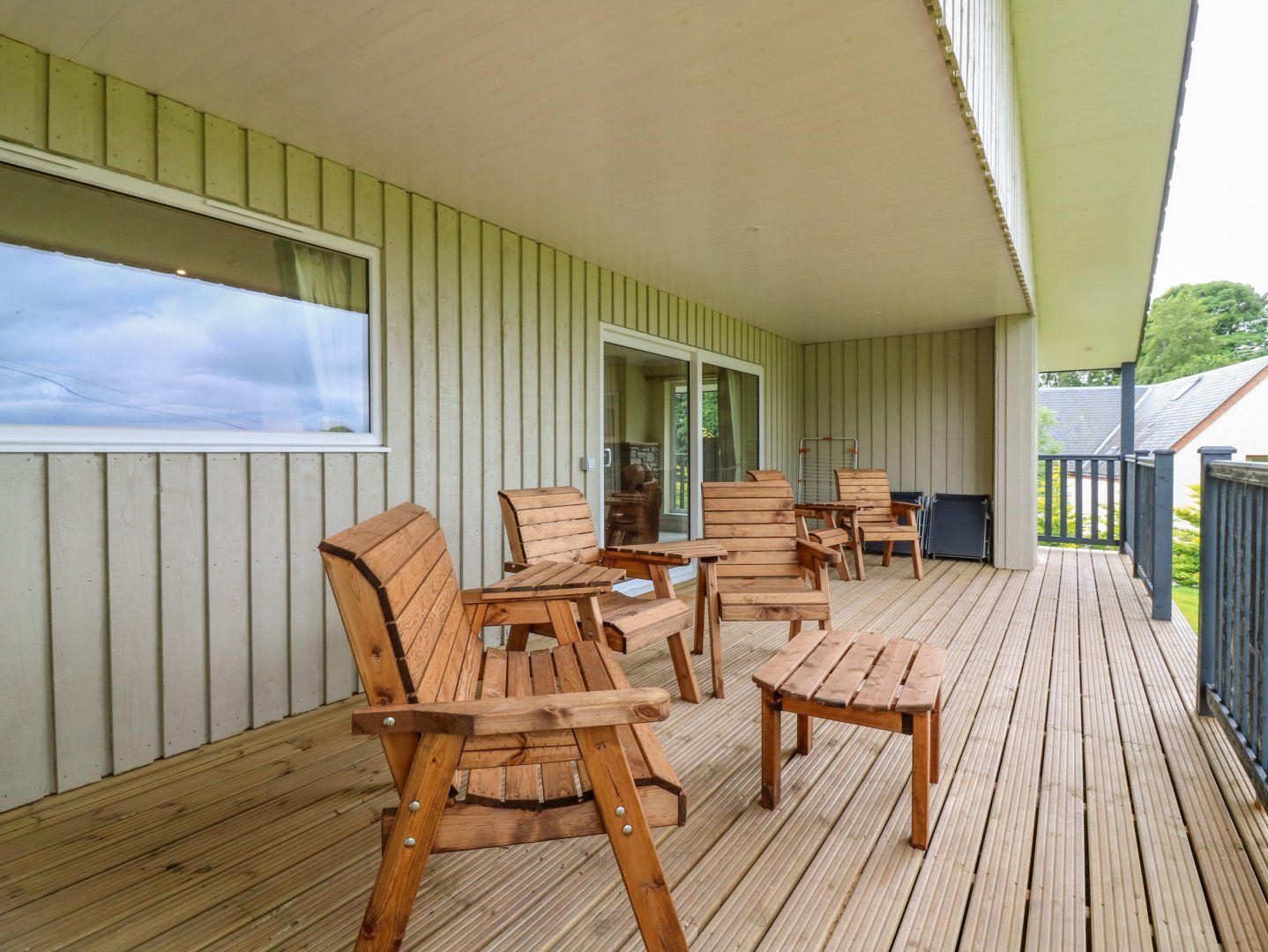Holiday home The living areas in the property consists of an open-plan living area with a kitchen with electric oven and hob, microwave, fridge/freezer, washing machine, dishwasher, dining seating for six, a utility with washing machine, and a sitting room with Smart TV and woodburning stove. The bedrooms consist of two super-king-size which can be twin, and a king-size with en-suite shower room, along with a bathroom. Outside, there is a rear garden with decking, lawn and seating, as well as off-road parking for three cars. Within 1.8 miles, you will find a shop and a pub, and please note that this is a non-smoking property. WiFi, fuel, power, bed linen and towels are all included in the price. One well-behaved pet welcome at an additional cost of £25. Highchair and cot available. The garden is not enclosed. Add a touch luxury to your next Scottish adventure with a stay at The Lodge.