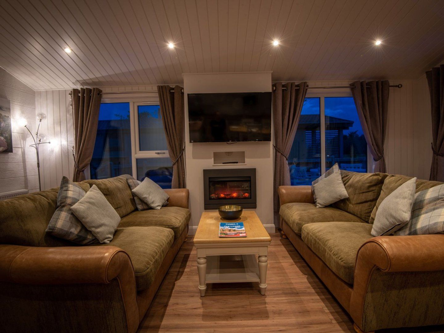 Holiday home The living areas in the property consist of an open-plan living area with a kitchen with an oven, gas hob, microwave, fridge, dining seating for six people, and a sitting room with Smart TV and electric fire. The bedrooms consist of two doubles, one of which has an en-suite bathroom, and a twin, along with a shower room. Outside there is a garden with private decking, furniture and hot tub, as well as off-road parking available in large on-site car park. Within 0.7 miles, you will find a shop and pub, and please note that this is a non-smoking property. WiFi, fuel, power, bed linen and towels are all included in the price. Pets are not permitted at this property. There is an on-site bar/restaurant, but it is only available for private functions. Treat your loved ones to a getaway with a touch of splendour at Silverbirch Lodge. For stays over 25th December, Christmas lunch is included in the rental, subject to party size.