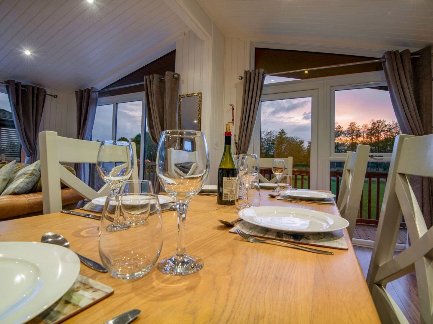 Holiday home The living areas in the property consist of an open-plan living space with a kitchen hosting an electric oven, gas hob, microwave, fridge, a dining area with seating for six people, and a sitting area with a Smart TV and an electric fire. The bedrooms consist of a double with an en-suite bathroom and two further doubles, along with a shower room. To the back of the property, there is private decking with furniture, along with communal parking at at an on-site car park. Within 0.7 miles, you will find a shop and a pub. Please be aware that this is a non-smoking and a pet-free abode. WiFi, fuel, power, bed linen and towels are all included in the price. A wonderful time away awaits at The Cedars. Note: There are steps leading up to the decking, please take care. Note: There is an on-site bar/restaurant, but it is only available for private functions. For stays over 25th December, Christmas lunch is included in the rental, subject to party size.