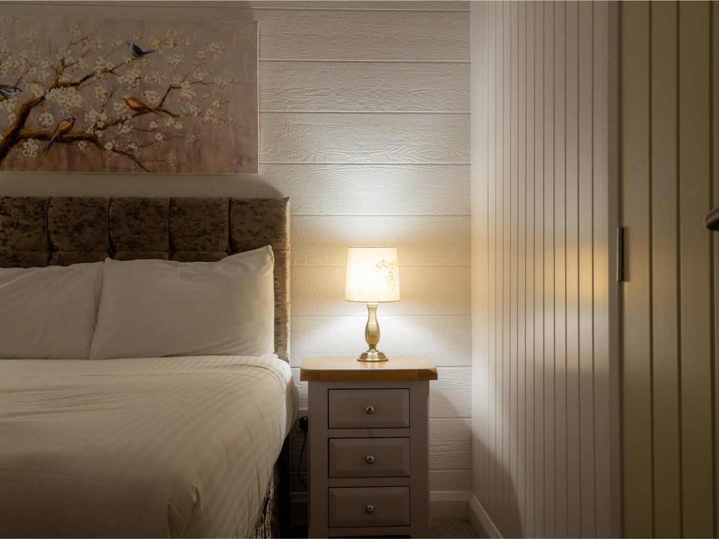 Holiday home The living areas in the property consist of an open-plan living area with a kitchen with an oven, gas hob, microwave, fridge, dining seating for four people, and a sitting room with Smart TV and electric fire. The bedrooms consist of two doubles, one of which has an en-suite shower room, both have Jack-and-Jill access to a bathroom with jacuzzi spa bath and heated towel rail, along with a shower room. Outside there is a garden with private decking with furniture, as well as off-road parking available in large on-site car park. Within 0.7 miles, you will find a shop and pub, and please note that this is a non-smoking property. WiFi, fuel, power, bed linen and towels are all included in the price. Pets are not permitted at this property. Whisk your loved ones away for a stylish escape at Rait. For stays over 25th December, Christmas lunch is included in the rental, subject to party size.