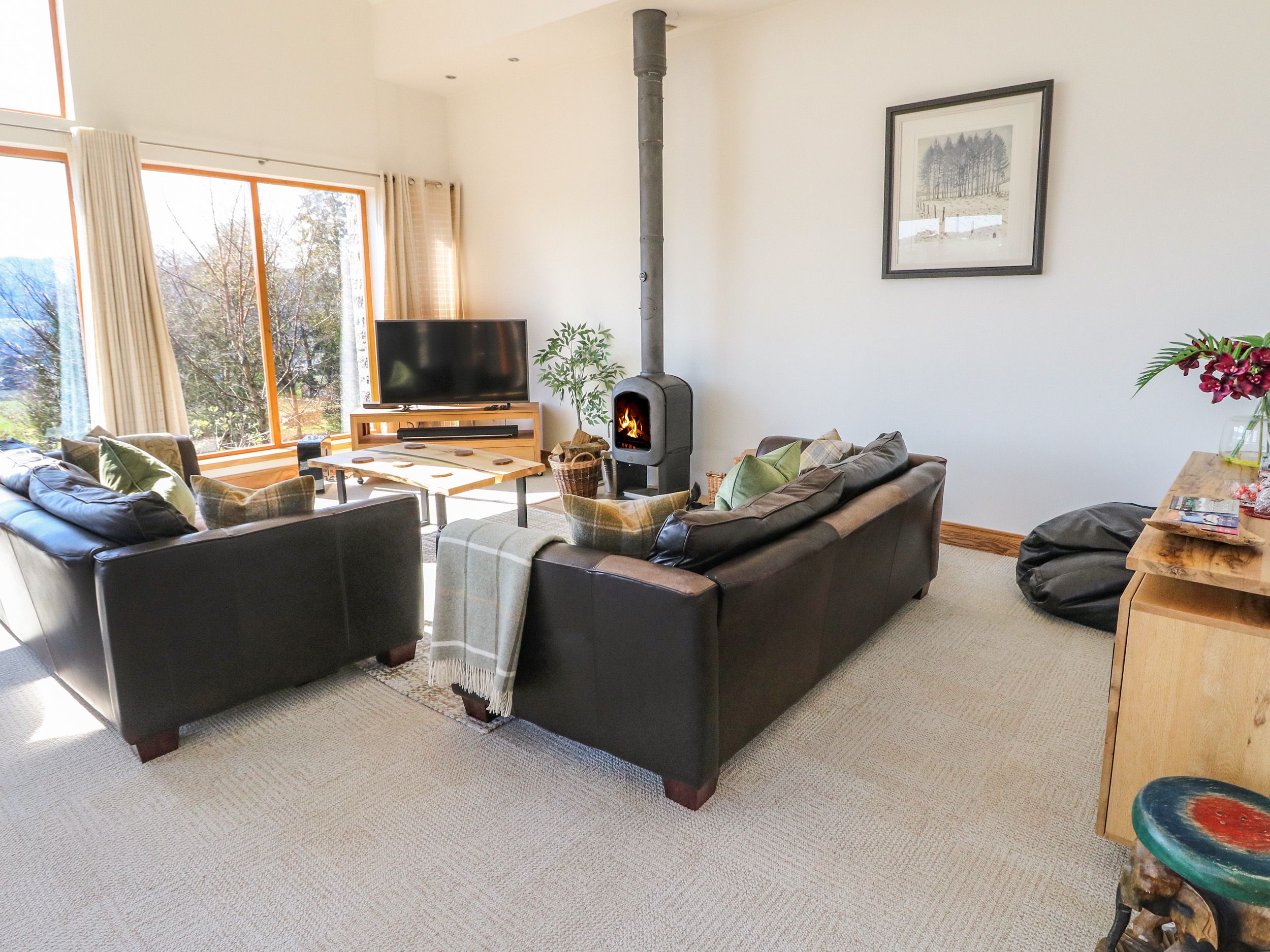 Holiday home Balvaig is a detached property resting on the outskirts of Pitlochry. It comes with three bedrooms, comprising of two king-size doubles and a twin bedroom, together sleeping up to six people and served by a bathroom with a shower over bath and a bathroom with a bath and separate walk-in shower. Completing the interior is an open-plan living room with kitchen, dining area and sitting area with woodburning stove. Outside, there is off-road parking for three cars, balcony area and a lawn garden. Balvaig is a wonderful retreat for you and your loved ones to explore this part of Scotland.