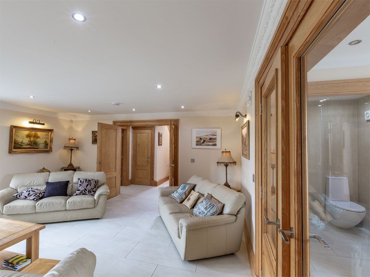 Gaze out at the glorious greenery through the great glass windows of your modern, five-bedroom holiday home for up to 10 guests. Luxuriate in its contemporary features, including exquisite limestone and underfloor heating on the ground floor, and oak flooring upstairs.