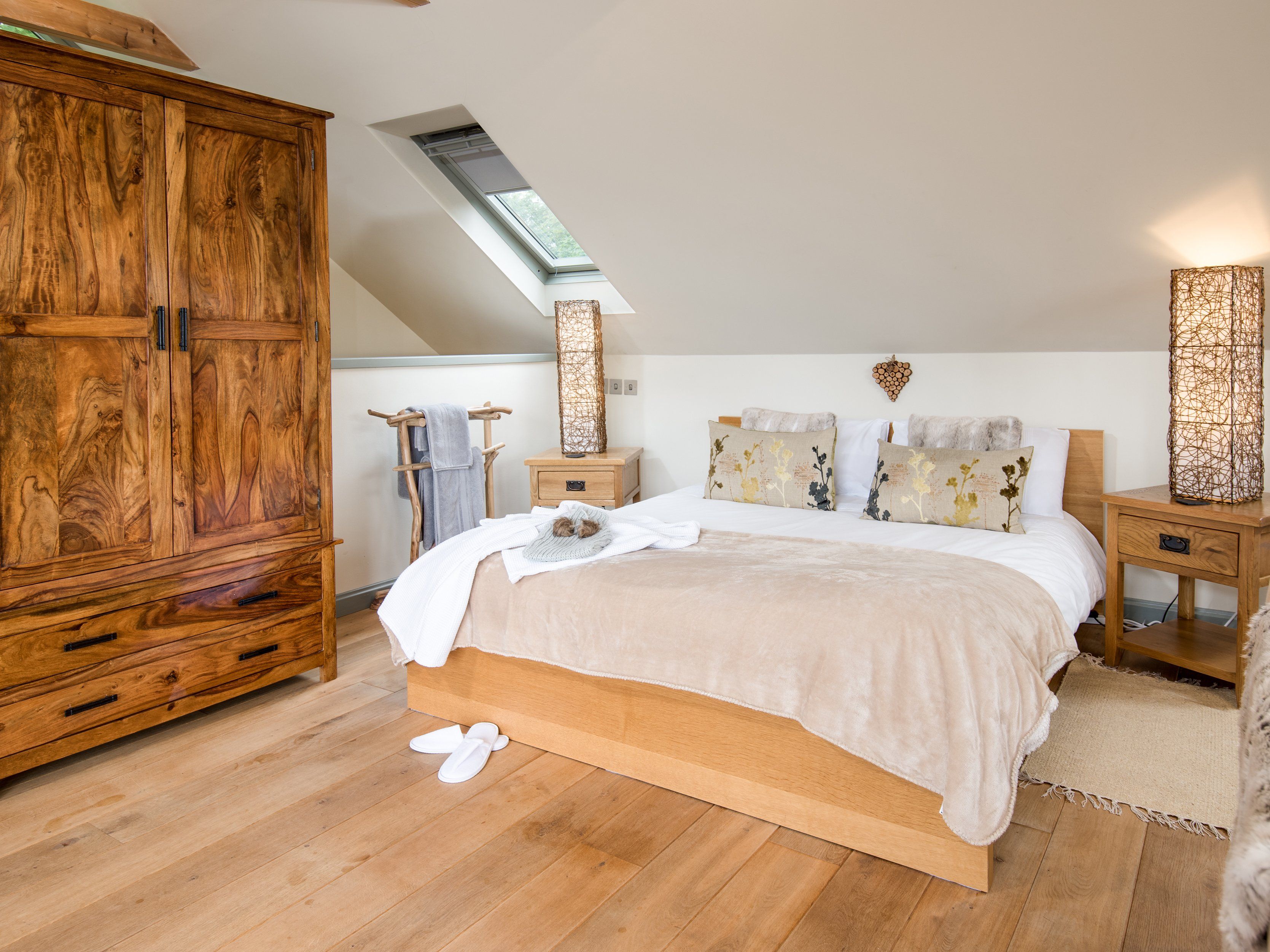 Amenities Electric underfloor heating on ground floor with woodburner on first floor. Electric oven and ceramic hob, fridge, Smart TV with freesat, Bluetooth speakers, CD/radio, WiFi, landline phone (for emergency use only), selection of books, games and DVDs. Fuel, power and starter pack for woodburner inc. in rent. Bed linen and towels inc. in rent. Off road parking for 1 car in covered car port. Bike storage. Decked balcony with furniture. Lawned garden. Access to 2 acres of grounds including paddock, woods and stream. One well-behaved pet welcome. Sorry, no smoking. Shop and pub 6 miles. Note: There are steps down to the lawned area and there is a pond in the garden, pets to be supervised. Note: Adults only, no infants. Note: Check-in 4pm. Note: No mobile signal at this property