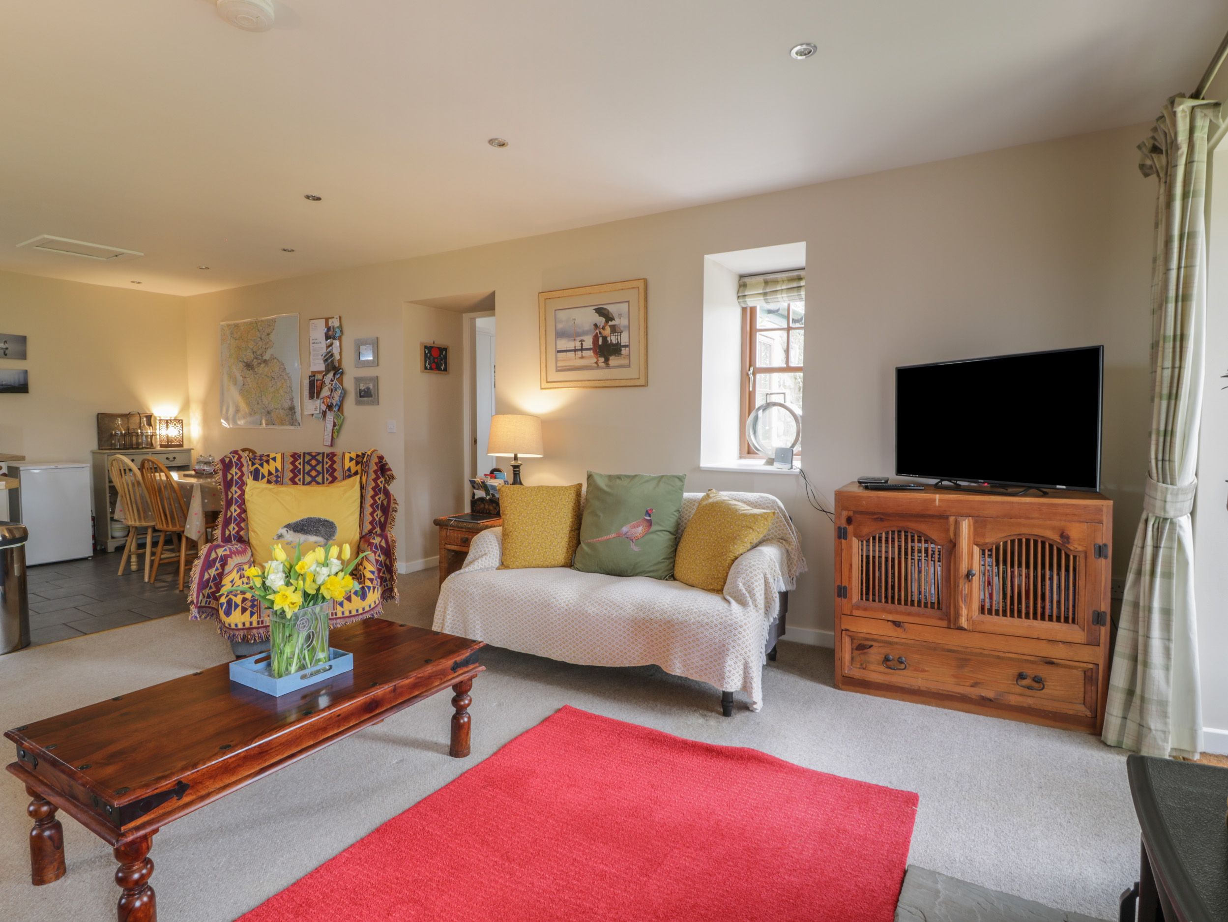 Beautiful, well situated find, starting with the extremely friendly owner's welcome, very generous welcoming gift basket, to the clean, very comfortable & surprisingly spacious accommodation, every single need was catered for. It was extremely well stocked, including an excellent, clean kitchen, warm & cosy throughout with plentiful hot water, we thoroughly enjoyed our stay, there was an excellent fully enclosed garden with a generous patio & lawn & full access to the field boundaries on the farm which we respectfully used to walk our dogs.