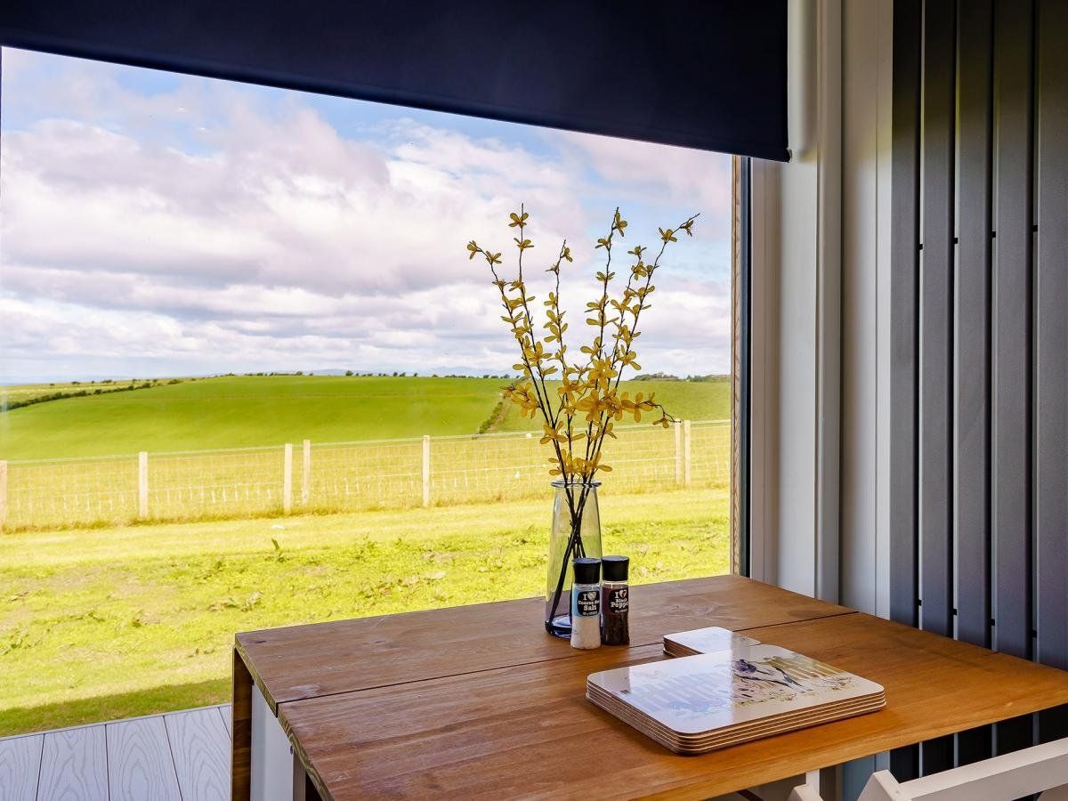 Set on a working farm with stunning views stretching to the Isle of Arran, Ailsa Craig, Northern Ireland, and the Mull of Kintyre, this contemporary lodge offers a peaceful retreat.