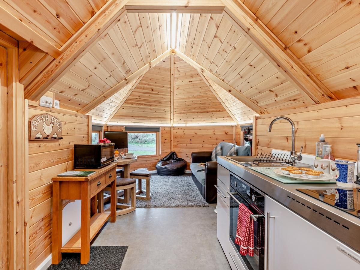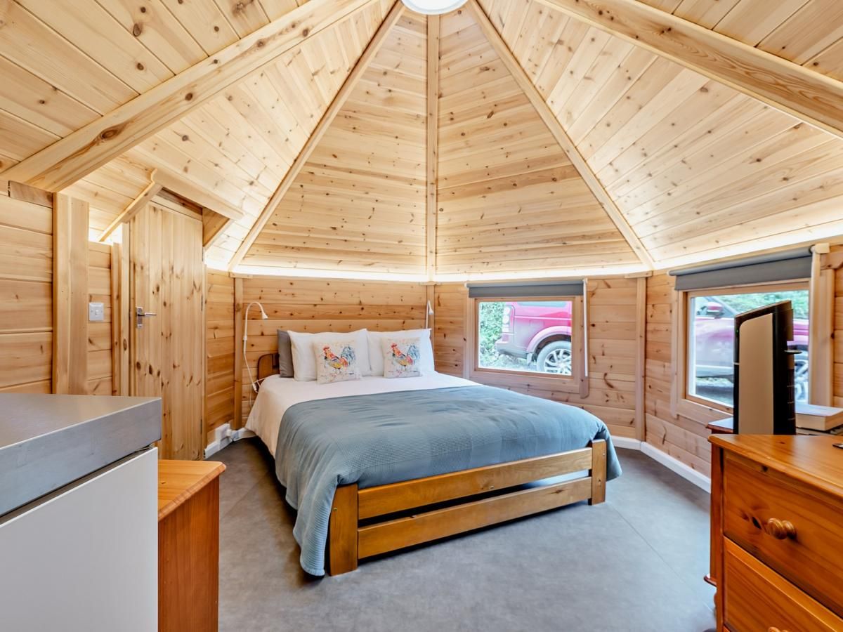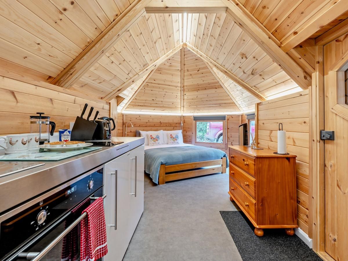 From meeting the resident alpacas and sheep to soaking in the private outdoor hot tub overlooking open fields and woodlands, it’s the ideal setting to unwind. The cabin features an open-plan lounge/kitchen area, perfect for relaxing or planning adventures, and a king-size bedroom with a light and spacious wet room.