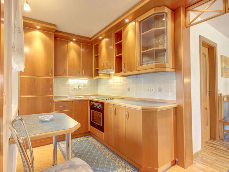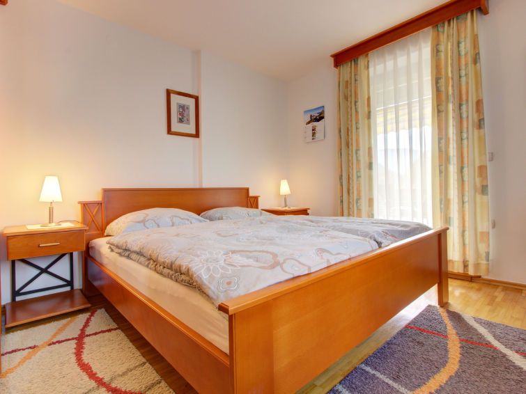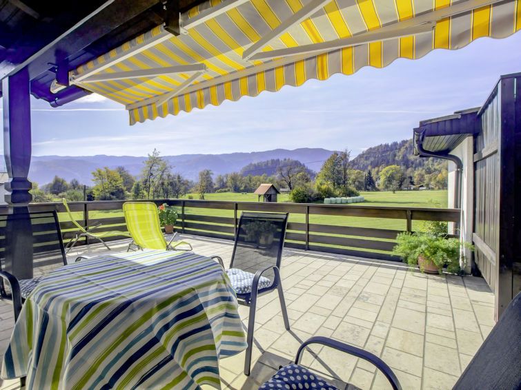 "Apartment Valvazor", 3-room apartment 70 m2 on 1st floor. Rustic furnishings: living/dining room with satellite TV (flat screen). Exit to the terrace. 2 rooms, each room with 1 double bed (1 x 180 cm, length 200 cm). Kitchen (4 ceramic glass hob hotplates, freezer, electric coffee machine) with dining table.