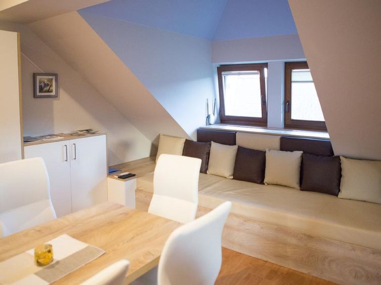 "Vila Lesce apartament dla 5 Gości", 2-room apartment 45 m2 on 2nd floor. Renovated in 2017, practical and comfortable furnishings: living/dining room with sloping ceilings with 1 bed, 1 double bed, kitchen corner, shower/WC, satellite TV and air conditioning. 1 room with sloping ceilings with 2 beds.