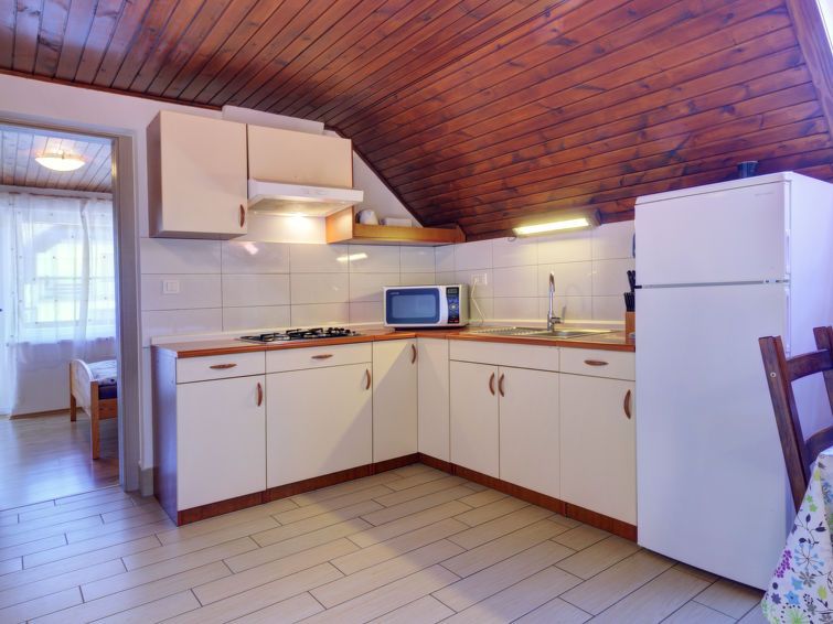 "Apartment Slatnik", 5-room penthouse 86 m2 on 2nd floor. Simple furnishings: 2 rooms, each room with 1 bed and 1 double bed. 2 rooms, each room with 1 double bed. Living/dining room with satellite TV (flat screen). Kitchen-/living room (4 hot plates, microwave) with dining table.