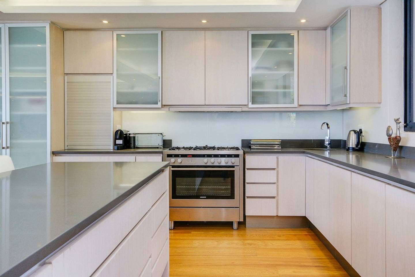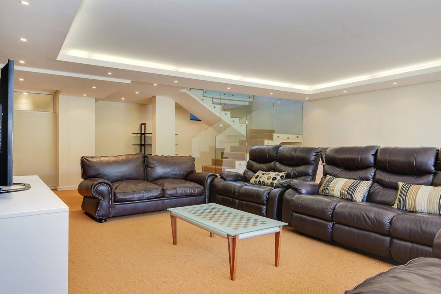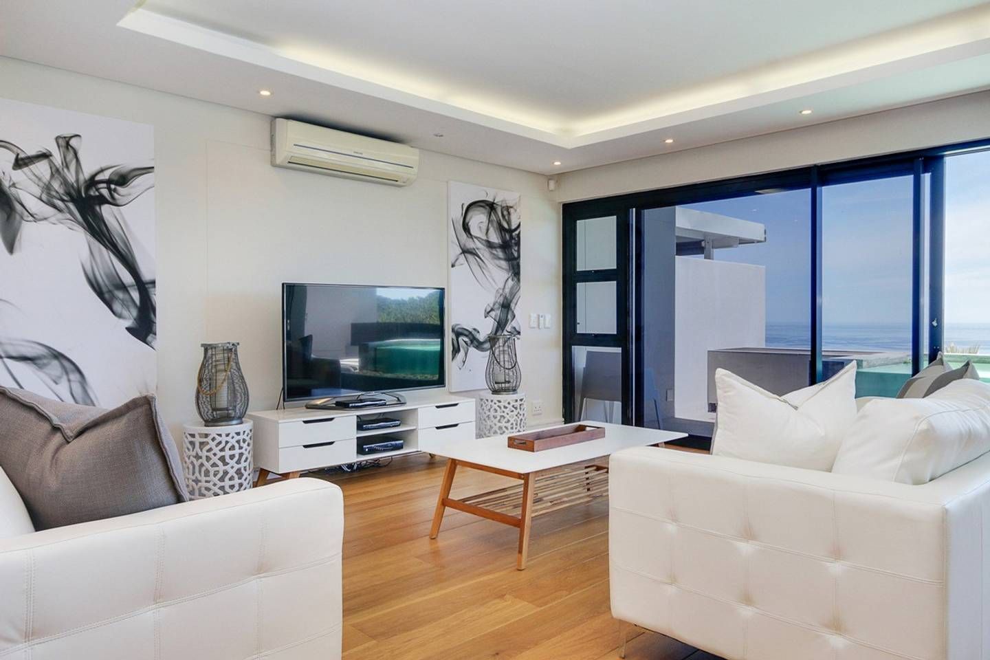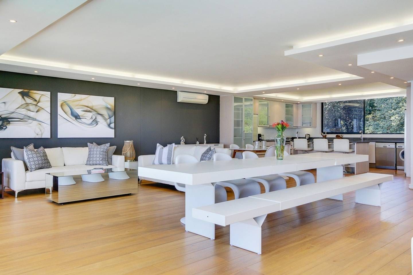 Step inside this exquisite villa in Camps Bay. Its contemporary design and excellent natural lighting combine to highlight both the stunning interior and the amazing vistas that surround the home. In the morning, make an iced coffee and go through the sliding doors, absorbing the ocean views, before plunging into the cooling pool. We adore the open plan living area that gives an airy space for everyone to relax and entertain, or head downstairs to the cinema room, remembering to bring along the popcorn.