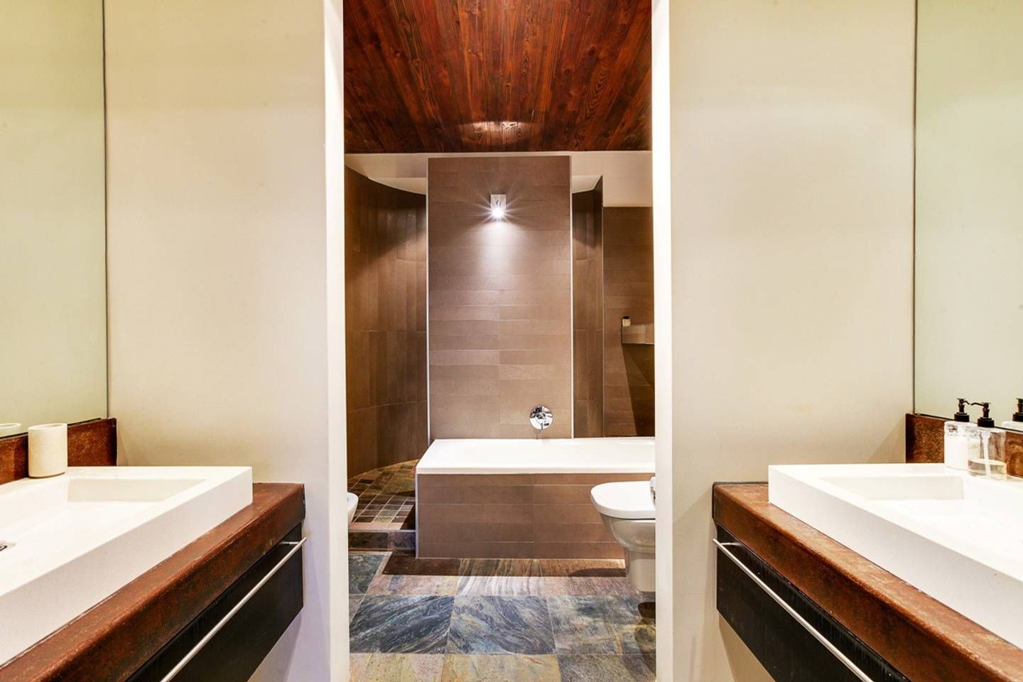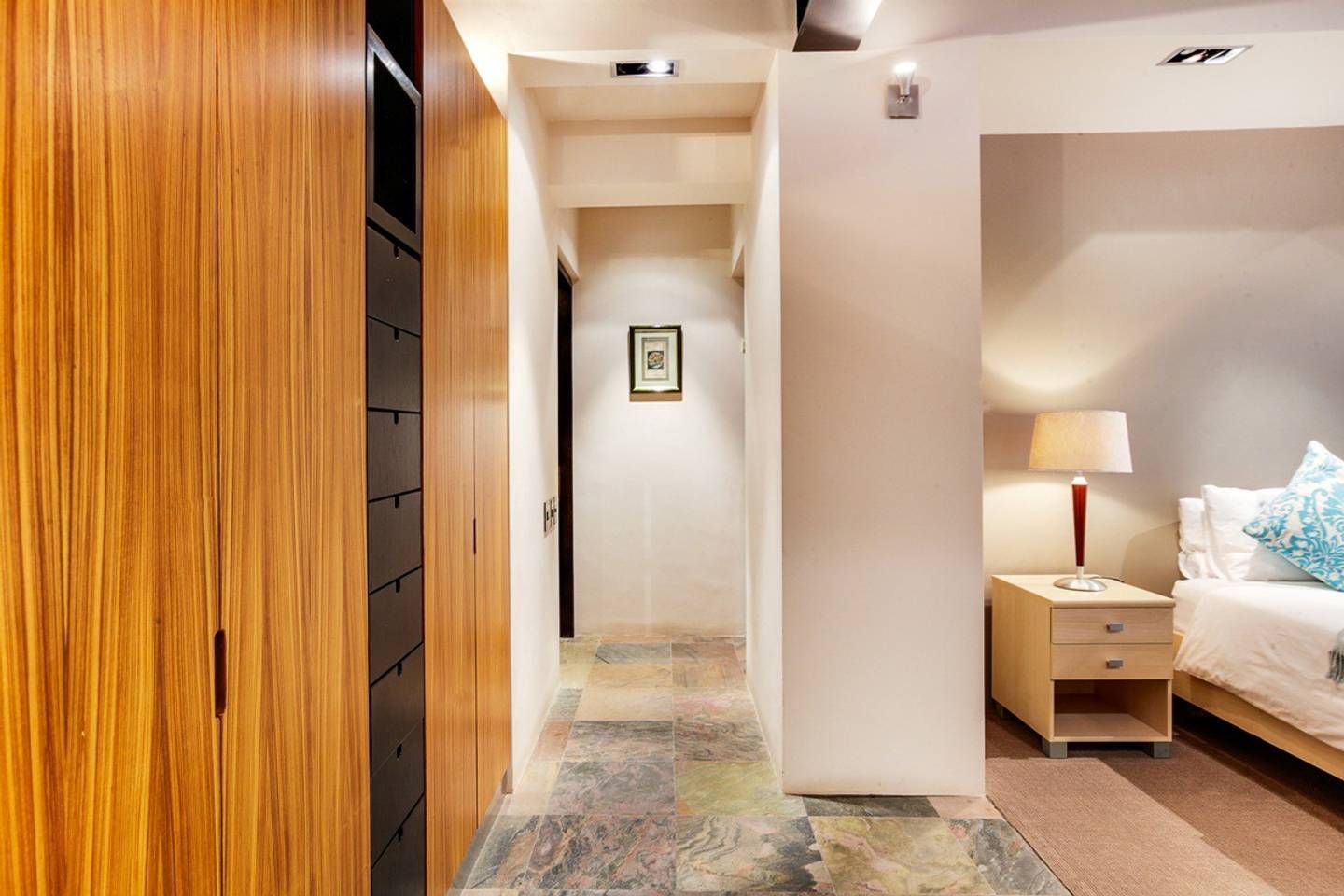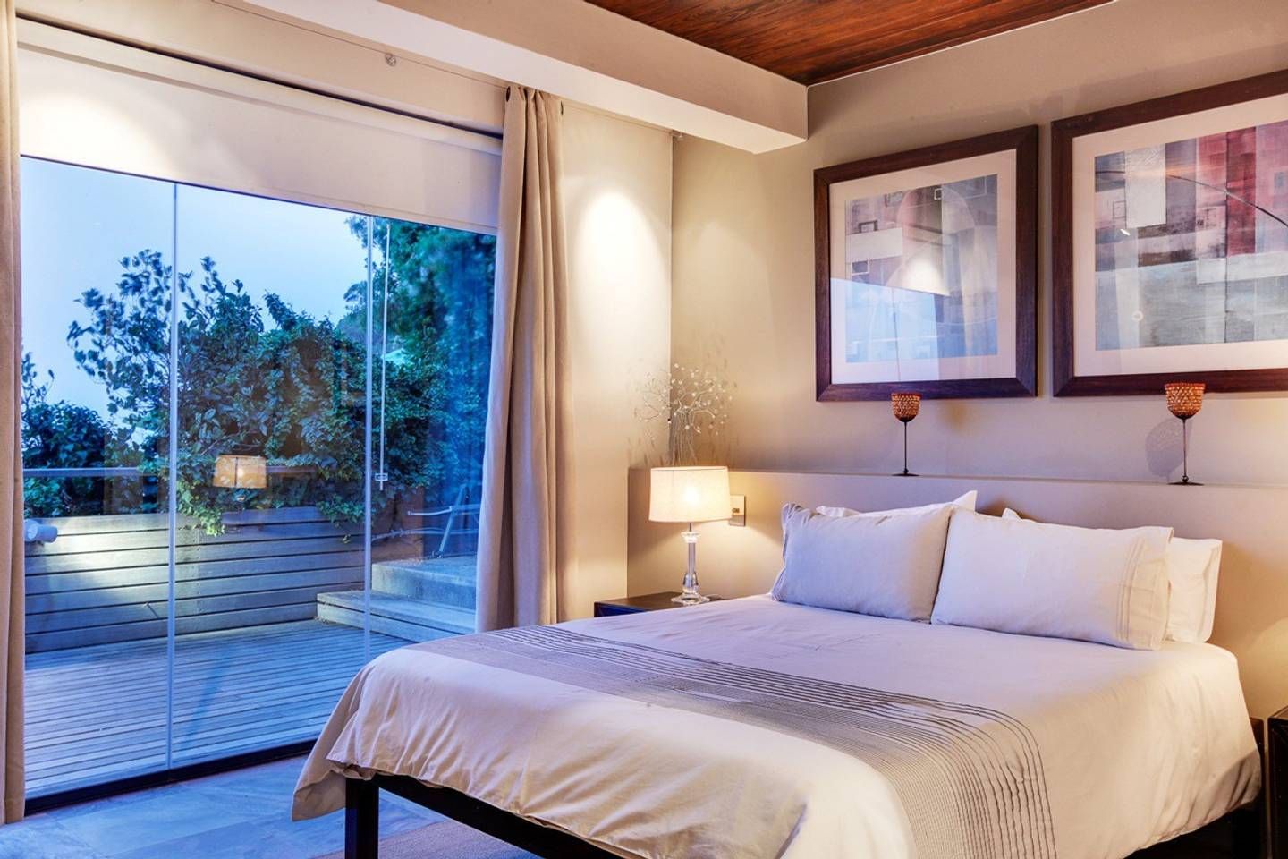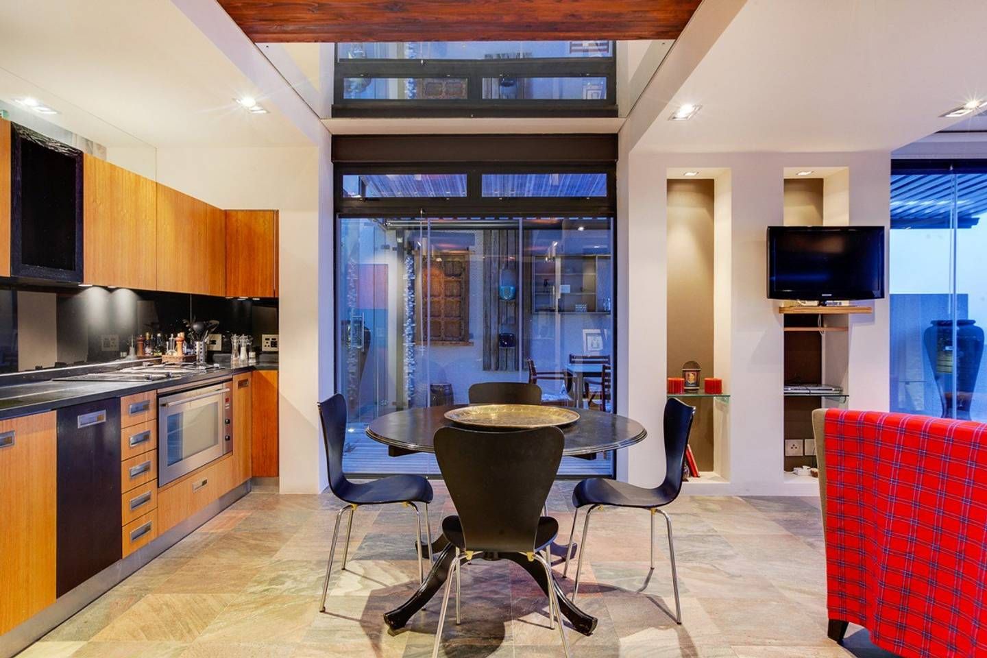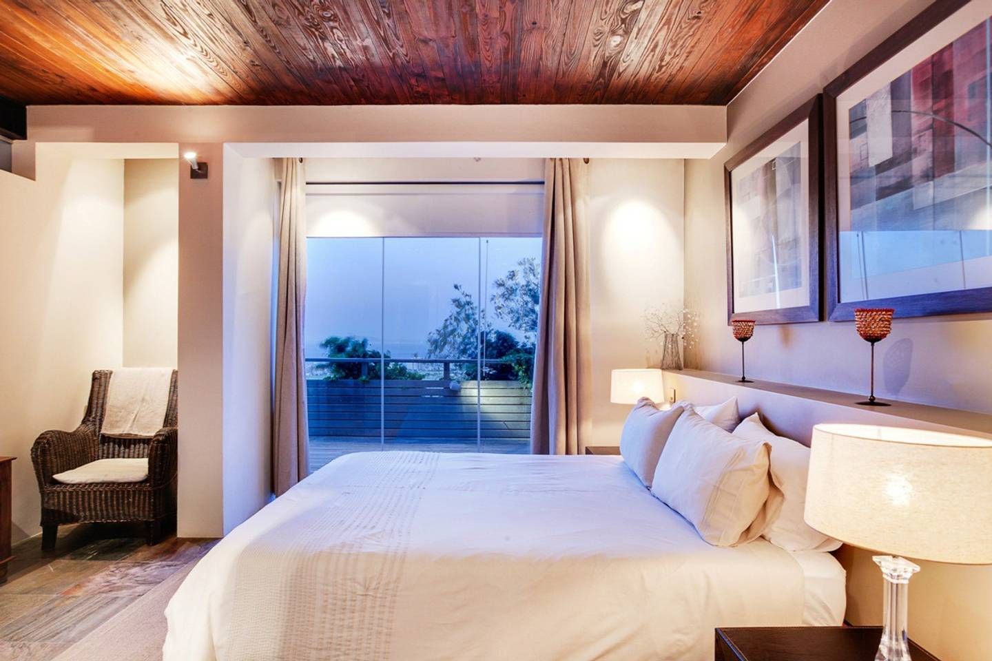 This stunning, contemporary apartment, nestled against the base of Signal Hill, enjoys panoramic city and ocean views – open up the foldaway glass doors onto the balcony and watch the waves move along the ocean, as well as the endless sights to see with your morning coffee. Back inside, we love how the floor-to-ceiling doors let in light while you use the kitchen to prepare lunch to enjoy outside on the dining table shadowed by ancient artwork. What's more, both bedrooms have direct access to either a courtyard or a balcony, making the rooms feel larger.