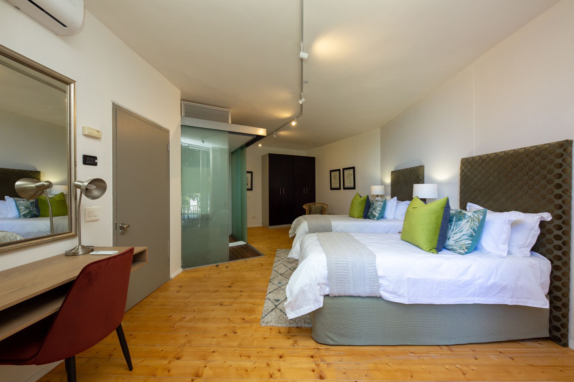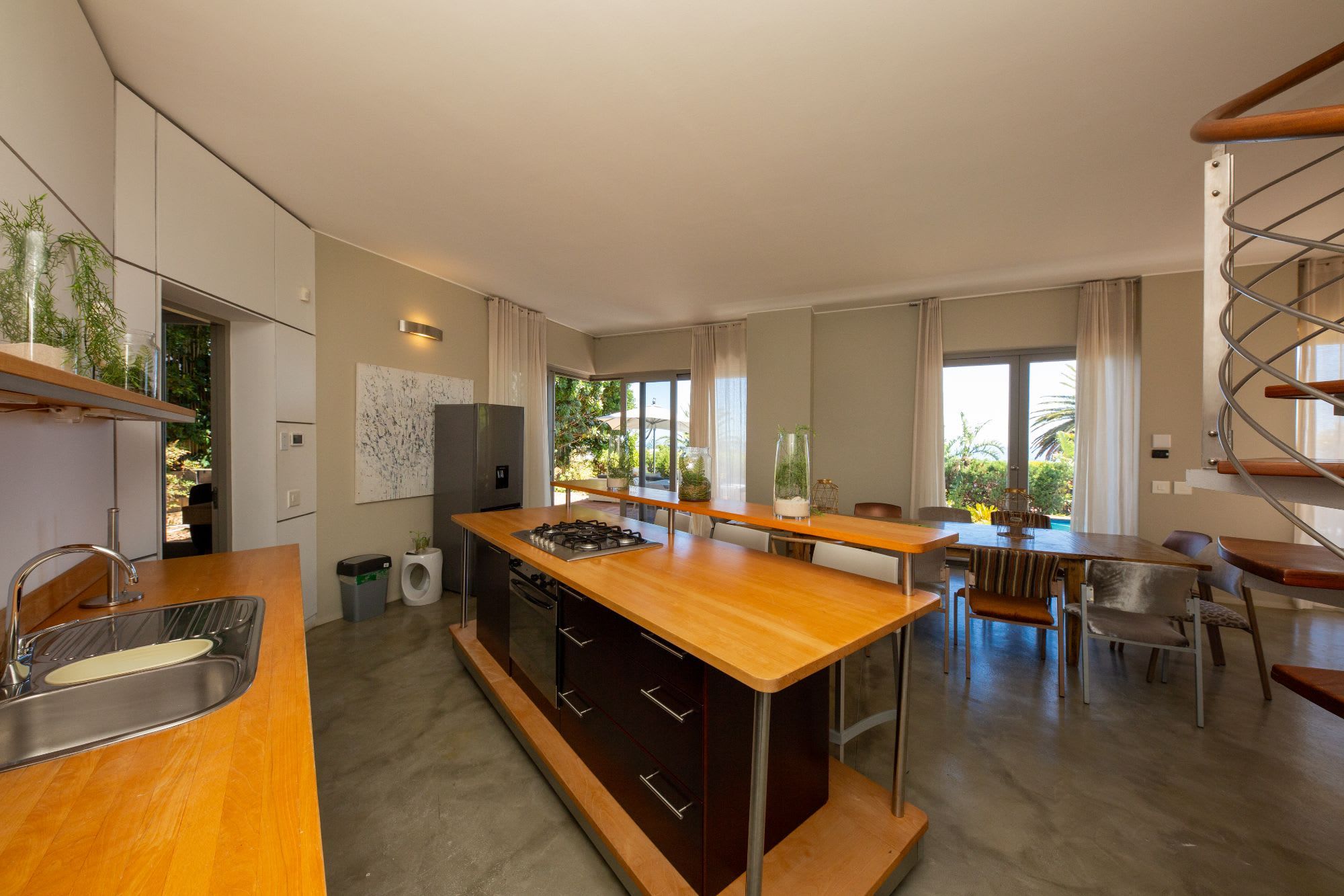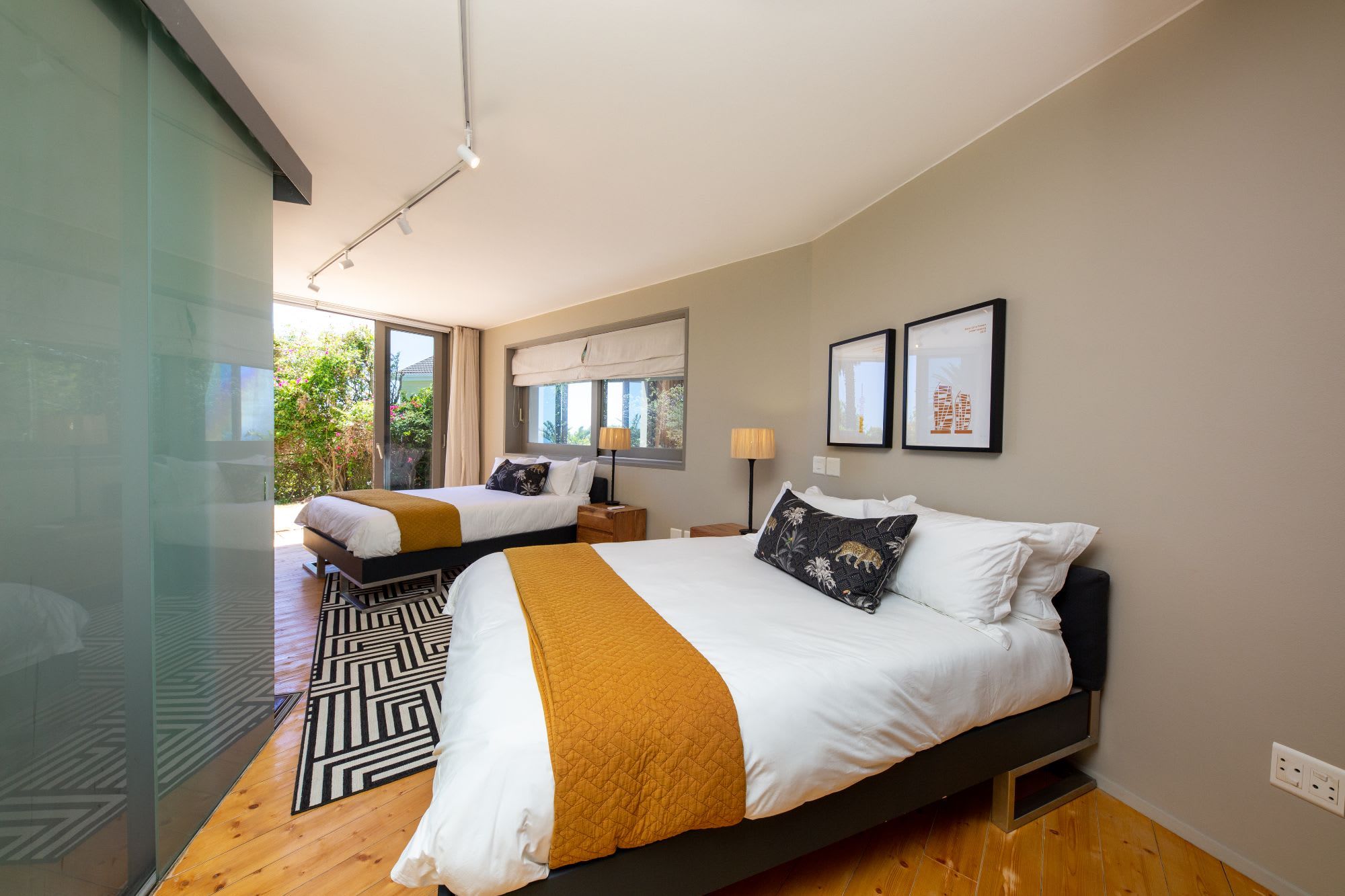 Located on the slopes of the Twelve Apostles, you’ll have your pick of outside spaces and a private swimming pool to make the most of the villa’s Camps Bay views. Spanning three stories, it won’t be suitable for those with limited mobility, and the sliding door ensuite bathrooms may not be to everyone’s taste. That said, it’s bright with plenty of charm and the two sun-kissed balconies and private garden are perfect for socialising – the outside dining area also makes a great spot for family barbecues. Location-wise, there are many trendy shops and restaurants around the suburb of Camps Bay, while beach lovers can find Bakoven Beach just under 5 kilometres away.