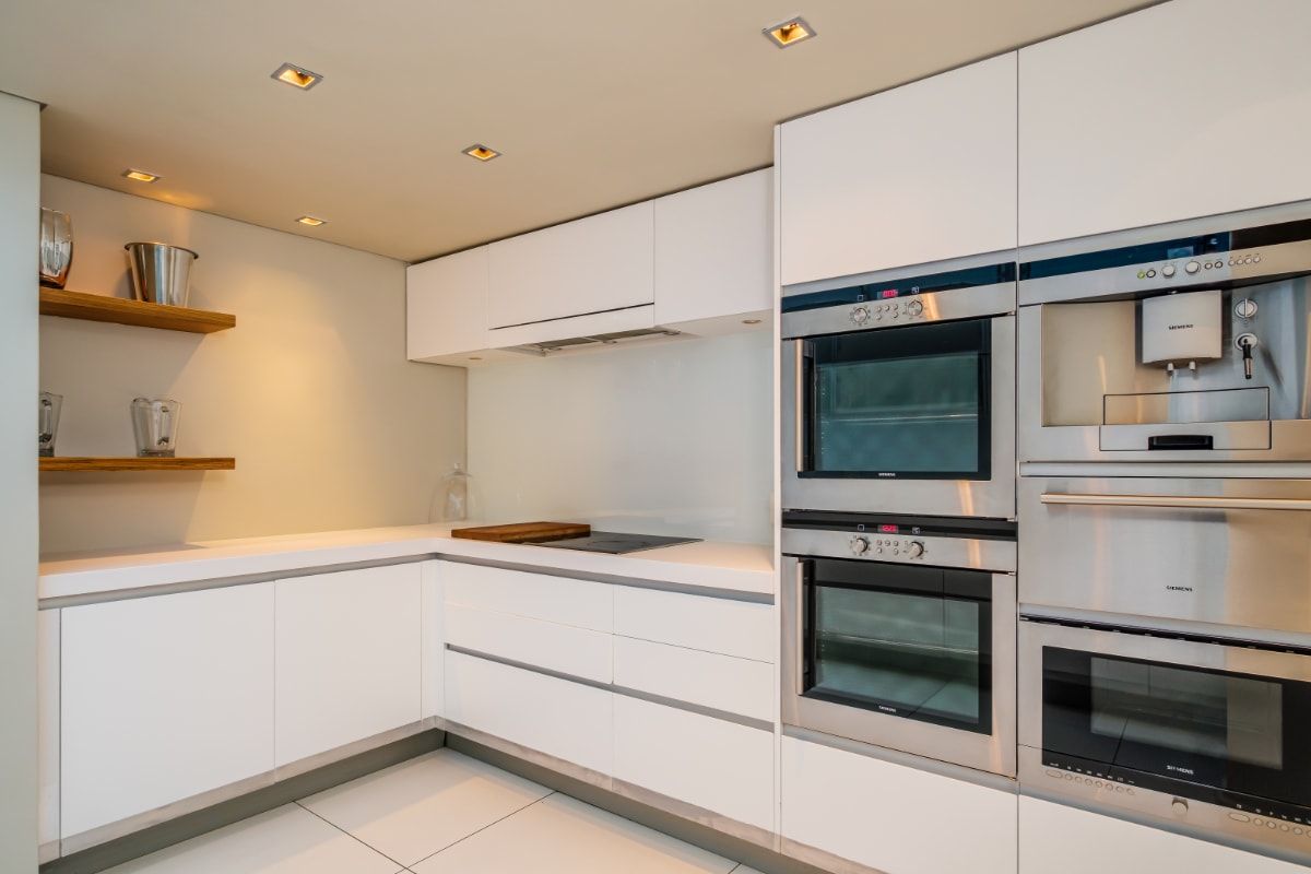 The design-led interiors are bursting with character. We love the sultry dining room with its elongated chandelier, and the statement contemporary art pieces dotted throughout the house. The sleek white kitchen is well equipped for cooking up family style meals, and on warm days fire up the barbecue to enjoy lunch alfresco on the deck.