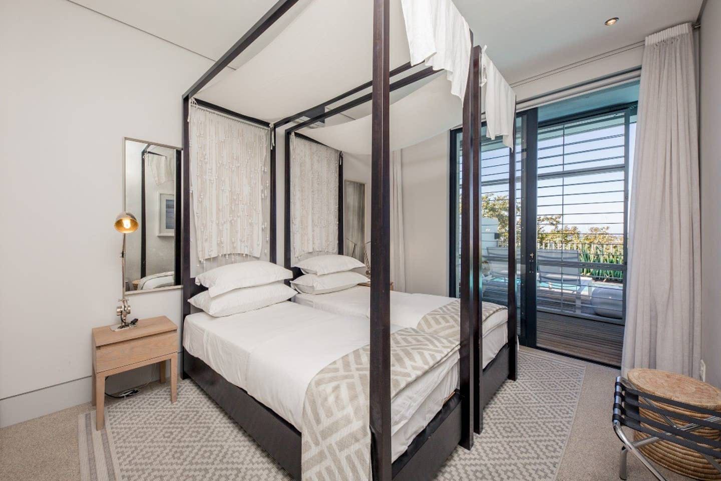 From the moment you walk into the open-plan living area, there’s a sense of laid-back lavishness with its hanging crystal feature ornament, beachy rattan chairs, plump sofas and carefully curated artwork. Light streams in through the glass doors here that lead out onto a private patio equipped with a swimming pool and deck chairs. Spend your mornings catching some rays while looking out over gorgeous city views before cooling off in the sparkling pool’s waters. Back inside, enjoy a celebratory meal around the dining table over a bottle of South African wine, then retreat to your four-poster beds where a blissful night’s sleep awaits. With rainfall showers and an en-suite soaking tub to boot, you’ve got everything you need for a carefree stay.