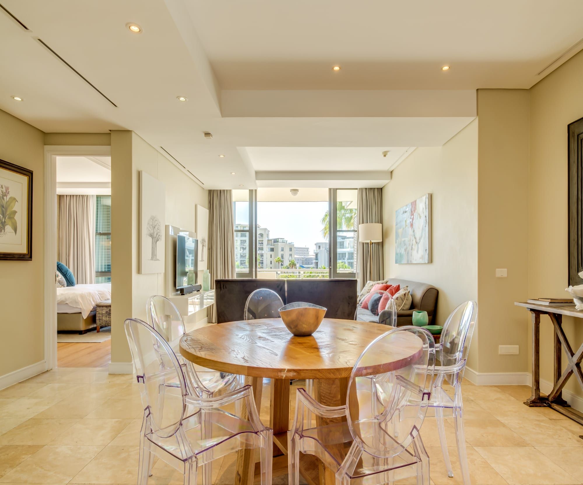 We love the creative and sophisticated interiors – there’s a feeling of relaxed opulence throughout. From Starck-style ghost chairs around the dining table, to luxurious velvet cushions and textured walls in the bedrooms, the design details are truly fabulous. We think you’ll particularly enjoy stepping out to your private balconies, with a chilled glass of South African wine in hand.