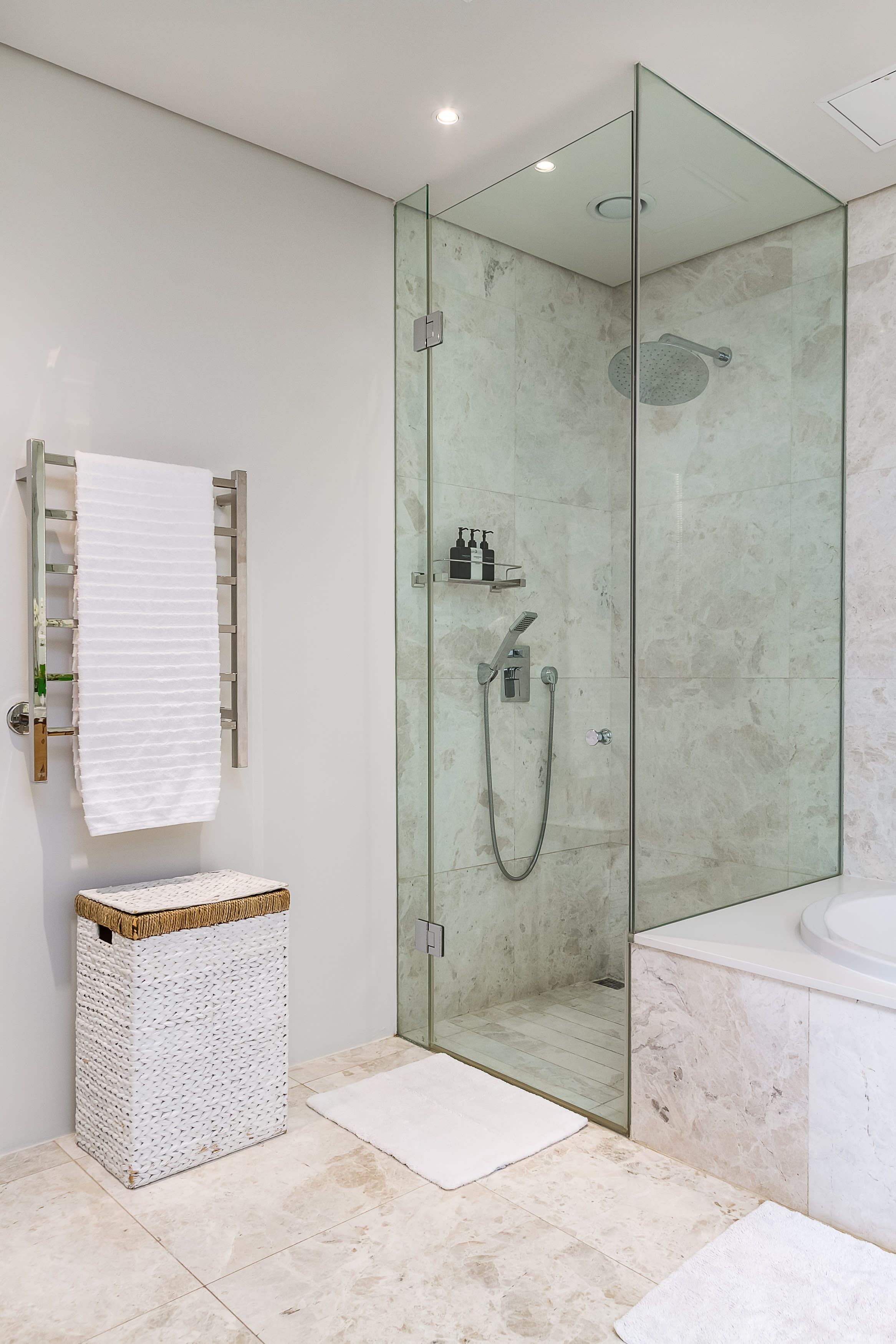 Located in Bakoven, where you can overlook the ocean from the balcony, this elegant home shouldn’t just be applauded for its views – however breathtaking – but also for its proximity to the beach. With Beta Beach a stone’s throw away and the famous Camp’s Bay strip not much further, you can spend sunshine days laying back on the sand as you listen to the waves lapping the shore.