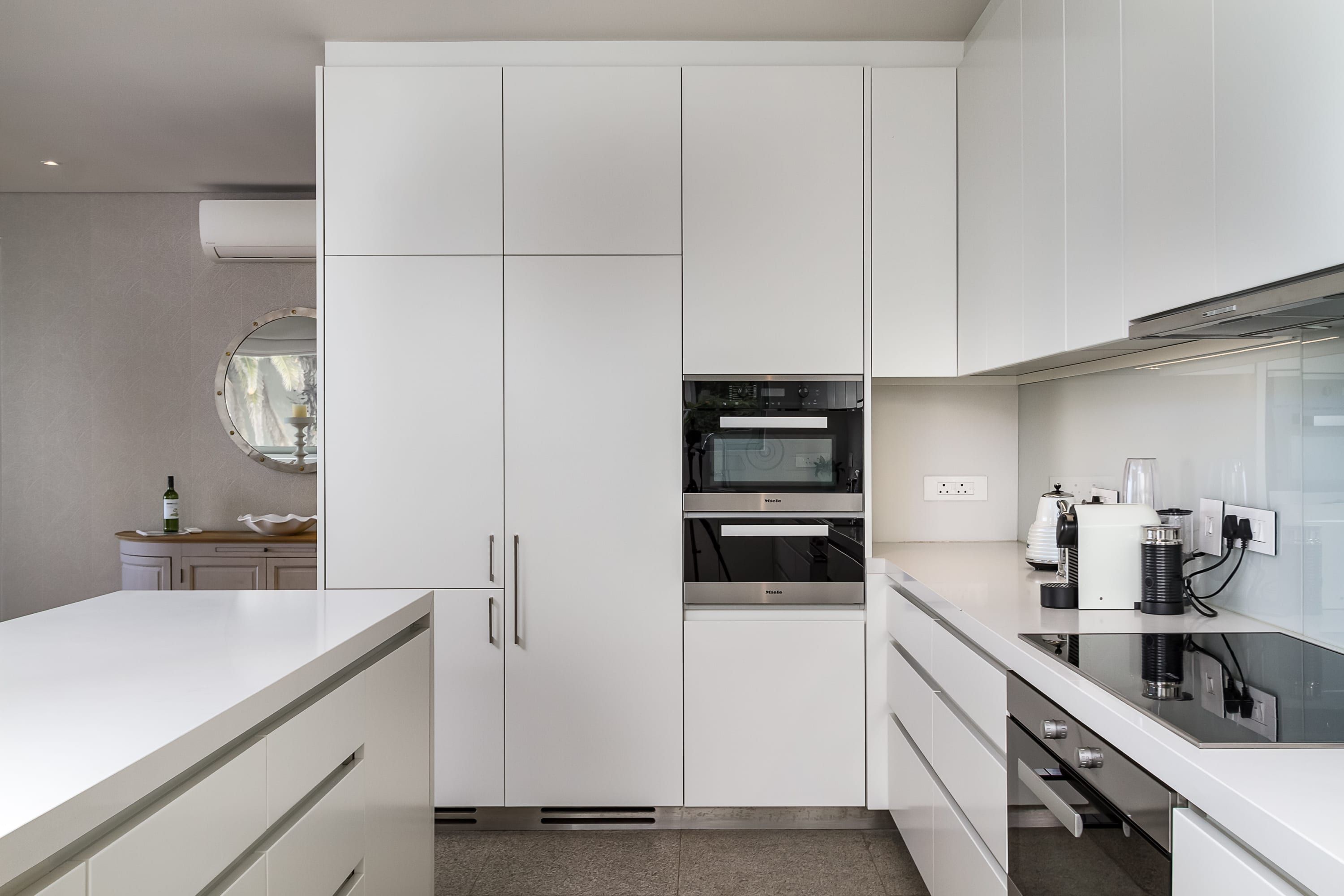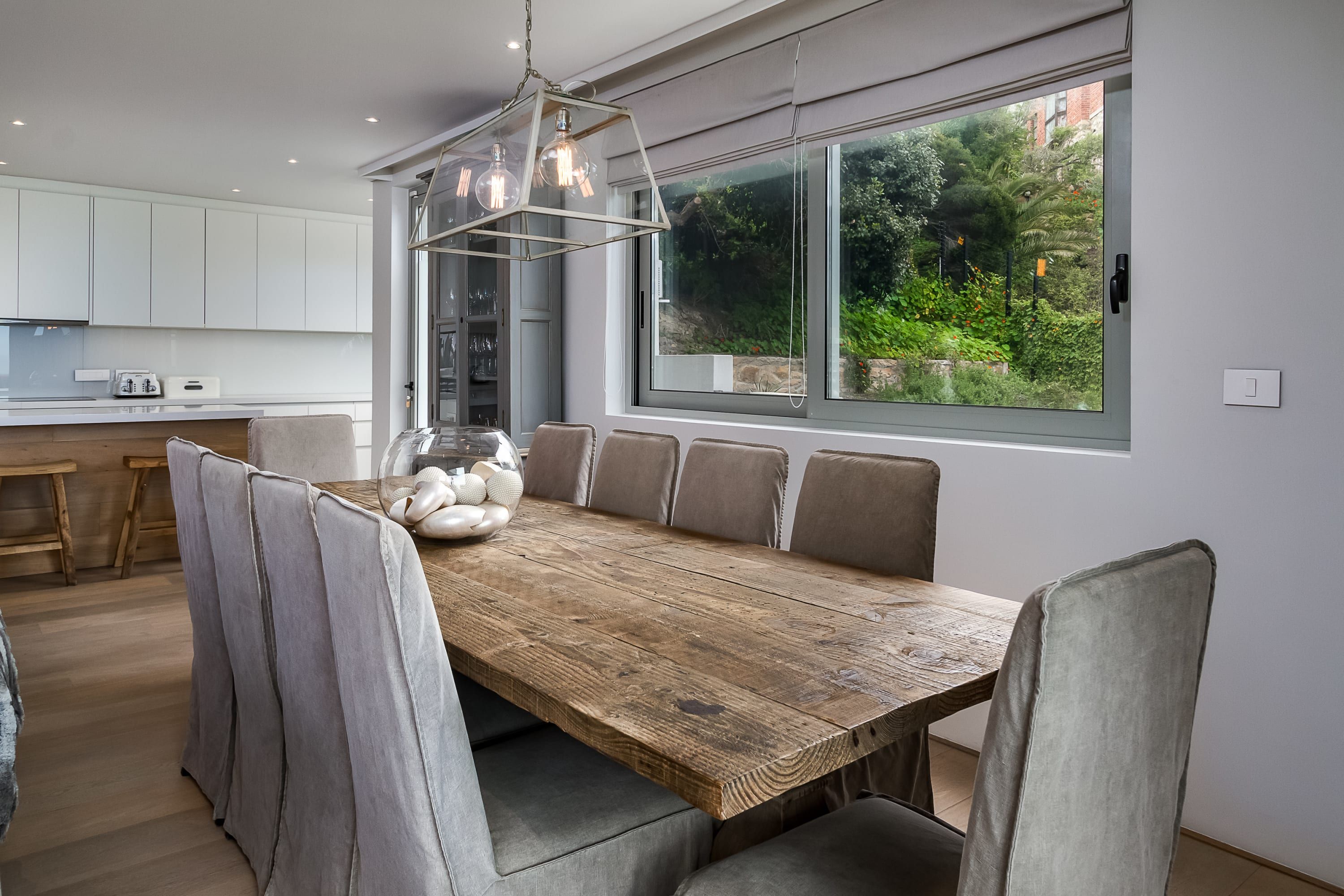 Get in touch with nature by hiking one of the many trails in the surrounding area or visiting the penguin colony at Boulders Beach. When you’re not eating fresh seafood at one of the local restaurants, take to the sleek kitchen – the family gathered around the kitchen island to nibble as you go – and prepare a simple meal with the fresh produce available.