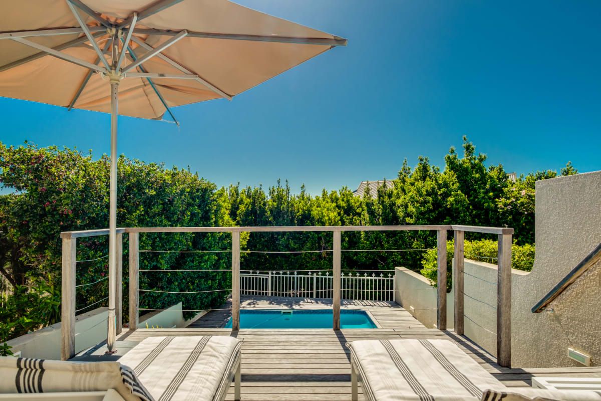 Inside, neutral decor and floor-to-ceiling windows create a bright, cheerful feeling from the moment you enter the door, and we love the sliding patio doors opening the living space up the sunny deck. With a covered dining table and a barbecue, it's the dream spot for evening meals as the sun sets. Follow the steps down to a lower level for comfy sun loungers and down again to your own pool.