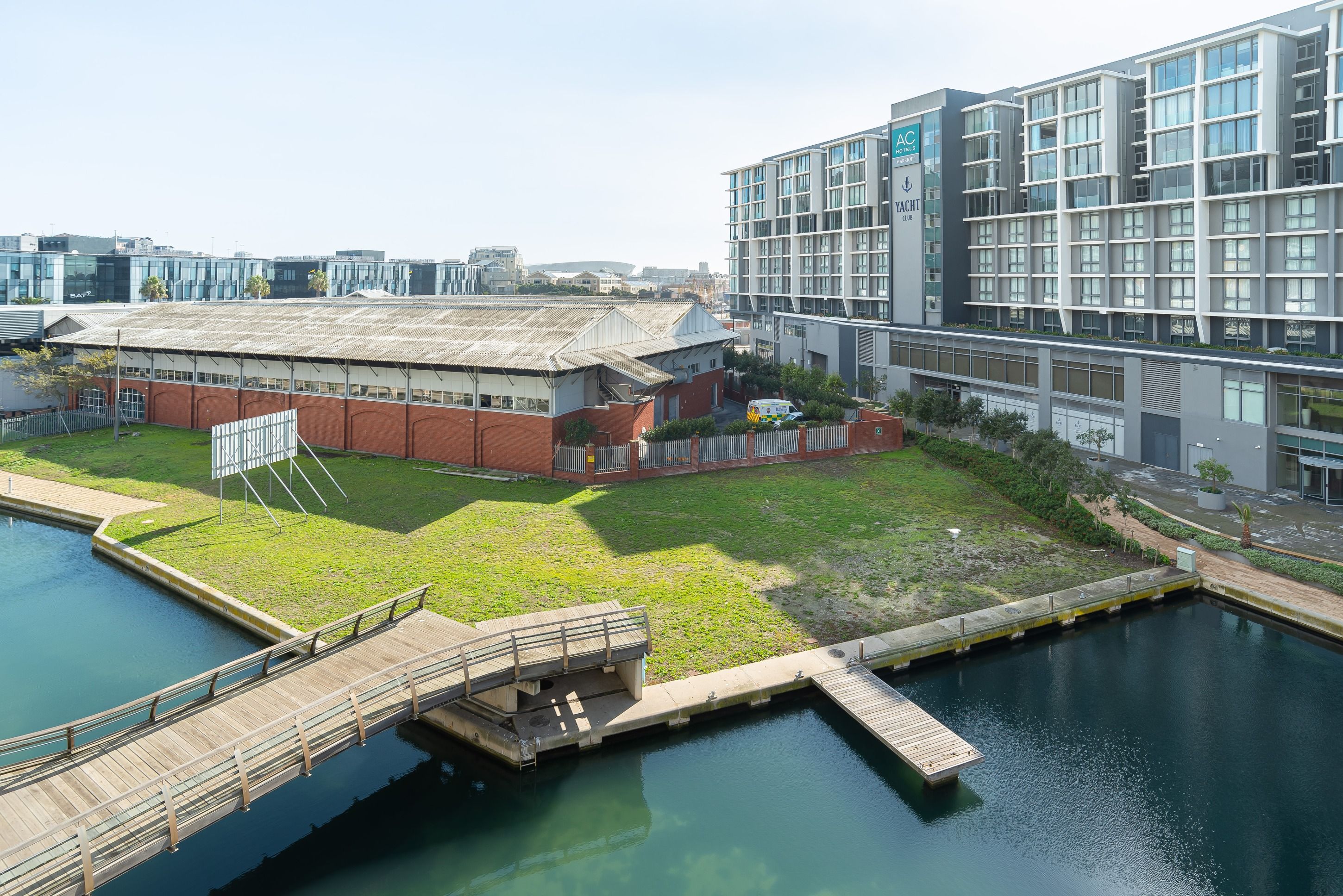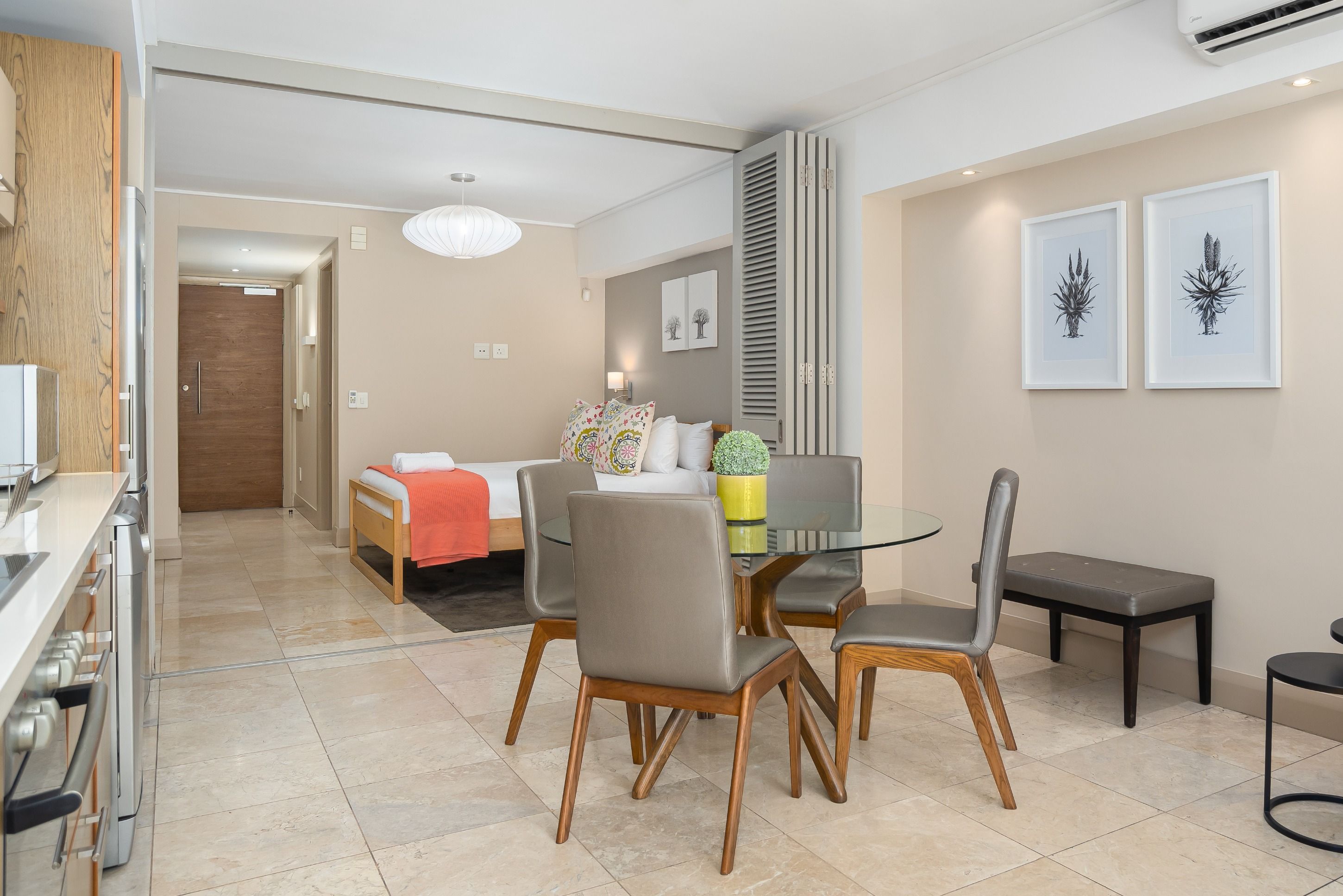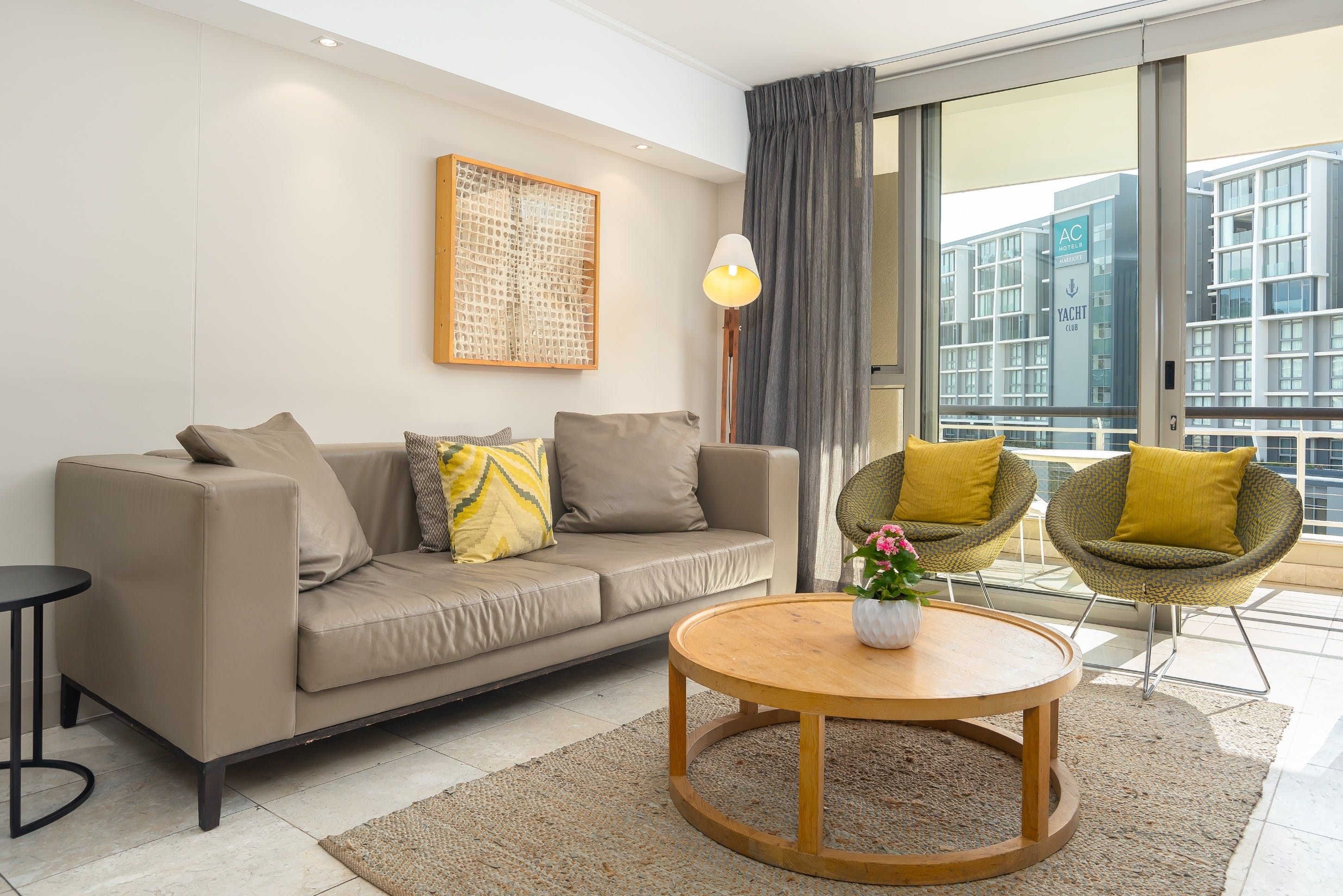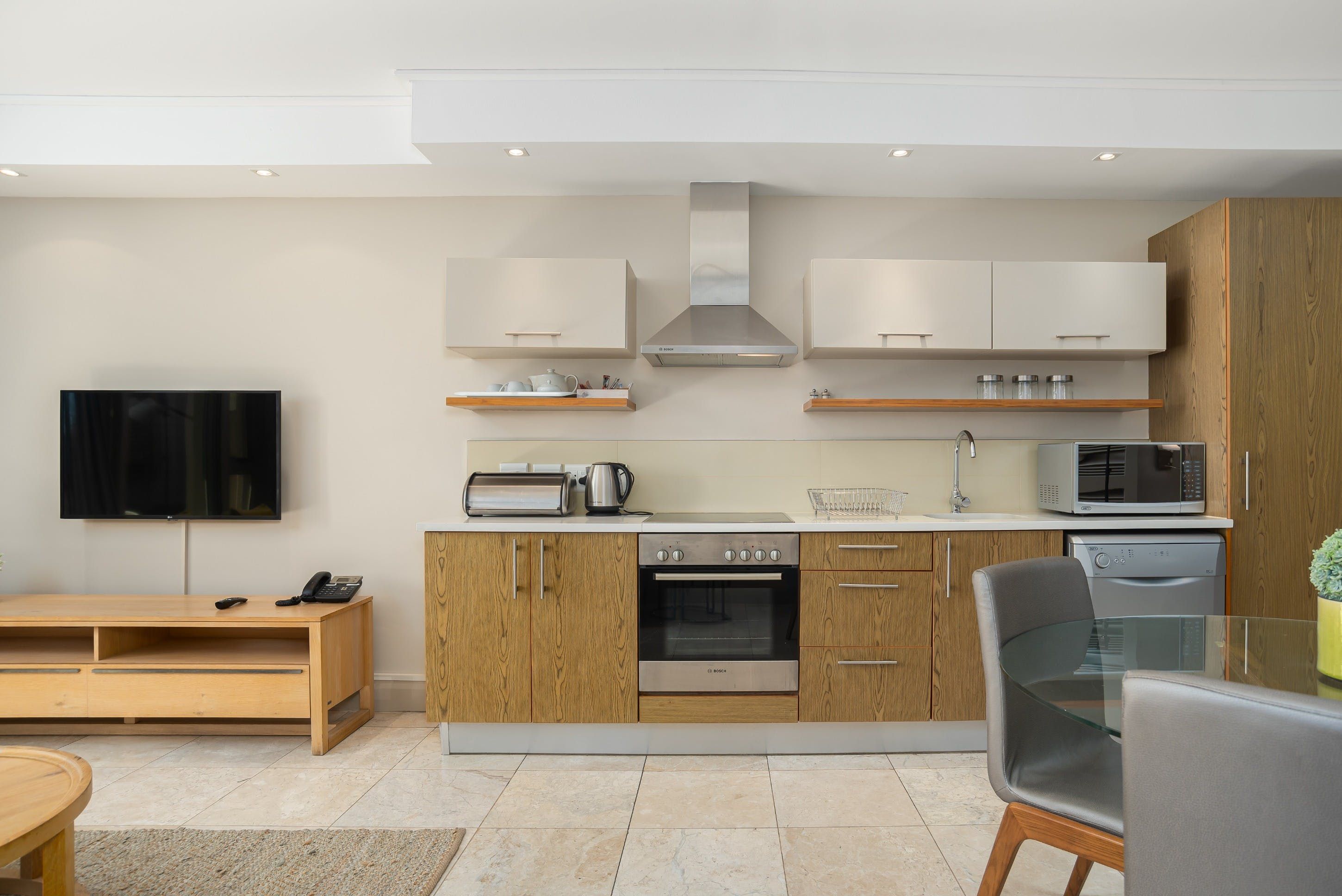 This sleek and sun-filled apartment overlooks the canal on the harbourfront of Cape Town. With an open-plan living, dining and kitchen area and a separate bedroom and bathroom area, you'll be able to enjoy a stay in this studio without having to forfeit total privacy. Keep the curtains open during the day to fill your space with natural light, and head out on the balcony to breathe in the fresh air and relax while gazing out at the canal and the surrounding city. In the evening when you come back to rest your head, snuggle up on the sofa with a movie on the big screen as the sun sets outside.