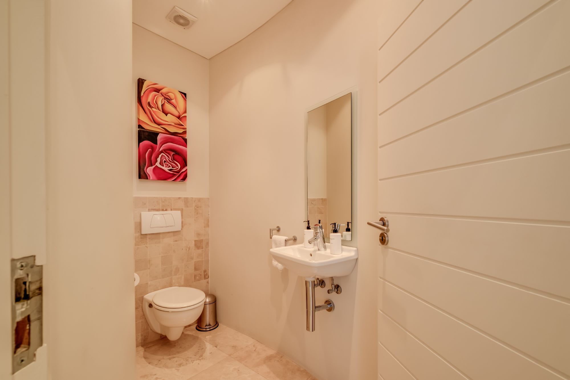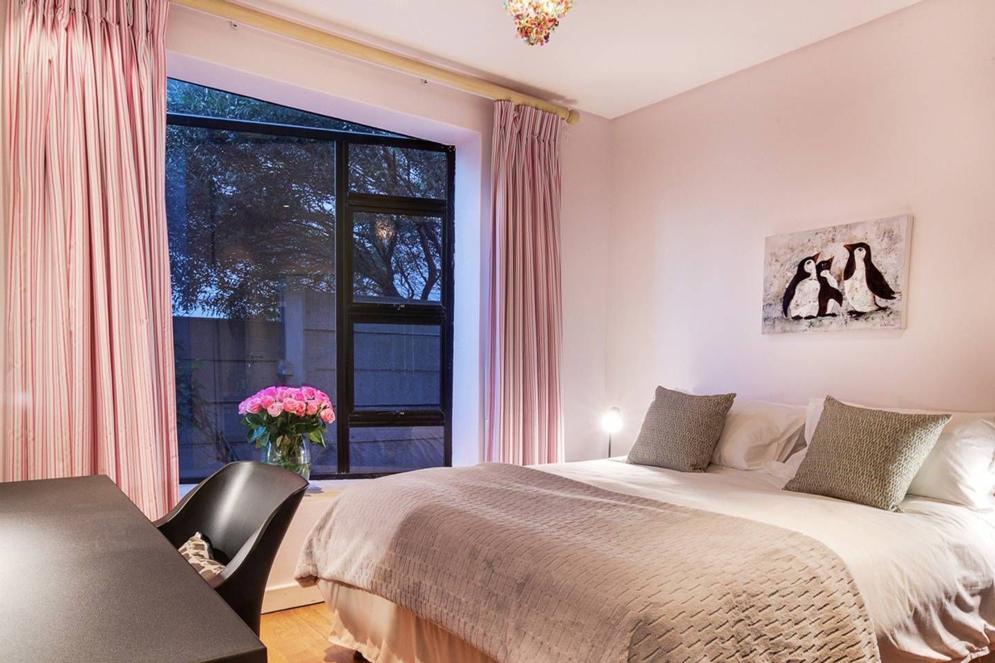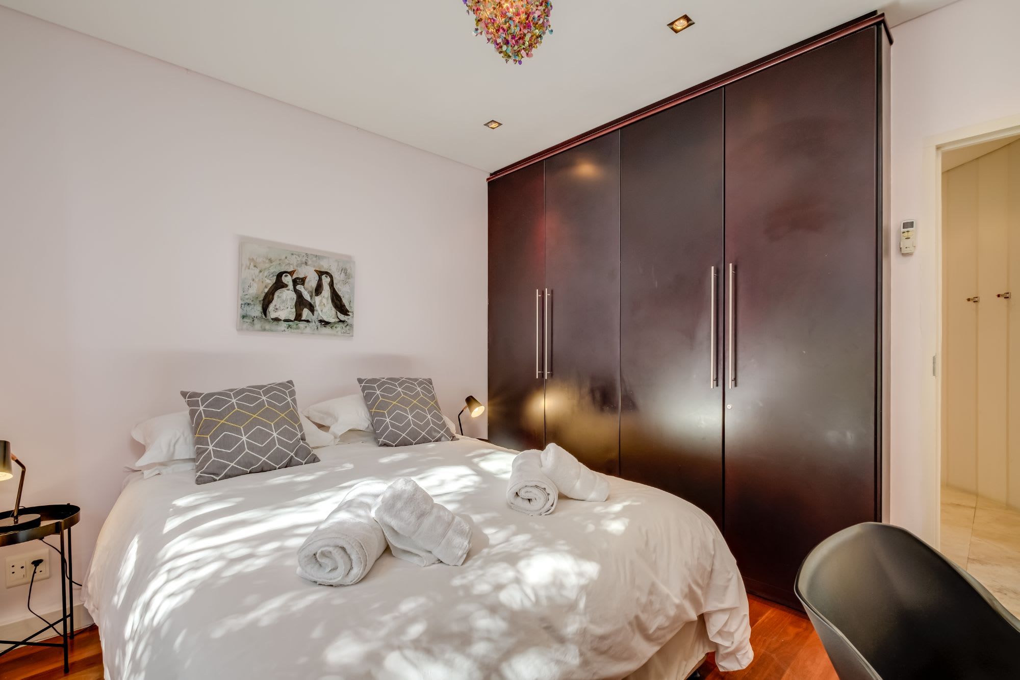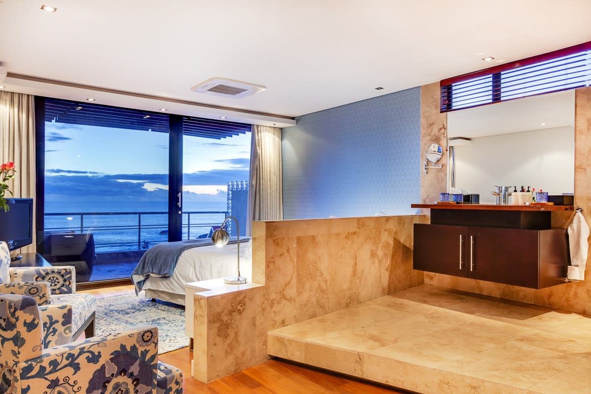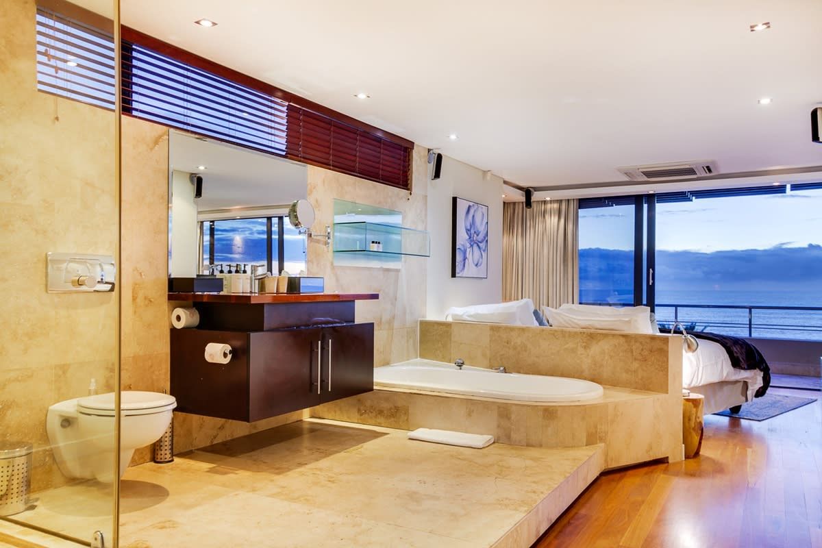 In a quiet cul-de-sac, not too far from the hustle and bustle of Camps Bay, you will find this fantastic villa with its private pool and stunning sea views from its balcony. The ideal spot to begin each morning, enjoy a coffee and breakfast on the terrace overlooking the ocean, then decide between a quiet day lounging in the sunshine beside the pool or heading out to enjoy the Camps Bay beach. If you get too hot, why not take a refreshing dip in the swimming pool and admire the mountain views on offer here? Plus, if you have important work to catch up on during your stay then the main bedroom has you covered with its small office area.