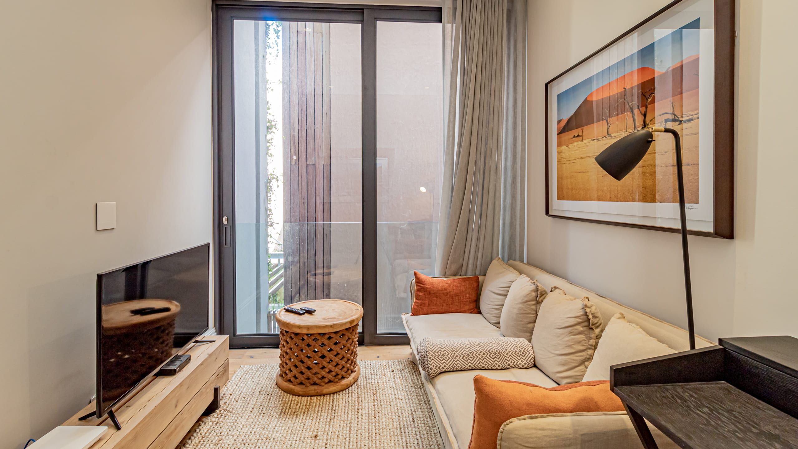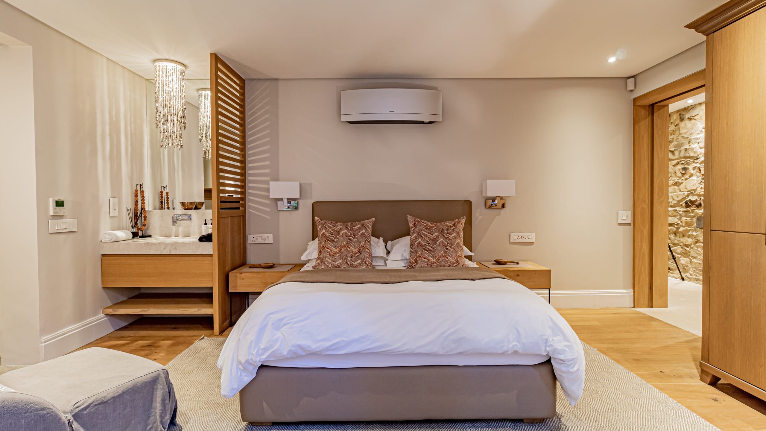 Laid out over three floors, you’re spoilt when it comes to space here with ample room to socialise in the living area or to enjoy some quiet time alone in the beautifully curated bedrooms. Throughout, a neutral colour palette sets a calming scene, with stunning pieces of African-inspired art on the walls sitting alongside ornate beadwork chandeliers and rattan ornaments.