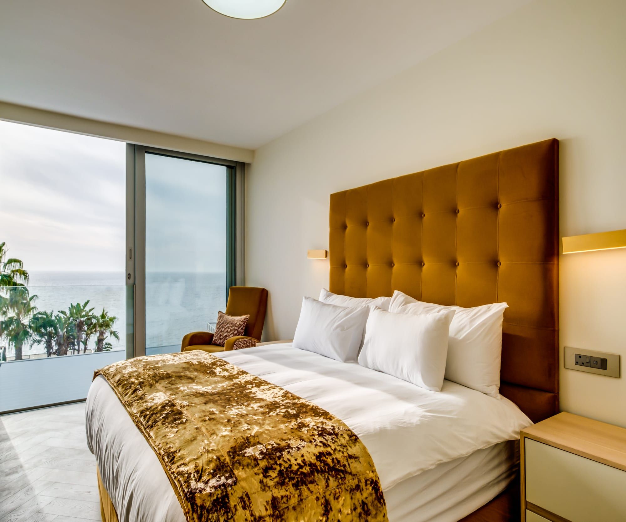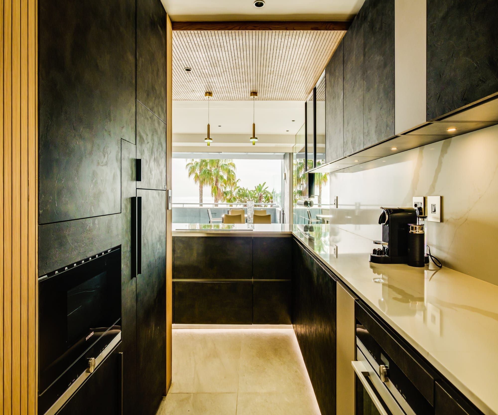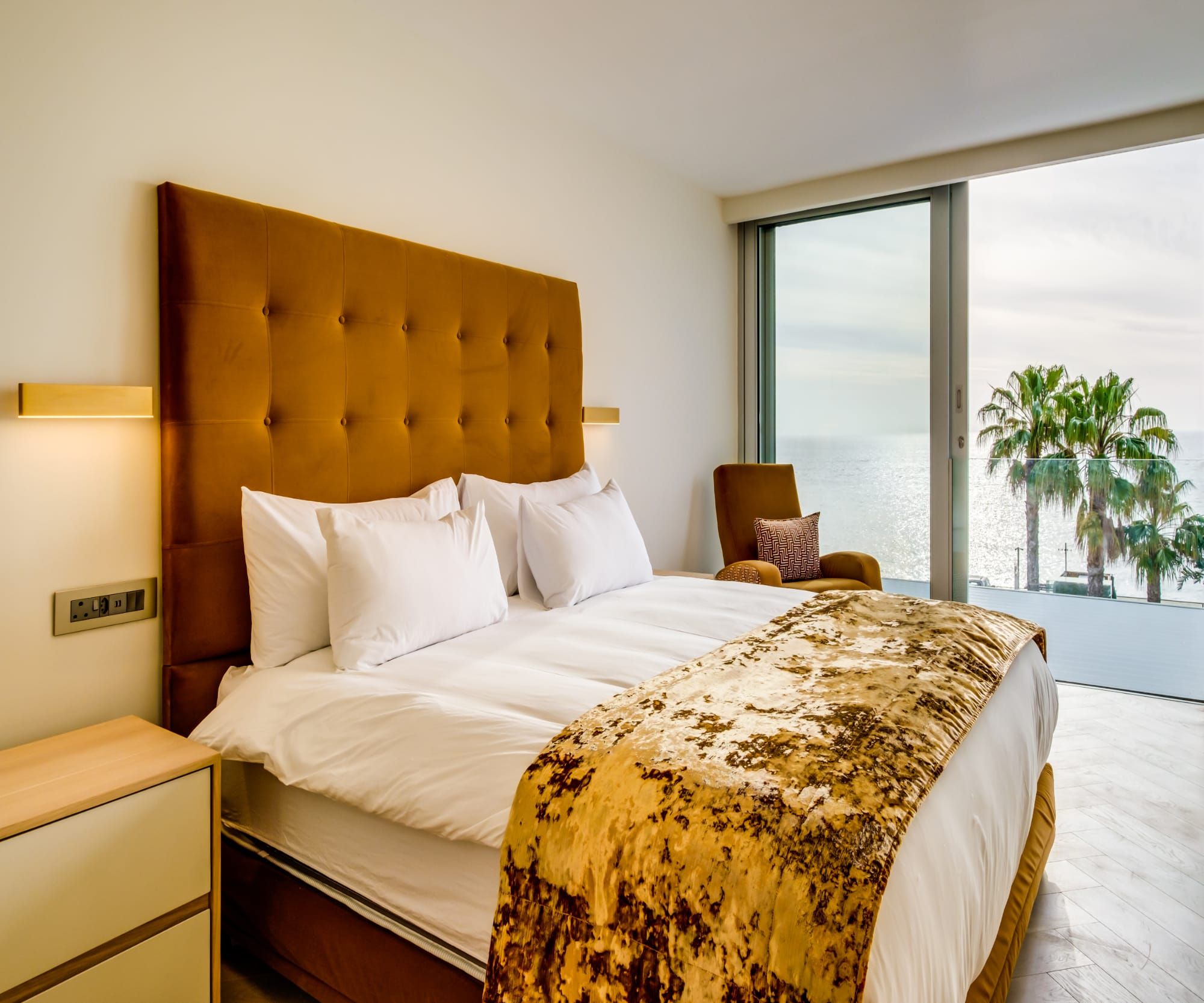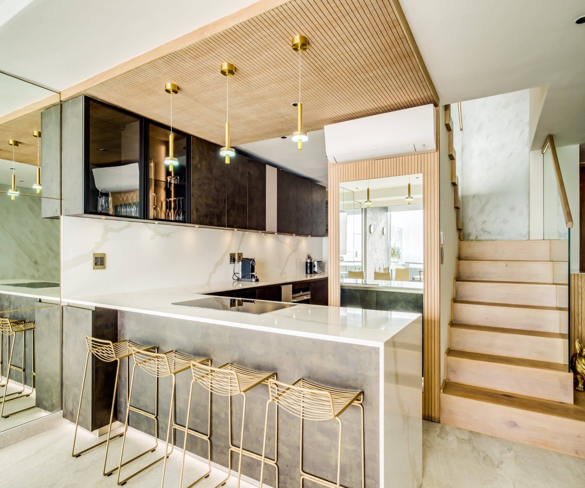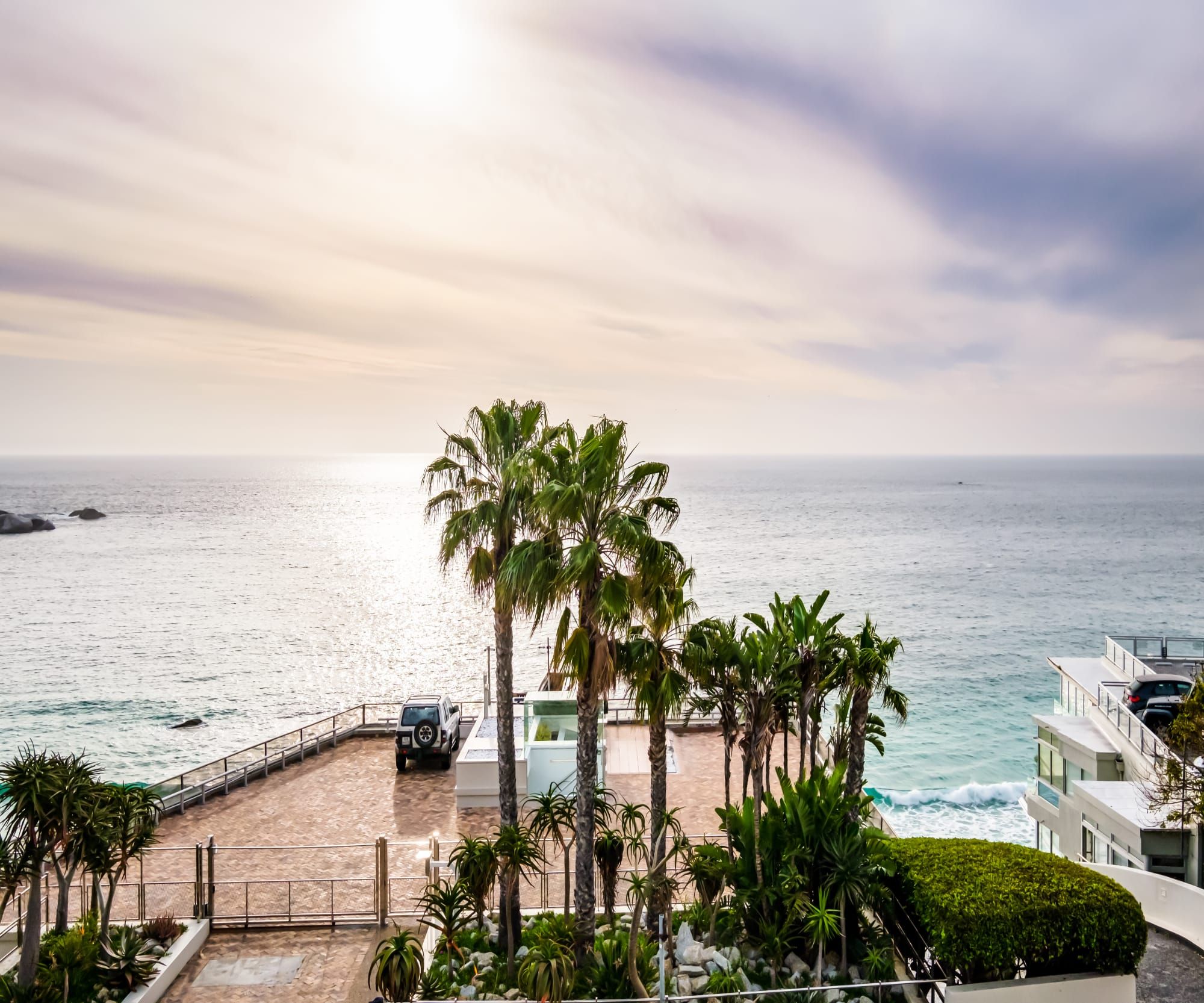 A contemporary Clifton stay awaits you at this stunning seaside apartment, located just a stone’s throw from the picturesque palm-lined shore and gorgeous blue sea of Clifton Beach. We love this home’s modern and trendy feel, with marbled surfaces, mirrored walls, luxe light fittings and sleek furniture. We were particularly impressed by the kitchen area, furnished with the latest mod-cons, and featuring a breakfast bar where you can pour some champagne and share a toast. There’s also a dining set for tucking into delicious braai all together on summer evenings. But the true gem of the home is in its outdoor areas – the breathtaking views out to sea make the space feel special. The balcony features a private pool which provides the perfect place to cool off from the hot South African sunshine, while the alfresco dining set is great for sipping on sundowners and watching the sky turn pink.