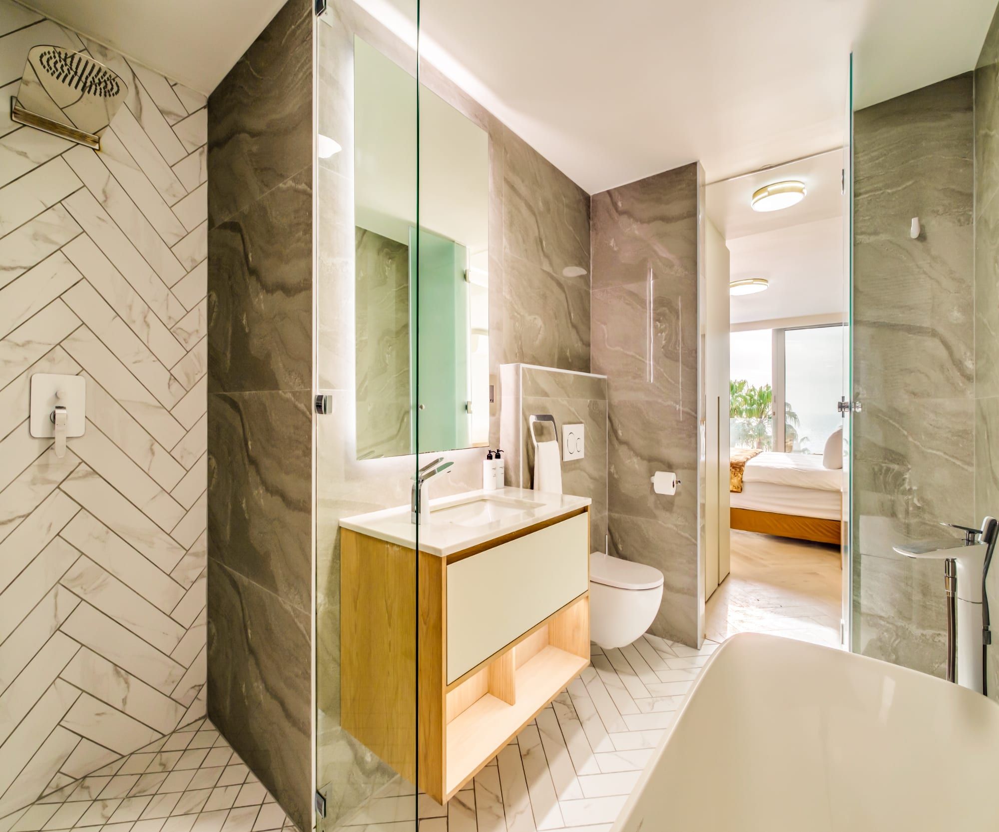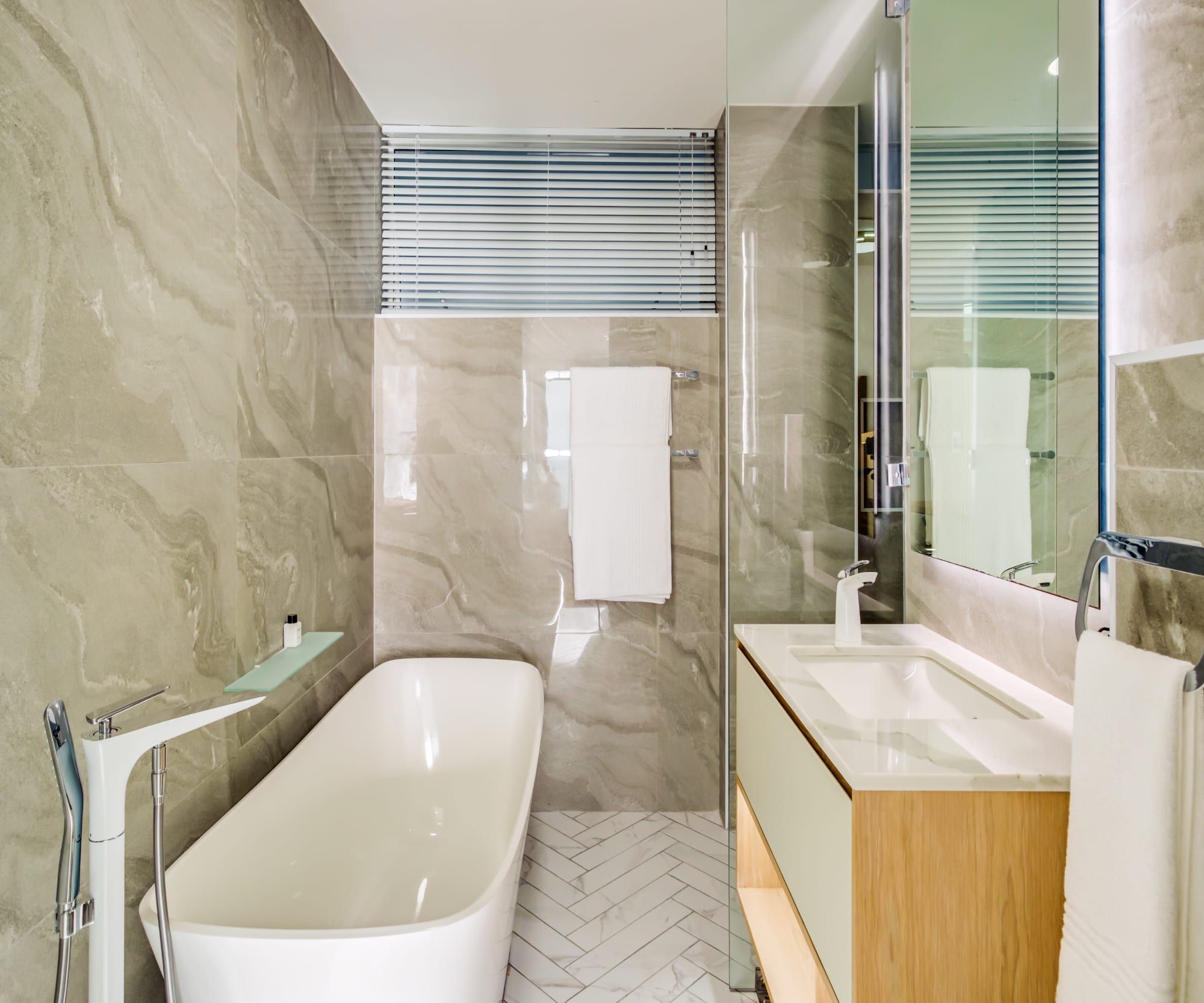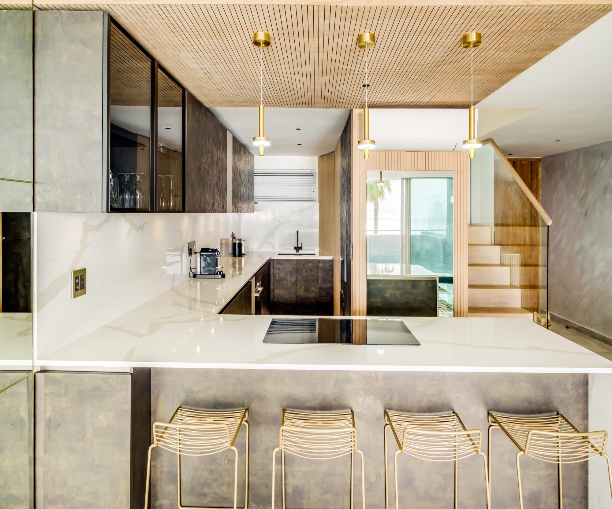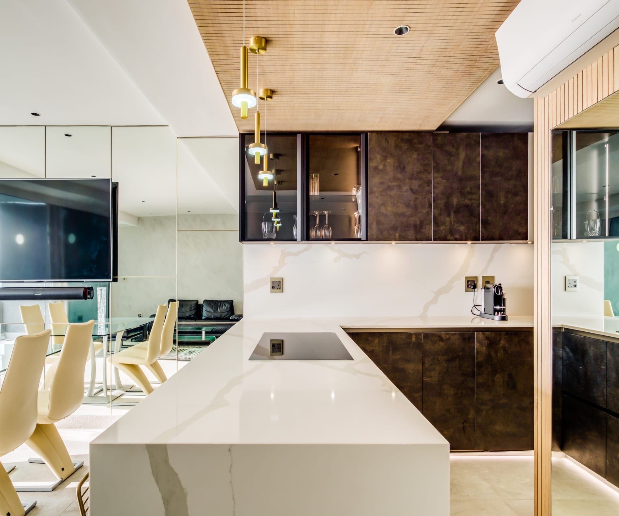 A contemporary Clifton stay awaits you at this stunning seaside apartment, located just a stone’s throw from the picturesque palm-lined shore and gorgeous blue sea of Clifton Beach. We love this home’s modern and trendy feel, with marbled surfaces, mirrored walls, luxe light fittings and sleek furniture. We were particularly impressed by the kitchen area, furnished with the latest mod-cons, and featuring a breakfast bar where you can pour some champagne and share a toast. There’s also a dining set for tucking into delicious braai all together on summer evenings. But the true gem of the home is in its outdoor areas – the breathtaking views out to sea make the space feel special. The balcony features a private pool which provides the perfect place to cool off from the hot South African sunshine, while the alfresco dining set is great for sipping on sundowners and watching the sky turn pink.