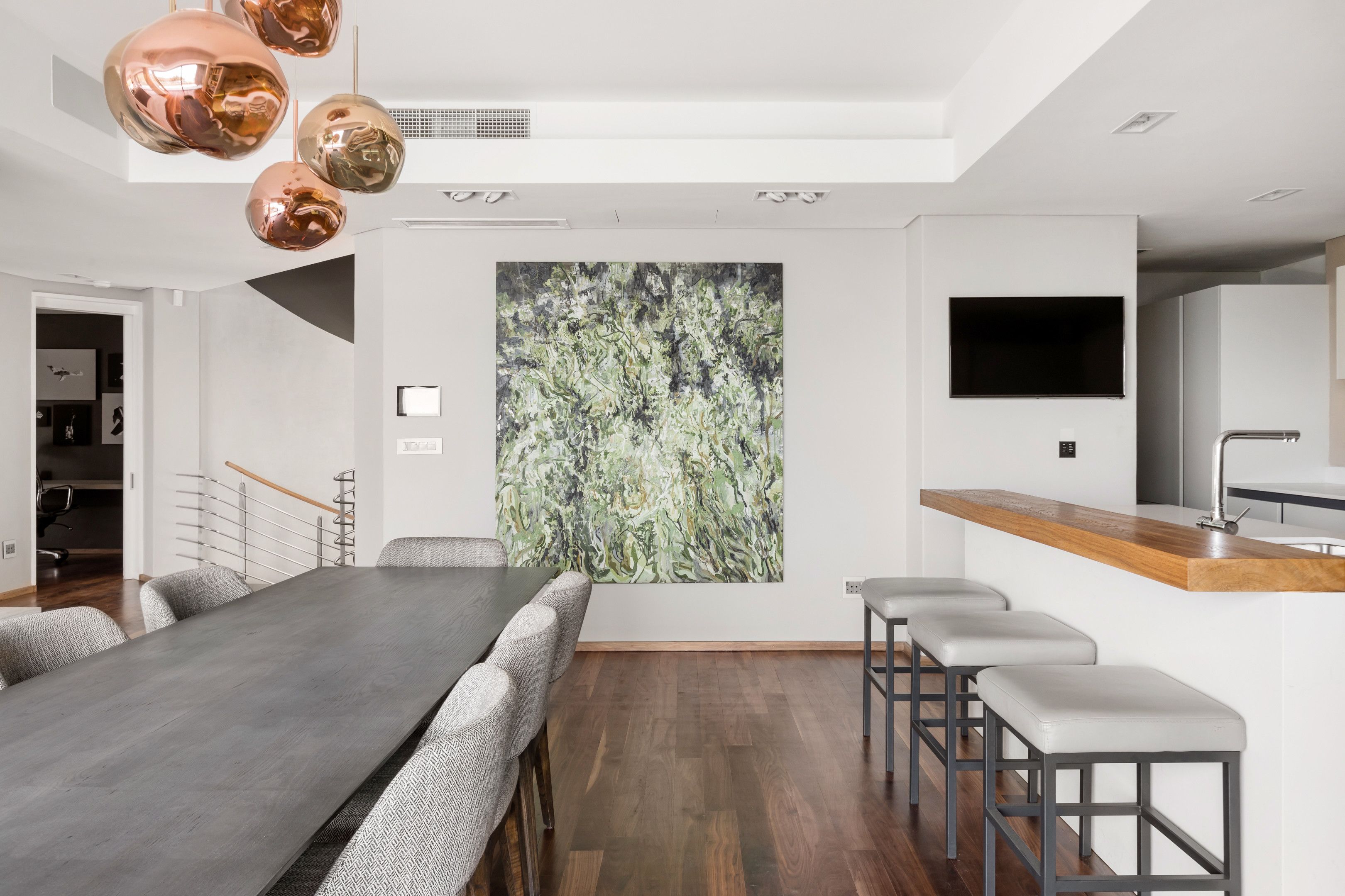 As you would hope from a home in such stunning surroundings, there are an awful lot of floor-to-ceiling windows across the three storeys, which have the added perk of flooding the interior with natural light. This asset is only accentuated by the bare wooden floors and sleek surfaces in the kitchen and bathrooms. The furnishings are mid-century in style, which adds an urbane sophistication to the lounges and bedrooms.