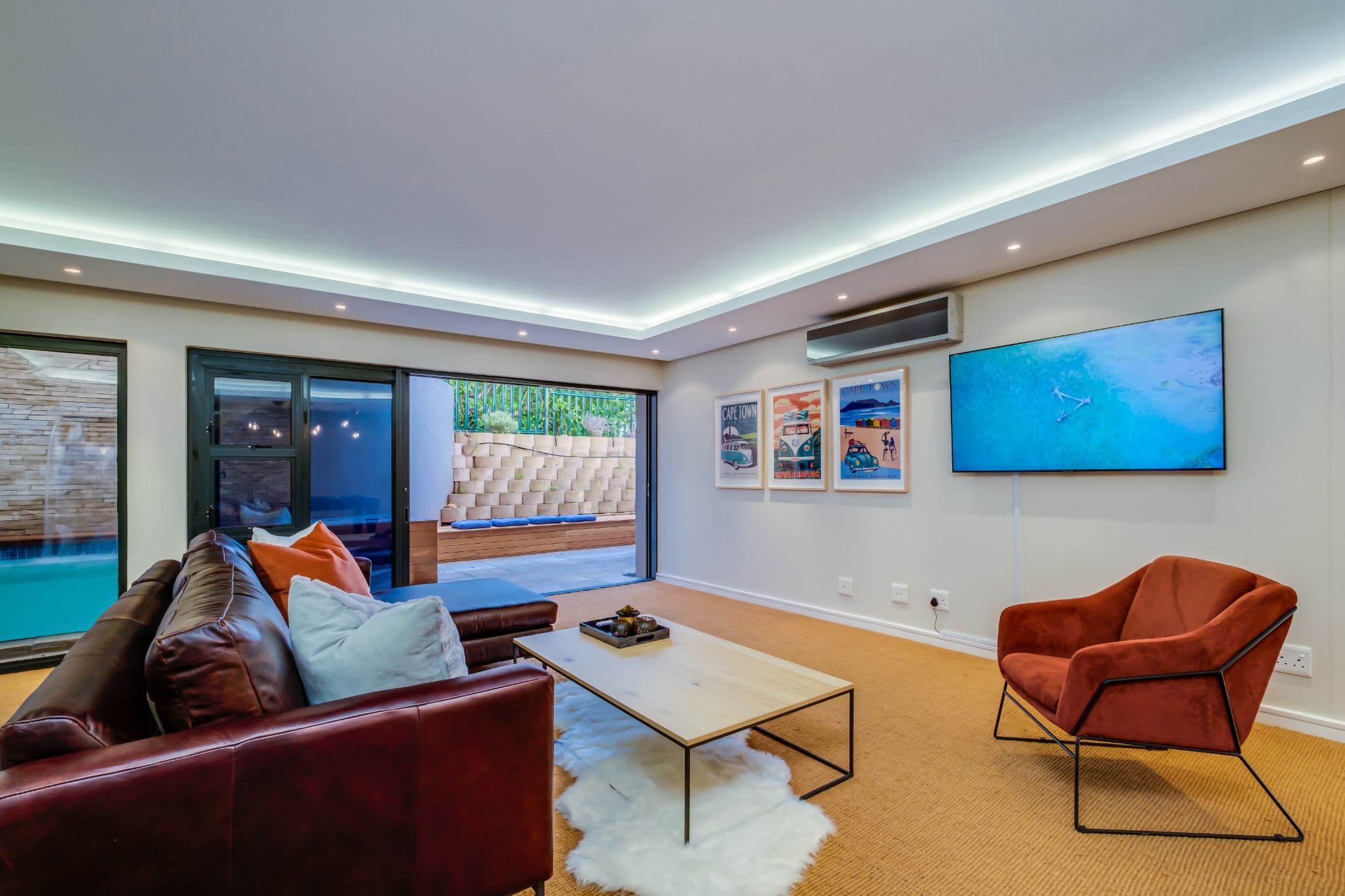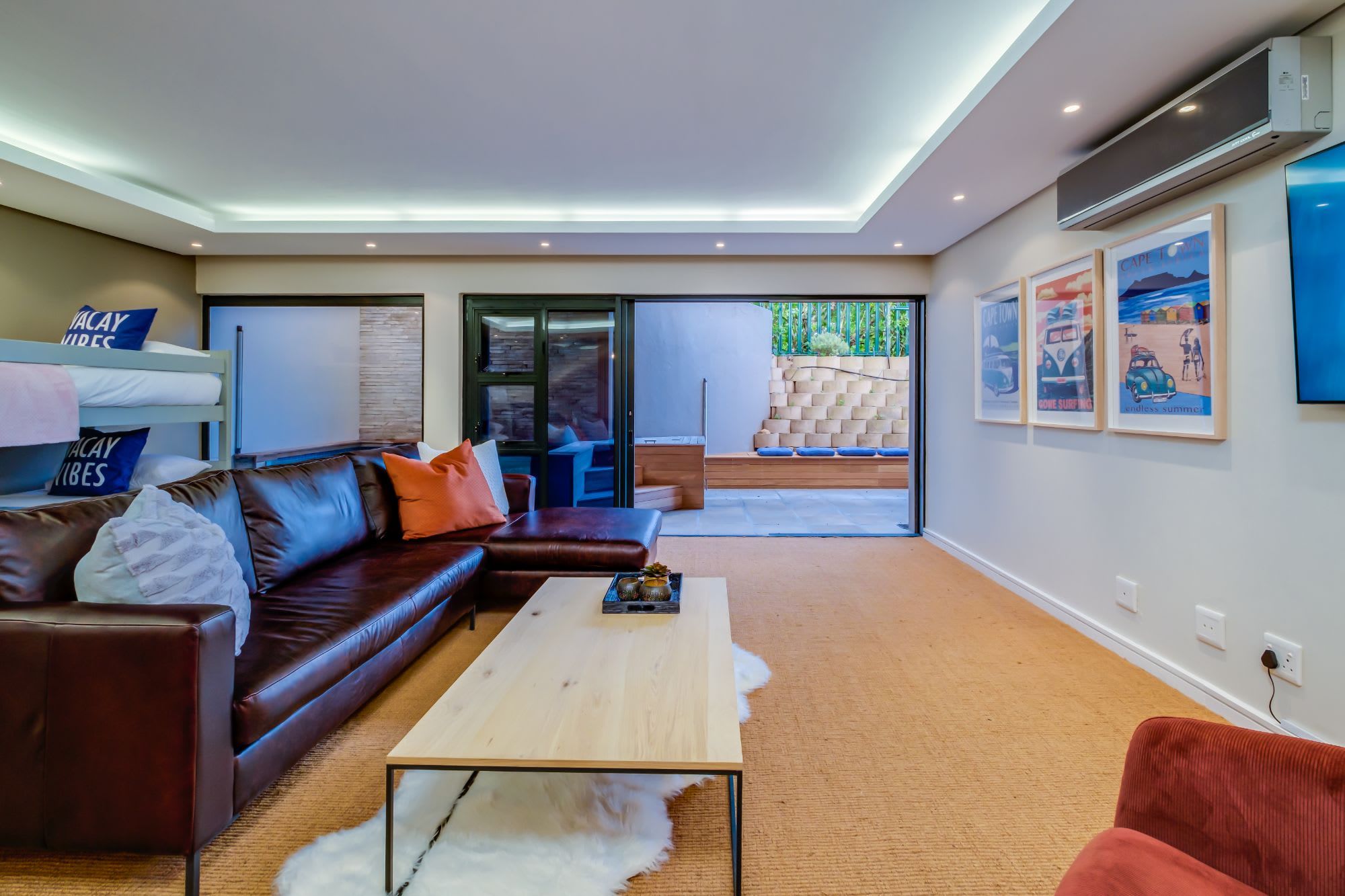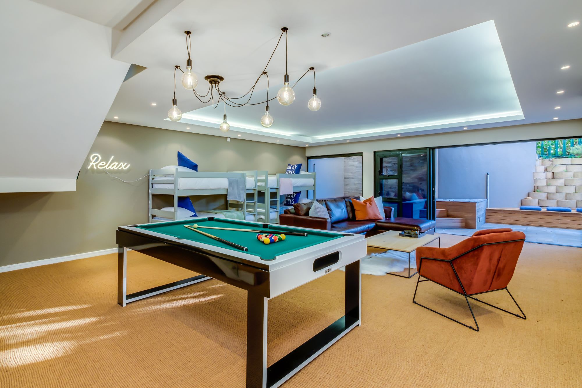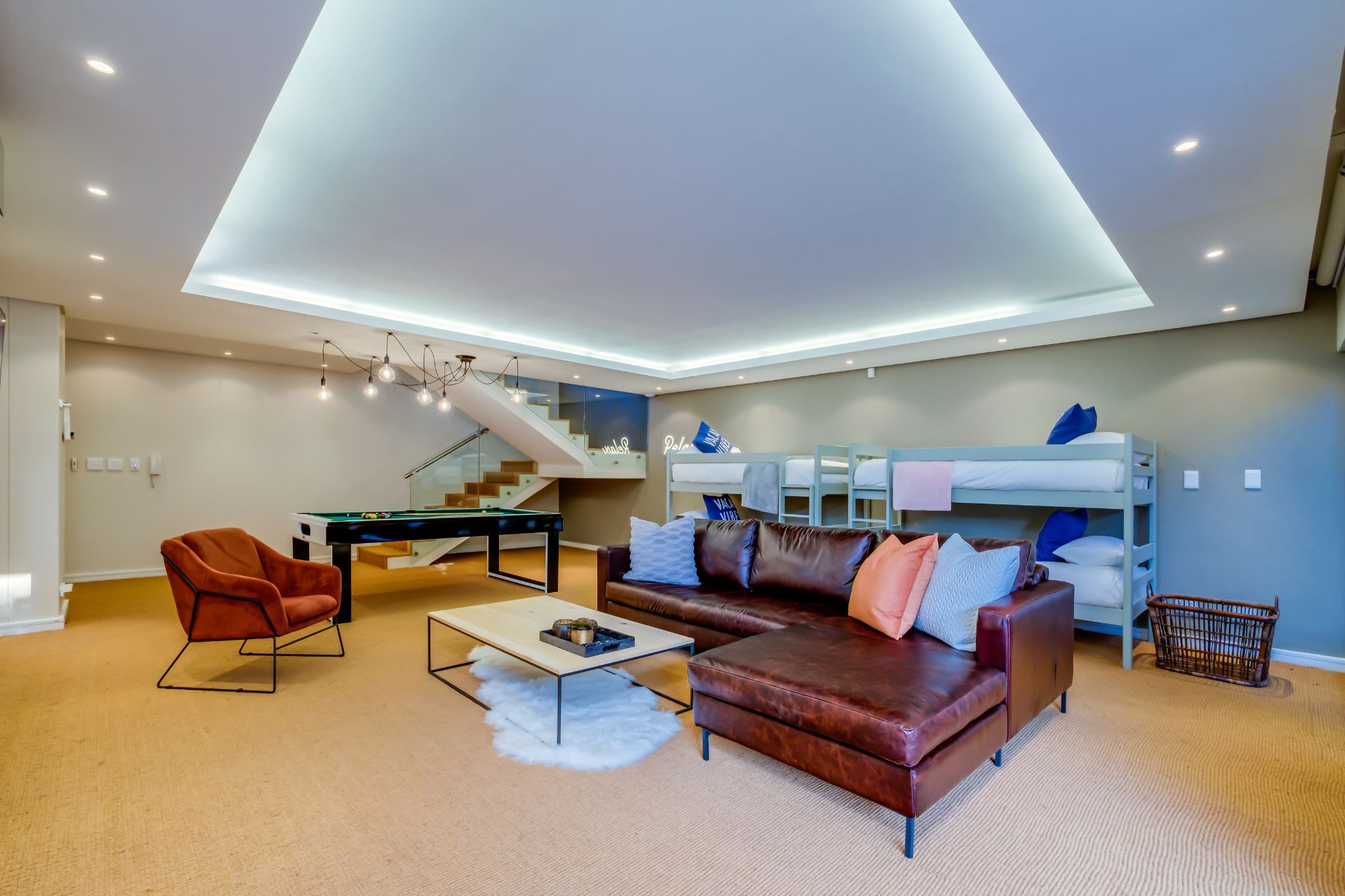 Heading down to the lower floor, you’ll find a dedicated games room with a pool table, and the secret plunge pool on the terrace outside. Bedrooms come with private balconies and patios to take in that Camps Bay sunset in peace every evening.