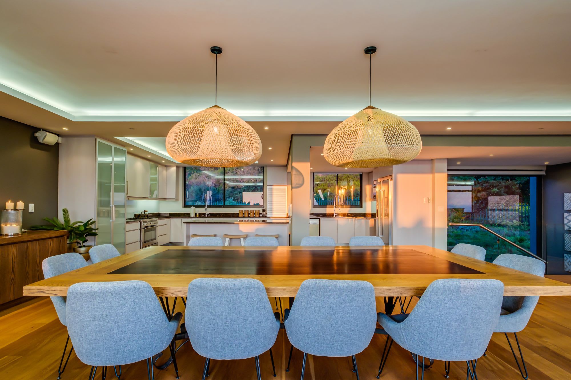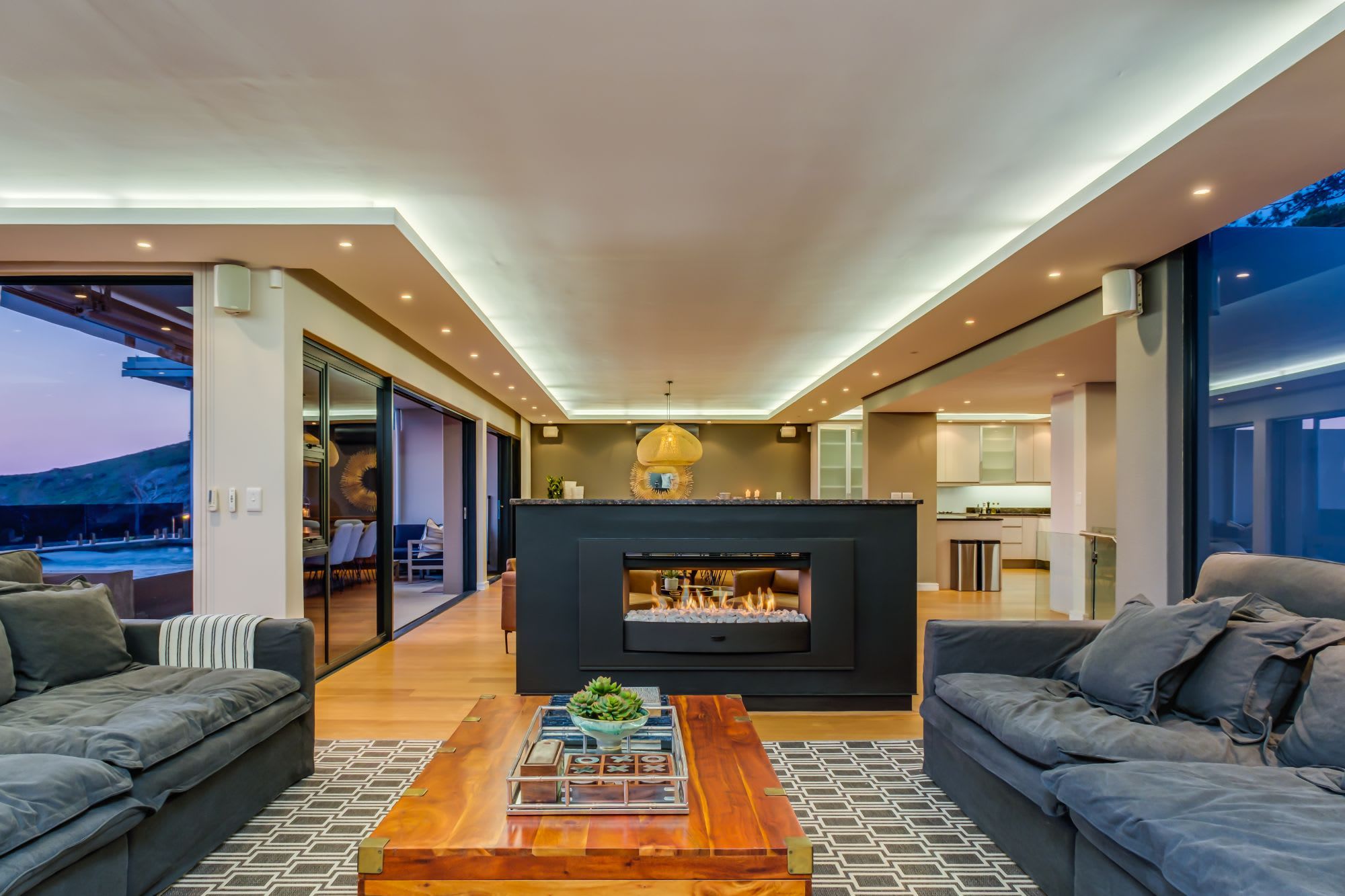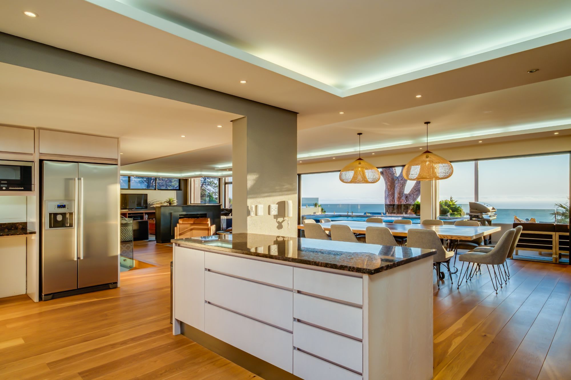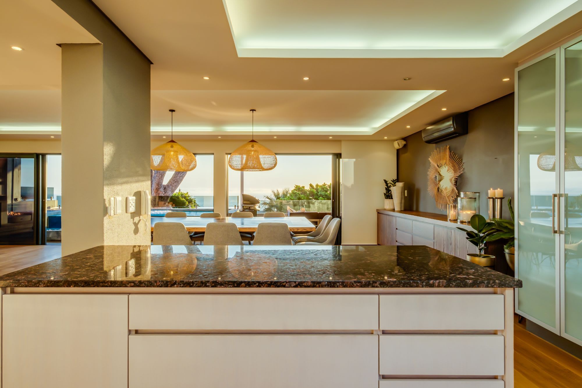 With a view of the Twelve Apostle Hills and an enviable location in Camps Bay, this family villa is a little slice of luxury in Cape Town. There’s plenty to keep the whole group entertained and pampered at the villa itself, with a swimming pool looking out towards the Atlantic, a separate plunge pool and a braai for those hot summer nights. A wall of glass slides open to blend the swimming pool terrace with the huge, open-plan living area. In here, you’ve got a vast dining table and plush lounge set around a striking feature fireplace.