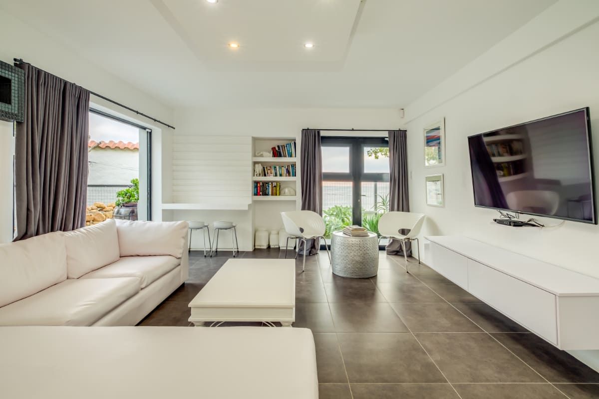 The interior boasts contemporary charm – think crisp white walls, sleek leather furnishings and expansive glass windows that frame the ocean panoramas. Enjoy the breathtaking vistas from every room – whether you’re waking up peacefully to the sunrise, indulging in a restorative bath as the tide rolls out, sharing an indulgent dinner in the elegant dining space at the golden hour, or cosying up on the plump sofa for a games night, as the moon illuminates the waves – your surrounding landscape will be ever-present.