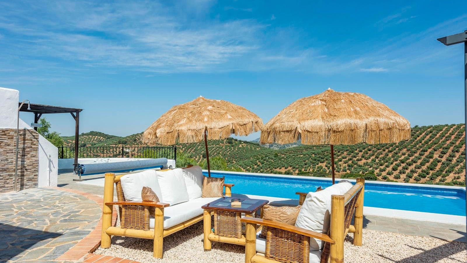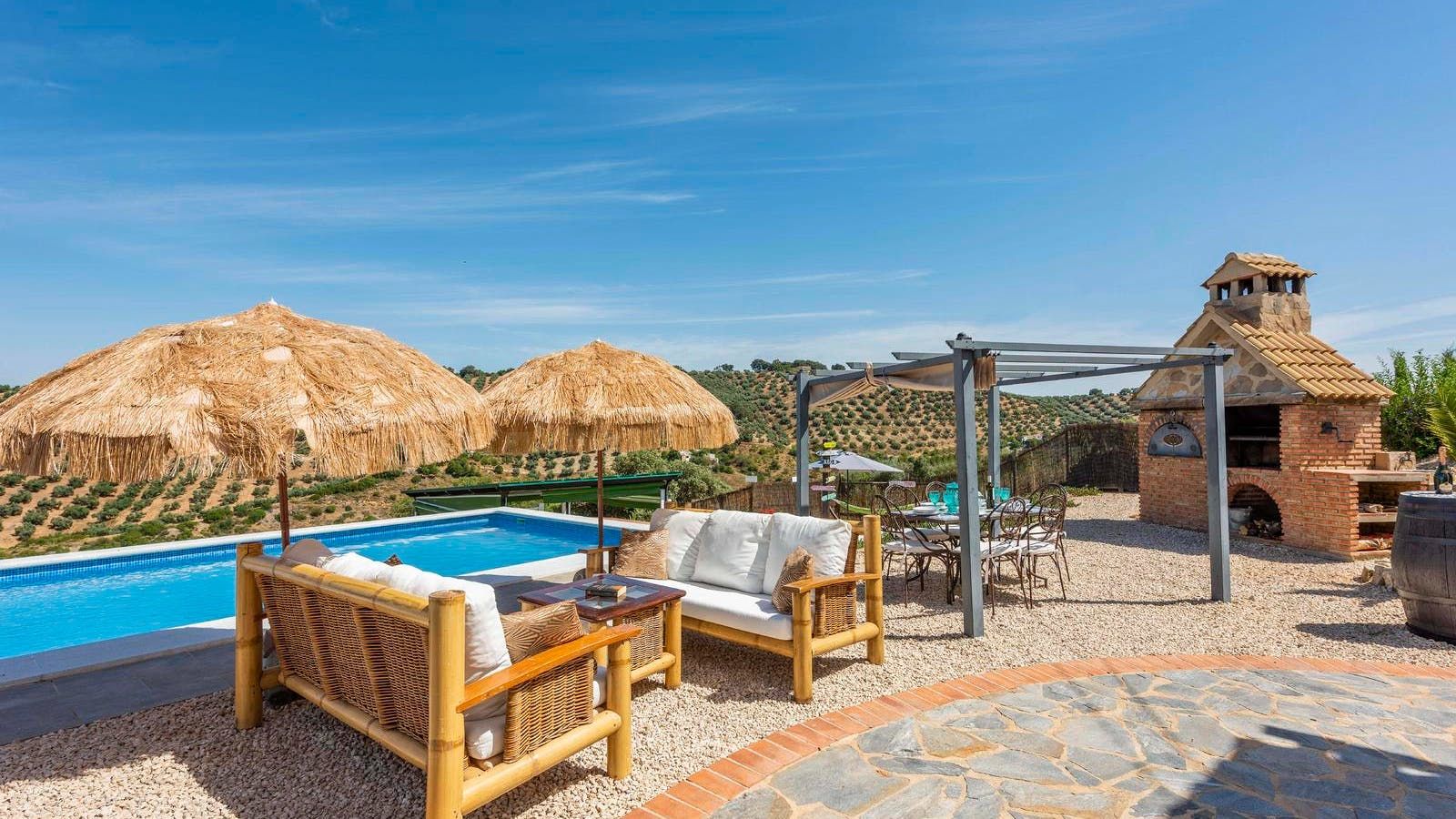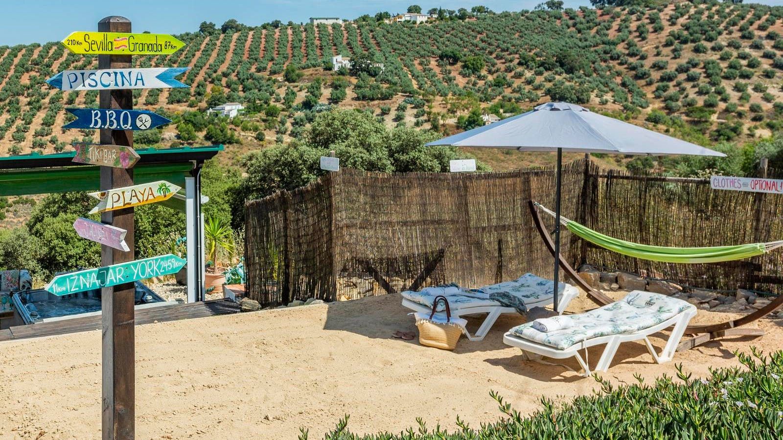 Located among the Andalusian hills, this charming holiday home is part of a larger farmhouse and is split over two floors. The place is a little dated in parts but boasts nice features, such as a private swimming pool and Jacuzzi, with stunning views of the landscape. Other amenities include a giant chess board, as well as a wood-fired oven, and a tiki bar (possibly our favourite addition). Enjoy long hikes through the surrounding area, or head to Playa de Valdearenas for an afternoon by the lake.