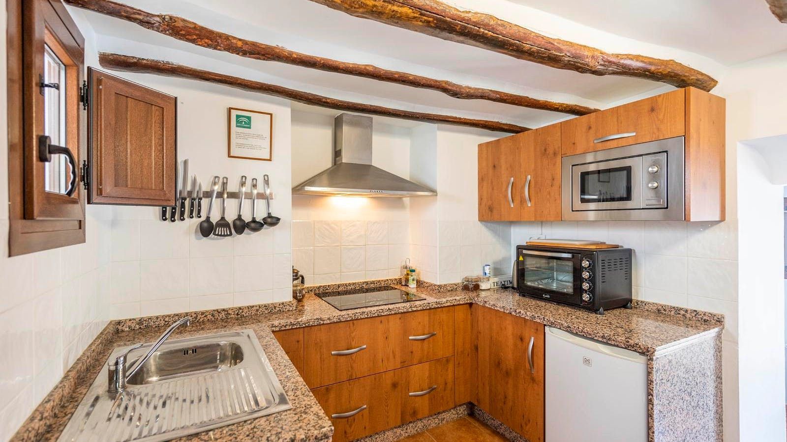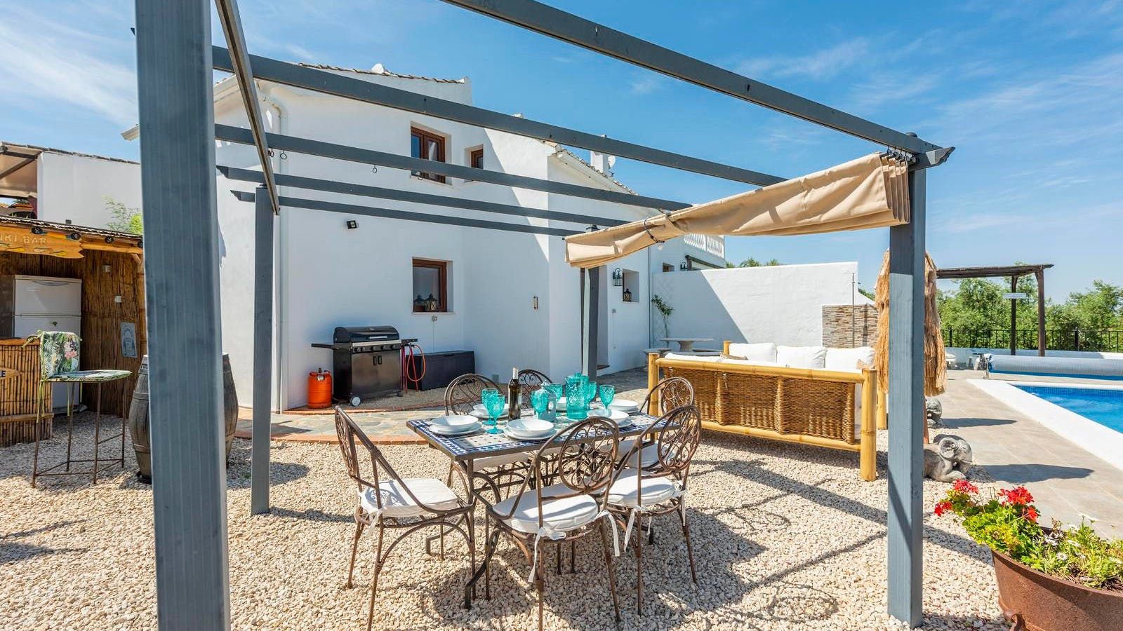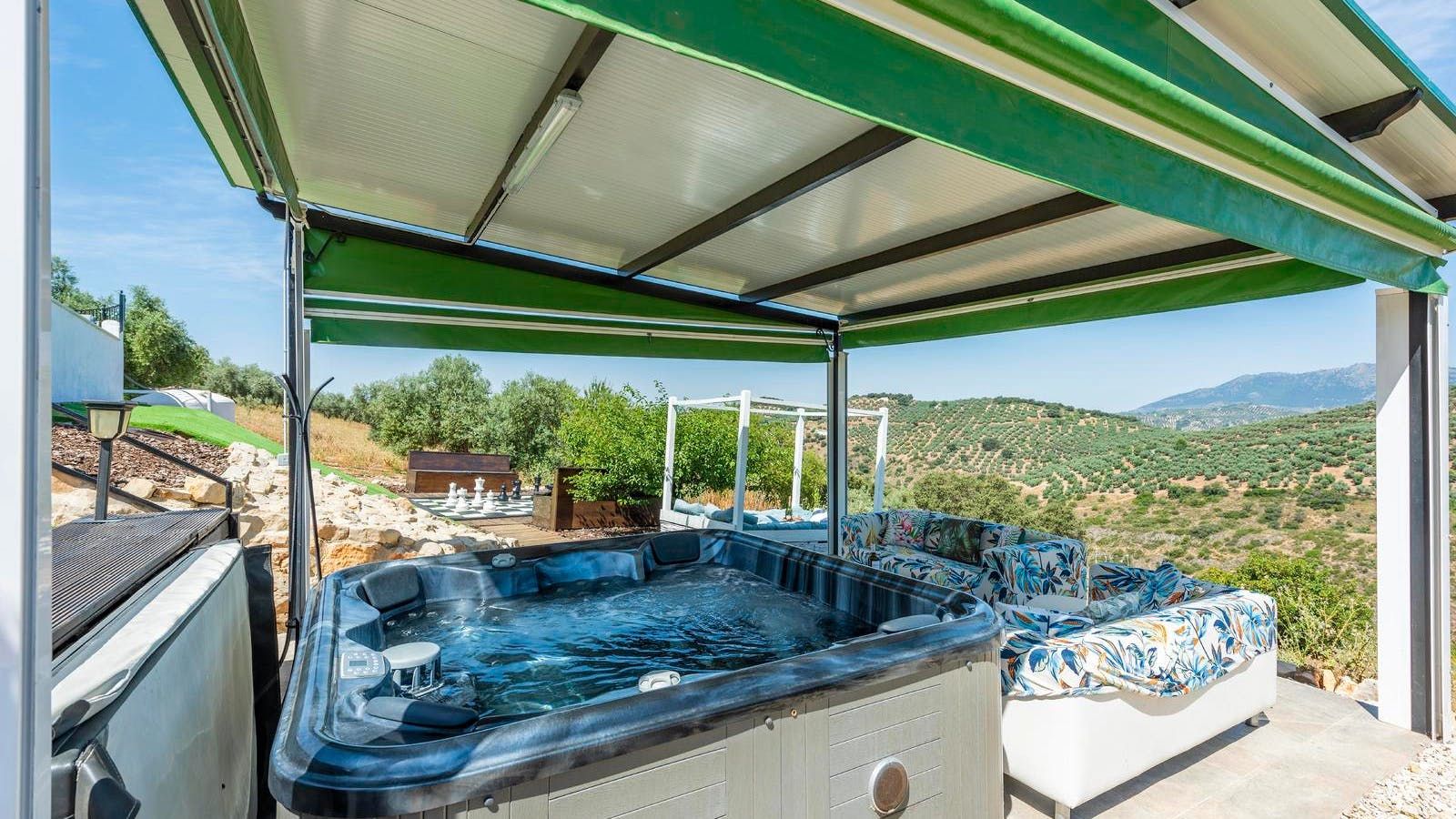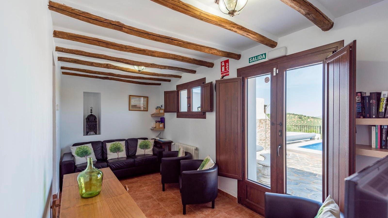 Located among the Andalusian hills, this charming holiday home is part of a larger farmhouse and is split over two floors. The place is a little dated in parts but boasts nice features, such as a private swimming pool and Jacuzzi, with stunning views of the landscape. Other amenities include a giant chess board, as well as a wood-fired oven, and a tiki bar (possibly our favourite addition). Enjoy long hikes through the surrounding area, or head to Playa de Valdearenas for an afternoon by the lake.