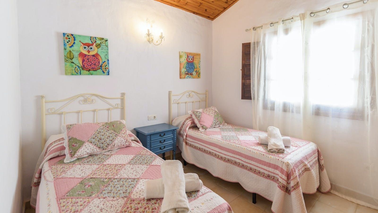 This charming home is perfect for a family getaway to the beautiful destination of Spain. Wooden furniture is sprinkled throughout, with wooden beams adorning the ceiling and walls. The blend of traditional style furniture and modern decor is the perfect combination for a cosy contemporary stay. The large windows in the living spaces provide an ample amount of daylight that allows you to snuggle up on the sofa as you read a book, accompanied by a delicious glass of red. Watch TV with your loved ones as the pool water twinkles through the window, offering you a wonderful sneak peek of the surrounding scenery.