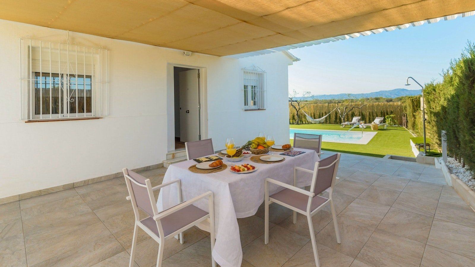 Relax the afternoon away in your hammock with a sangria in hand, the sun overhead and a good book just waiting to be enjoyed. Whether you’re enjoying a romantic getaway for two, or a few days away with the family, this Spanish home has everything you will need for a relaxing break. Your private pool surrounded by manicured gardens is the centrepiece of the outdoor area, the ideal spot to spend the evening chatting with loved ones and enjoying fine food and drink whilst the sun sets.