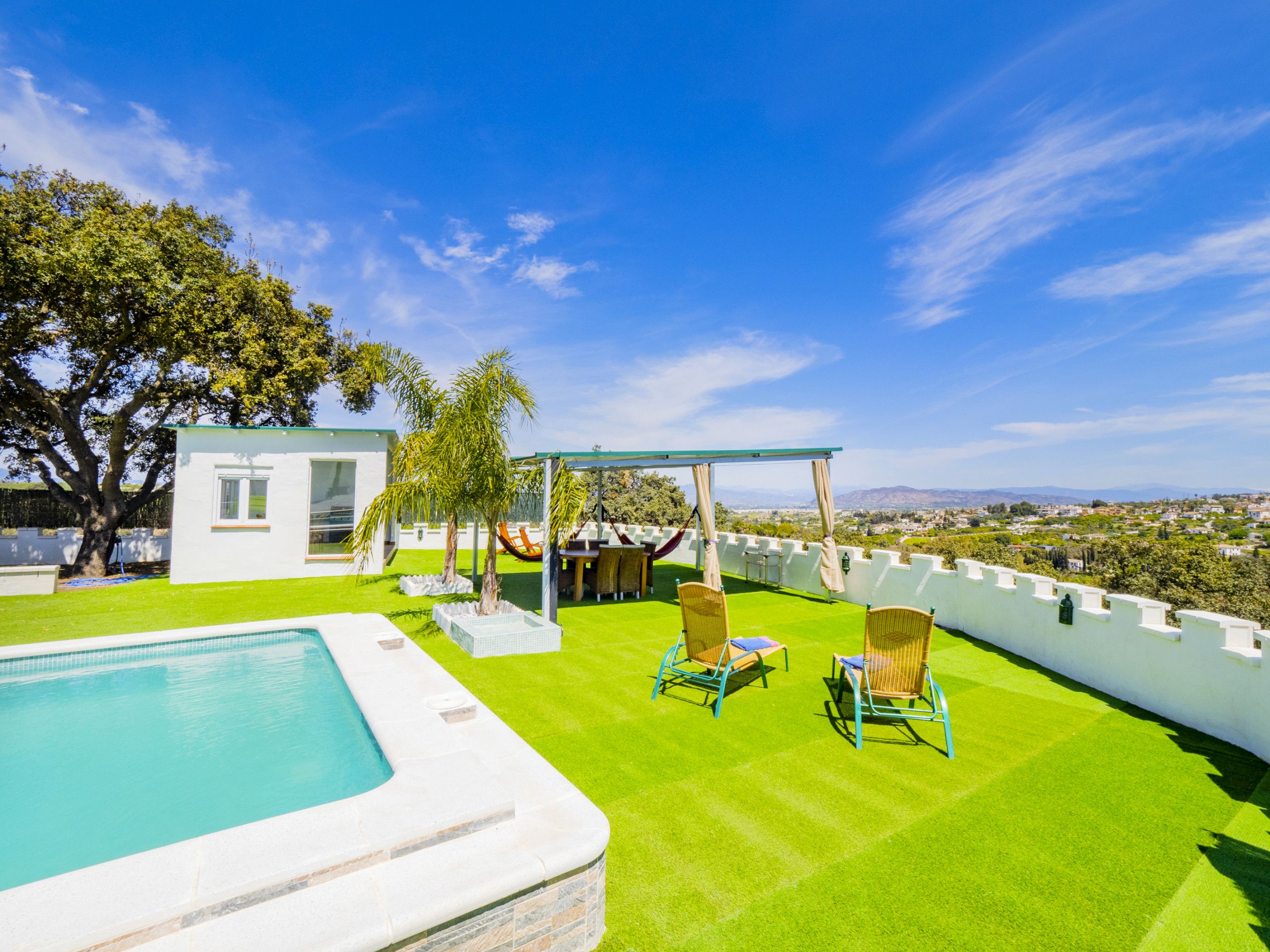 This recently built home offers gorgeous views of the lush greenery and majestic mountains around you, and is designed so you can enjoy a full day of sunlight, from sunrise to sunset. The outdoor area is colourful and fun, with a private outdoor pool, a funky hammock area, and an impressively green lawn. The inside of the house is expertly designed too, with each bedroom benefitting from their own en-suite bathroom and their own terrace with seating. It's ideally located for exploring Alhaurín el Grande, as well as the beaches of the Costa del Sol, based just a short drive away.