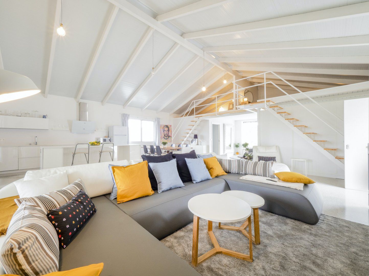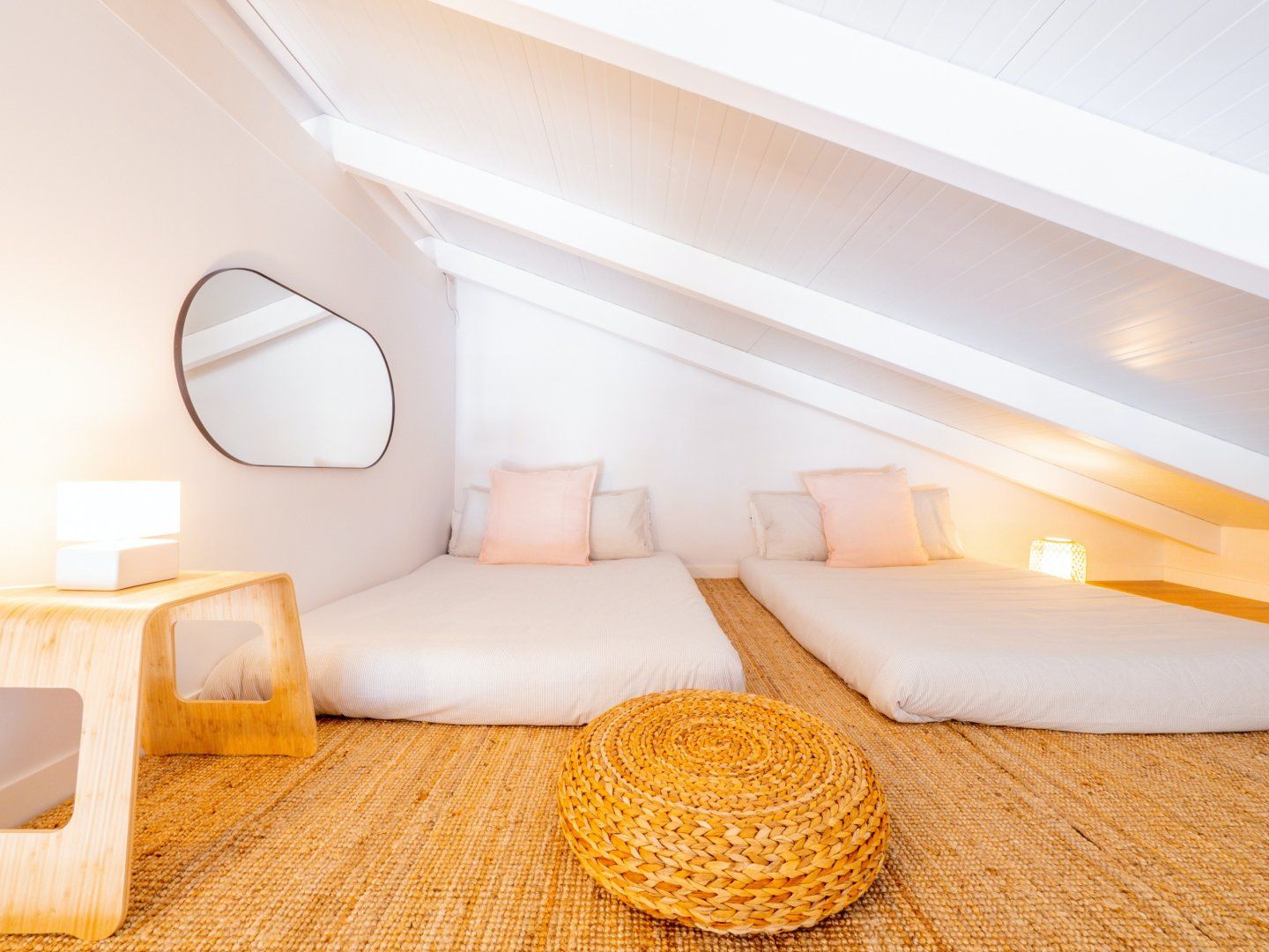 *Apart from the main king bed on the ground floor, the beds on the mezzanine level of this home consist of mattresses on the floor – the single beds especially are more suitable for children