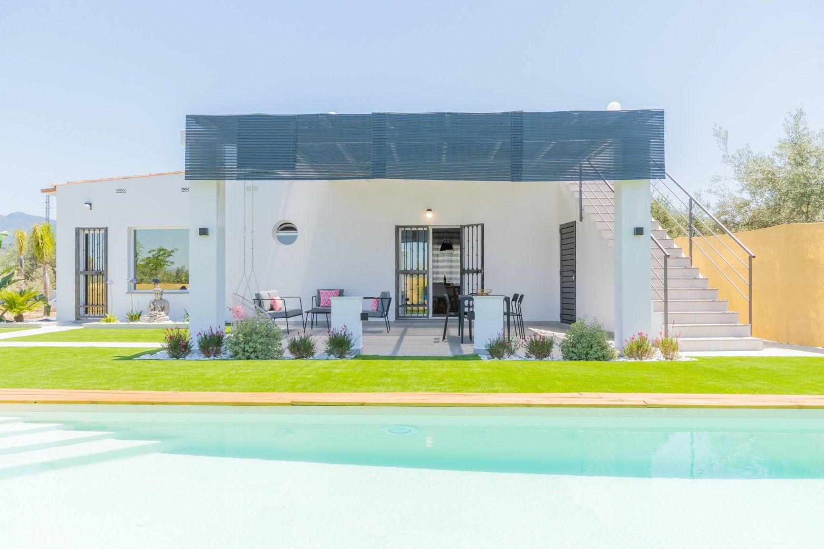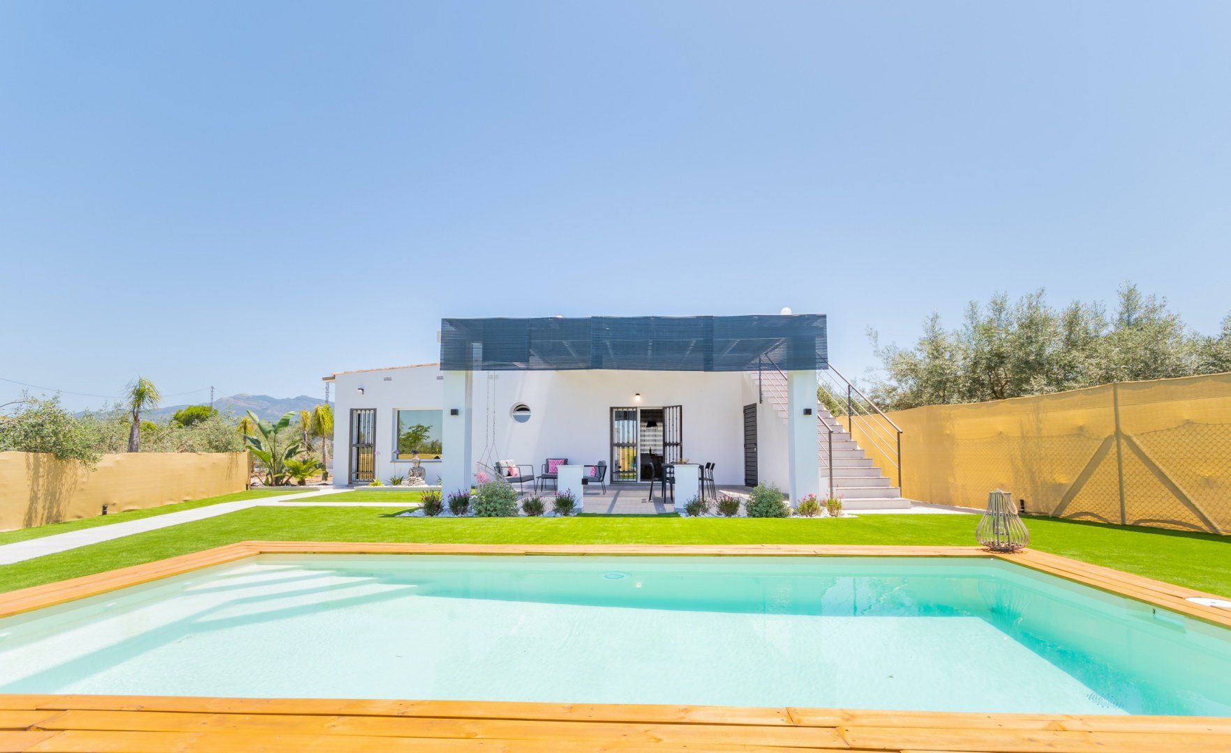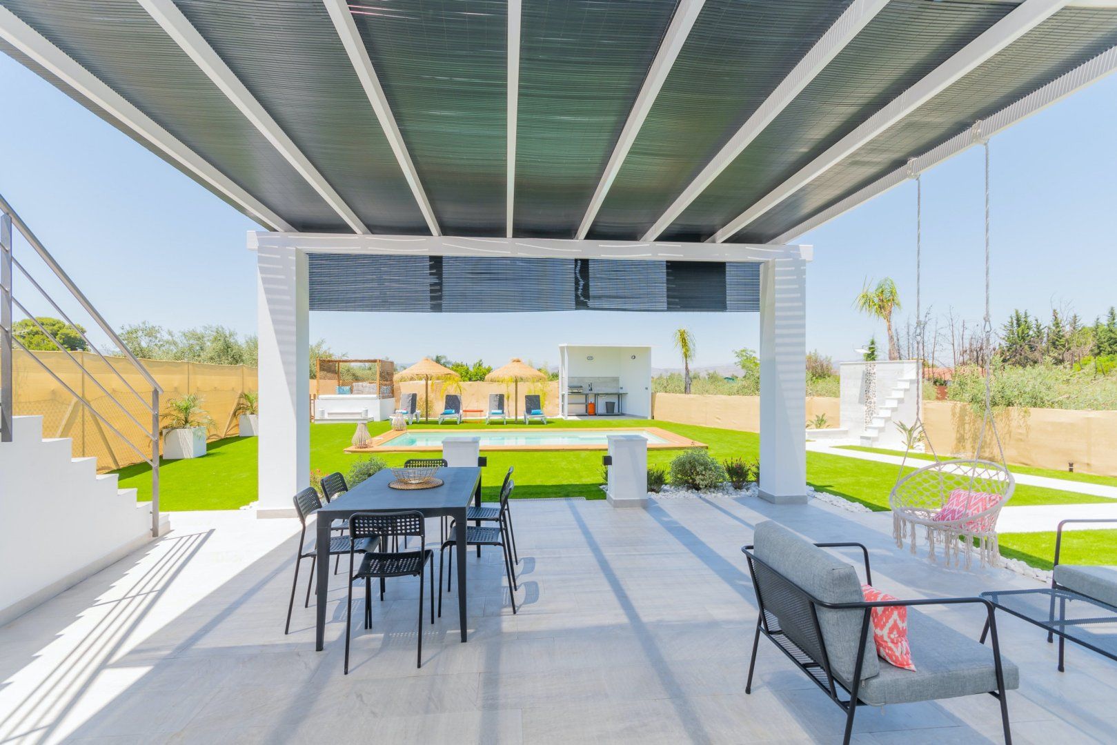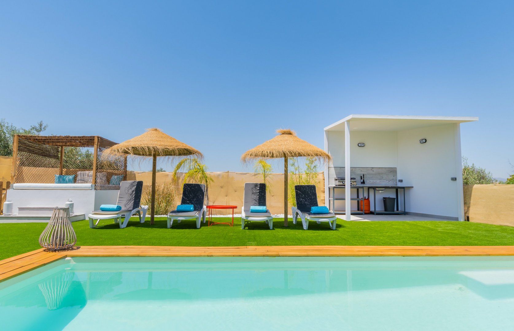 When you’re not soaking up the sun from the poolside loungers, spend the day on the shaded Balinese daybed, turning pages of your new book. After hiking the local mountain trails or teeing off one of the nearby golf courses, you’ll love returning home for a soak in the master suite’s tub. The sleek and modern kitchen is perfect for rusting up tapas dishes – where better to savour a Mediterranean feast than alfresco on the terrace – there’s a barbecue too for grilled dishes. As the stars descend, enjoy an evening dip in the pool or share a glass or two of Sierras de Málaga Syrah in the outdoor lounge.