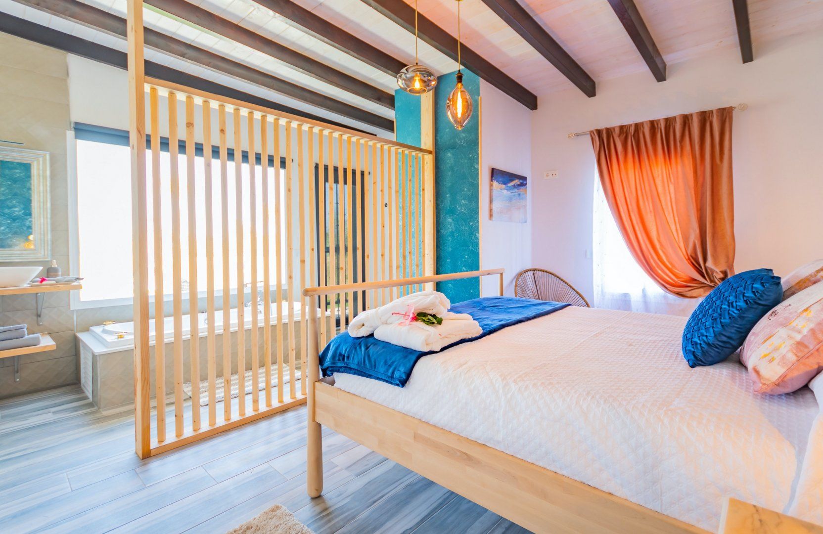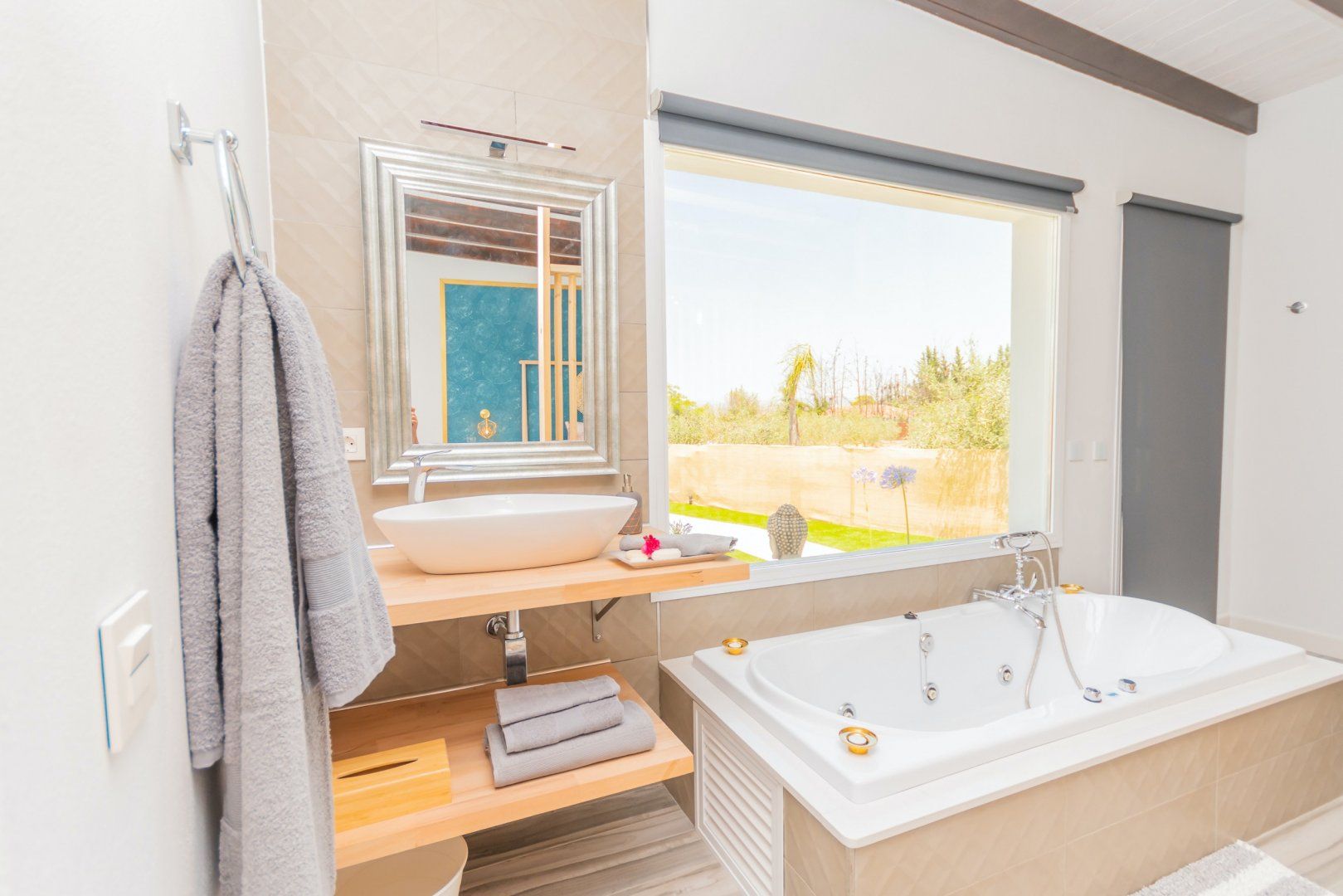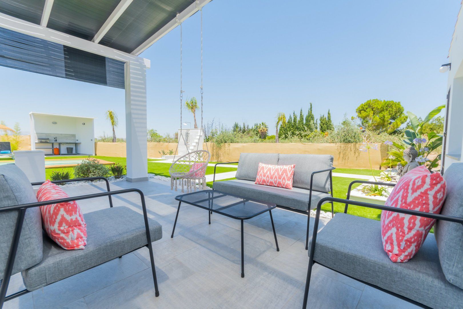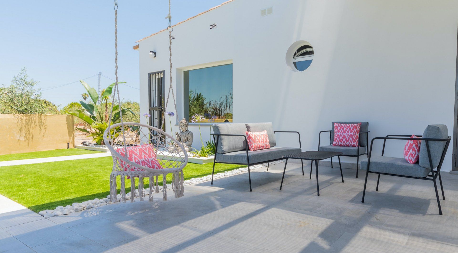 When you’re not soaking up the sun from the poolside loungers, spend the day on the shaded Balinese daybed, turning pages of your new book. After hiking the local mountain trails or teeing off one of the nearby golf courses, you’ll love returning home for a soak in the master suite’s tub. The sleek and modern kitchen is perfect for rusting up tapas dishes – where better to savour a Mediterranean feast than alfresco on the terrace – there’s a barbecue too for grilled dishes. As the stars descend, enjoy an evening dip in the pool or share a glass or two of Sierras de Málaga Syrah in the outdoor lounge.