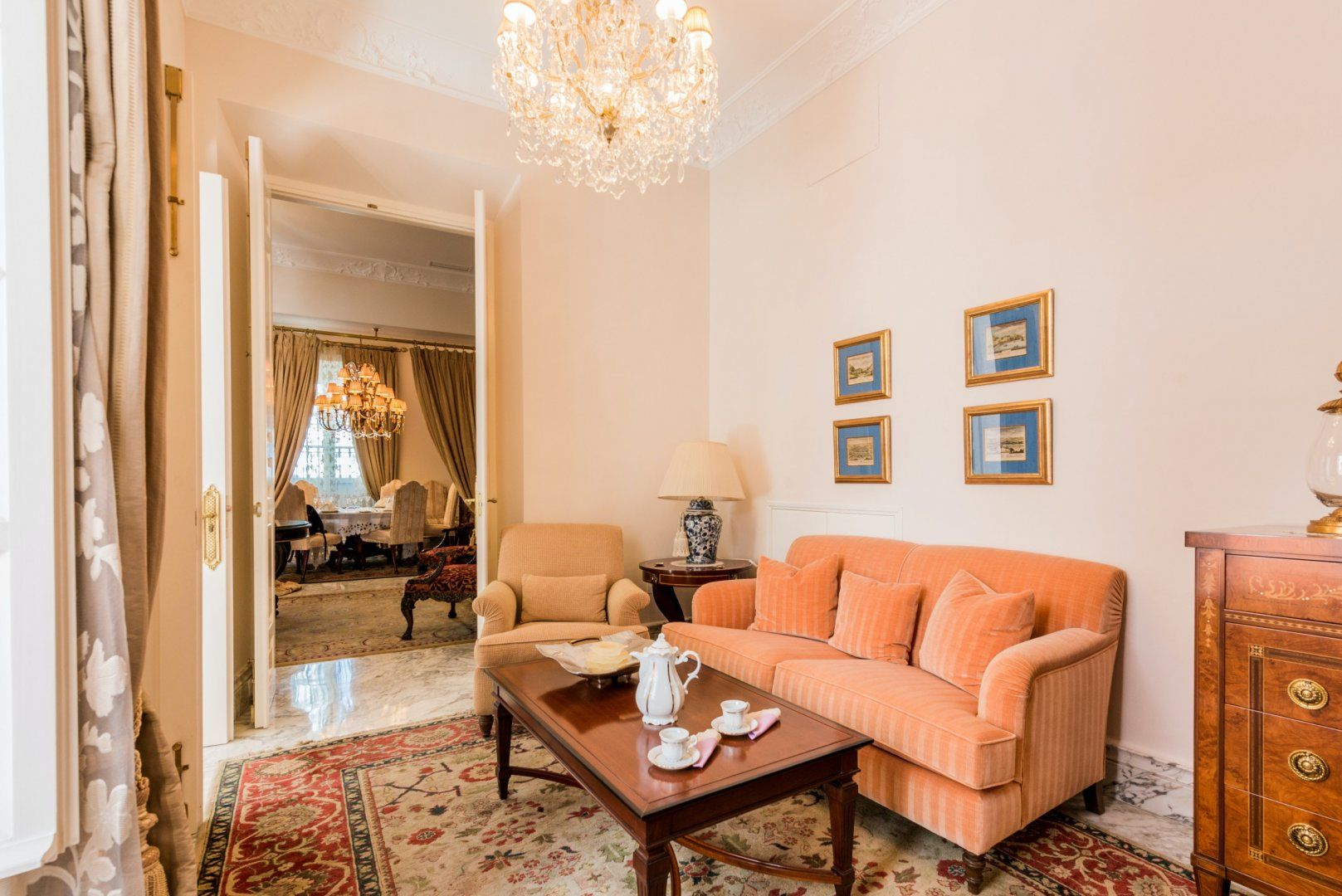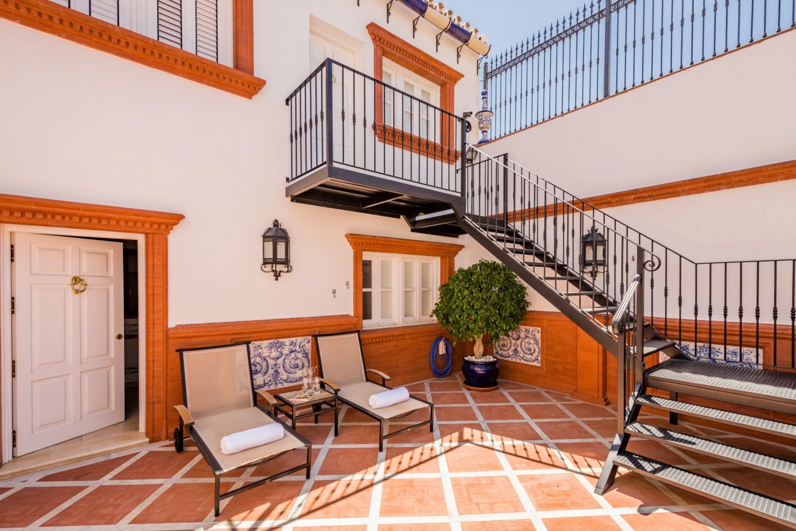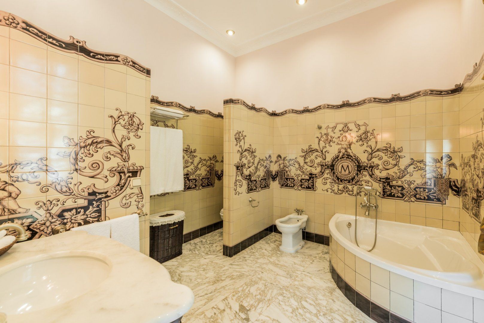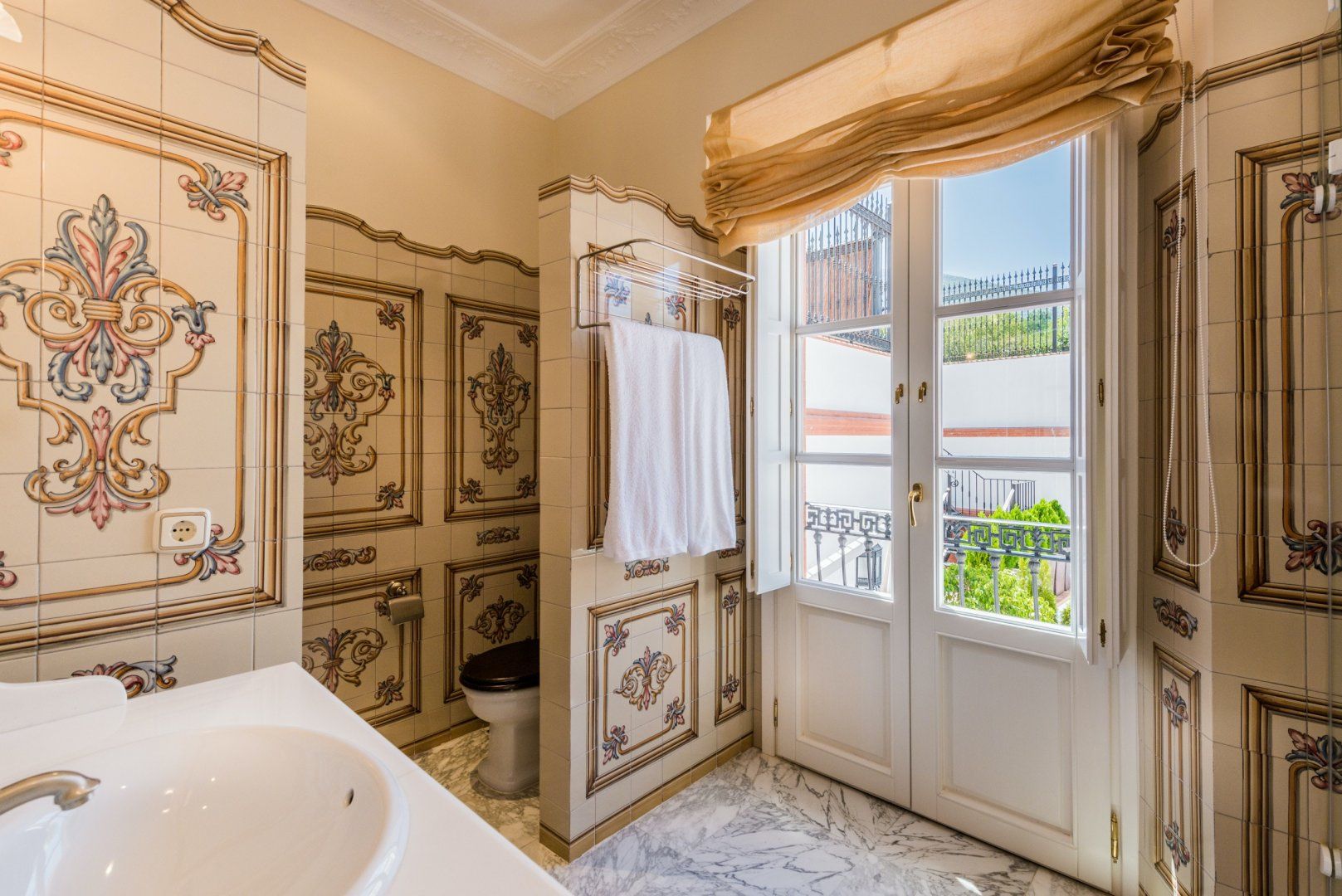 Even the entrance to this home is awe-inspiring. Adorned with blue and white tiles, hand-painted by the lost artisans of Seville, this hallway gives a whole new meaning to the phrase "if walls could talk." You'll also find an original stone motif and lattice, dating all the way back to 1882. This home seamlessly blends historic features with modern-day living to create a space that's not only inviting but has an incredible sense of whimsy.