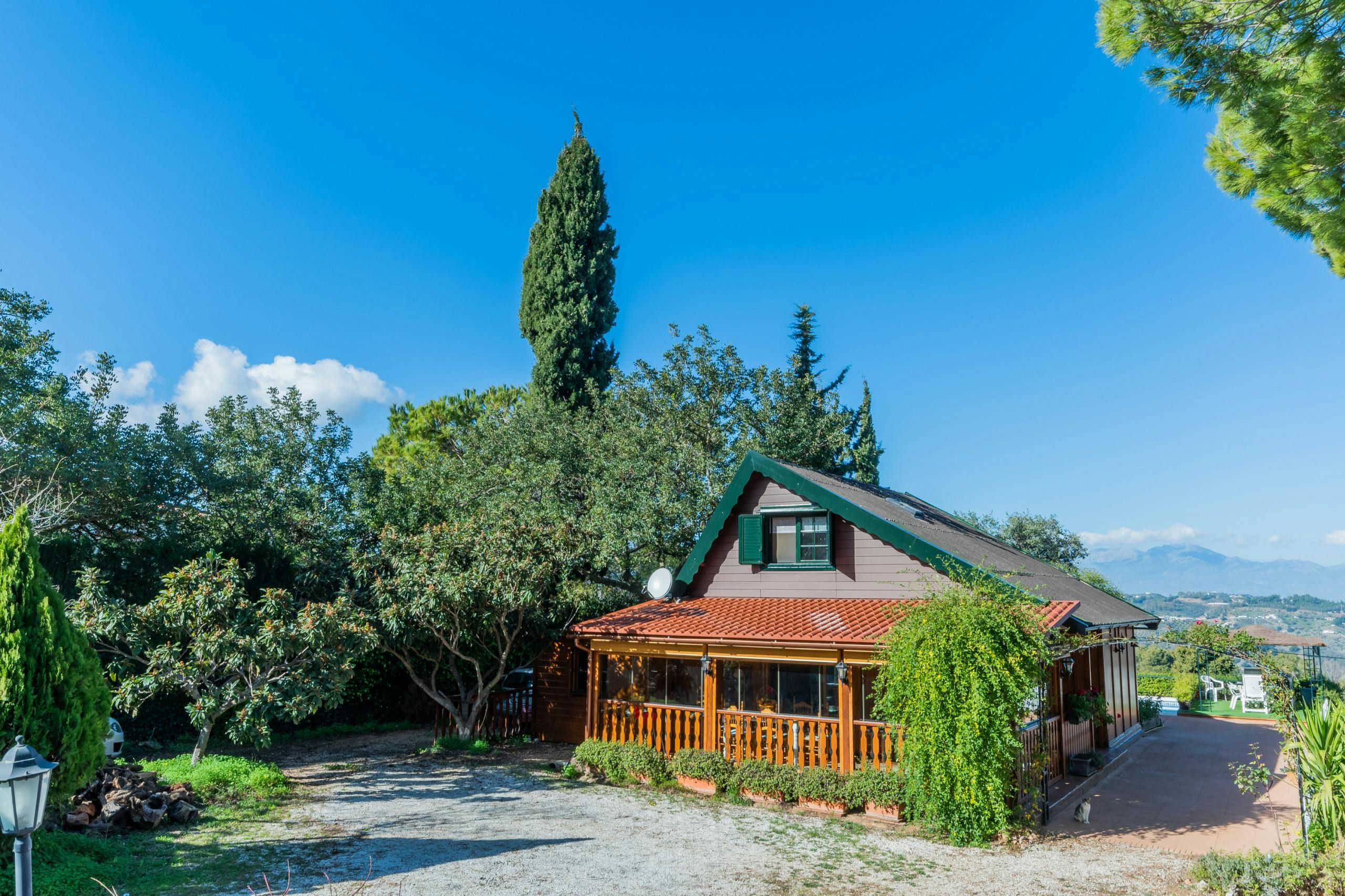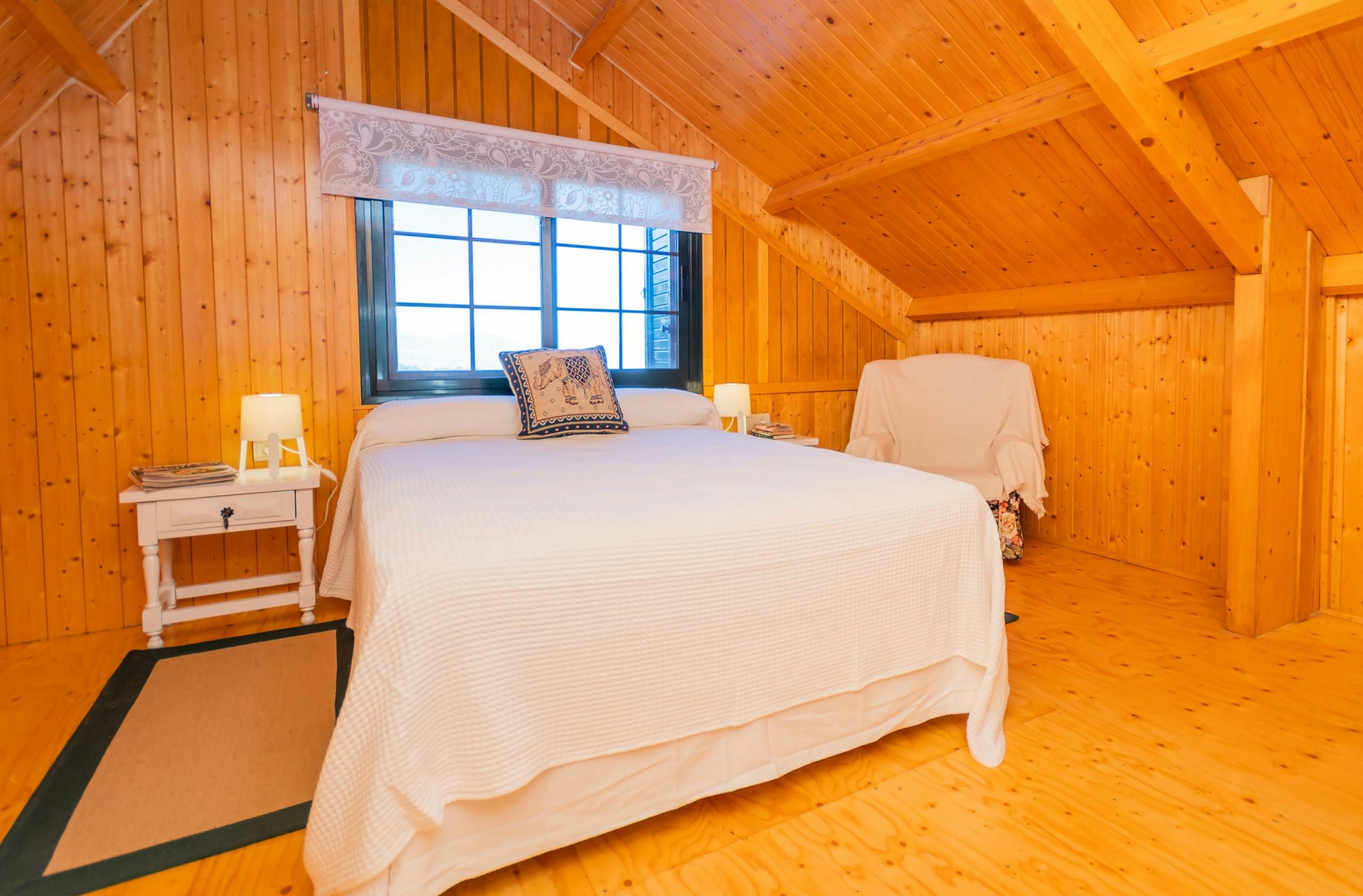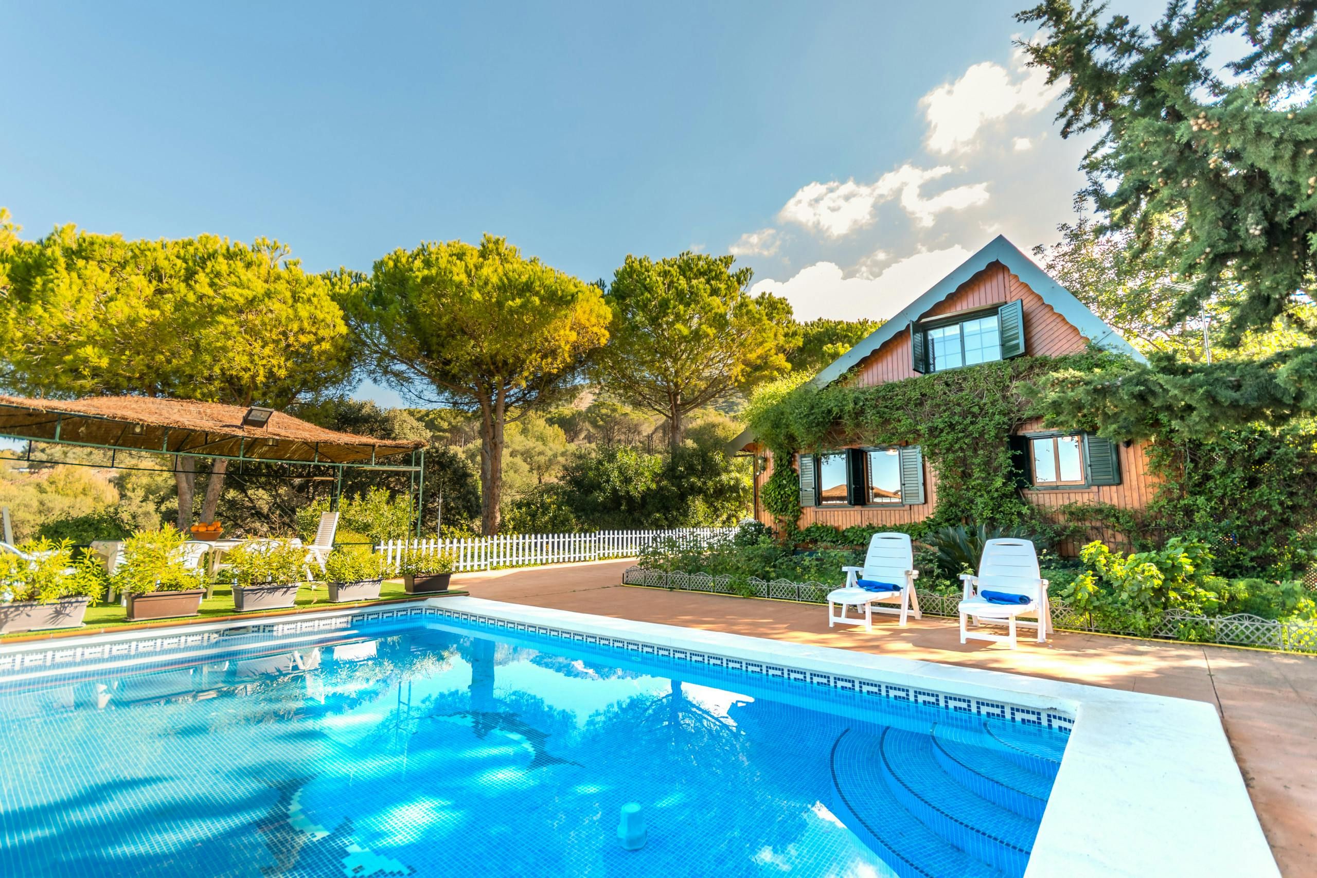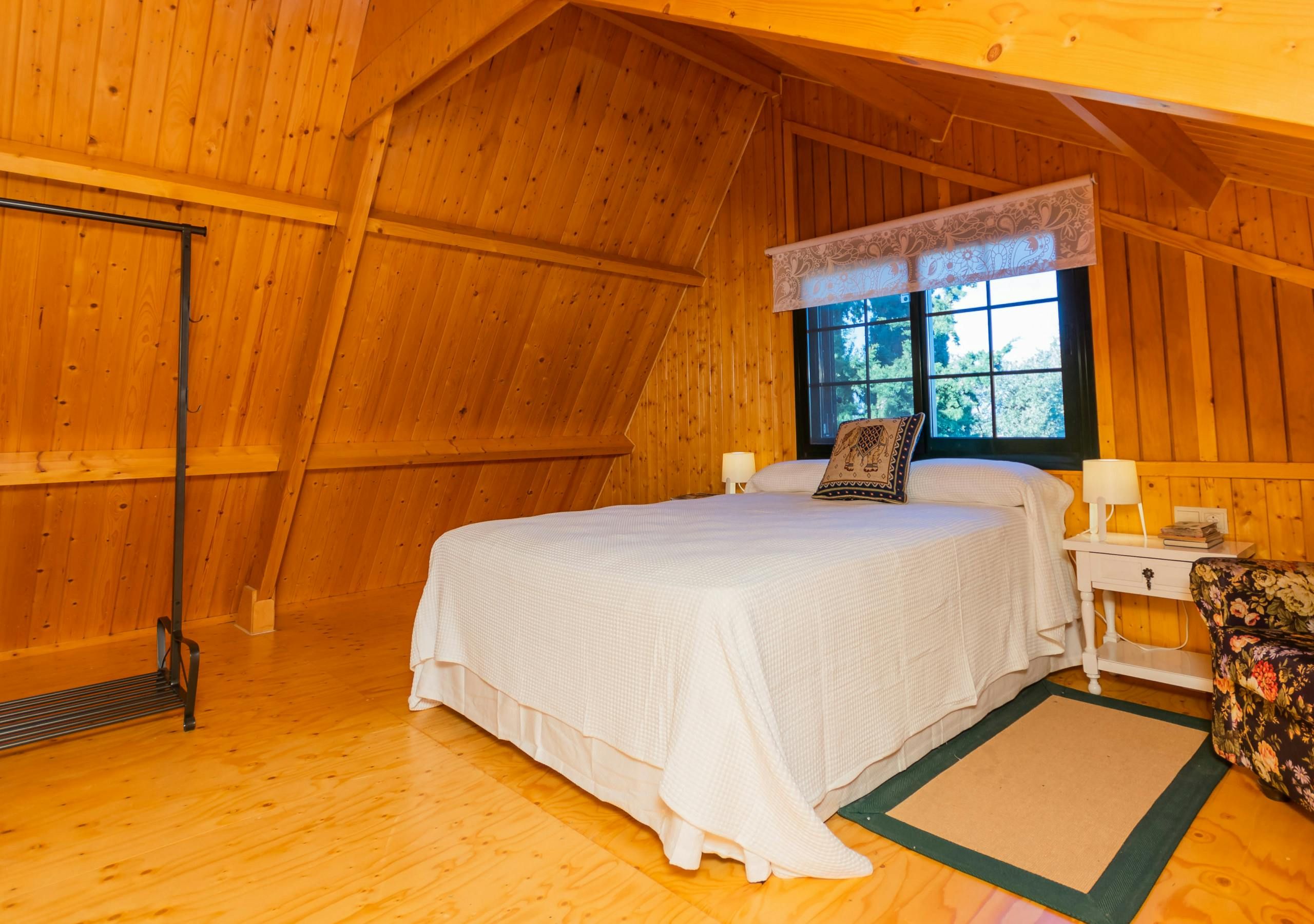 Surrounded by forests, this woodland home borders the Great Path of Malaga and offers a unique natural environment in which to relax. Located less than a five-minute drive from Alhaurín el Grande with the sandy beaches of Fuengirola just thirty minutes away by car, it's an ideal base for those wanting to explore the area. The home has a private pool with stunning forest views and a fabric pergola furnished with an outdoor table for alfresco dining. There's also a cosy glazed terrace that doubles as a dining room and reading area, so you can soak up the views of the garden and mountain all afternoon long. While the decor is rustic and feels much like cabin living, those looking for an all-natural getaway will appreciate its simplicity.