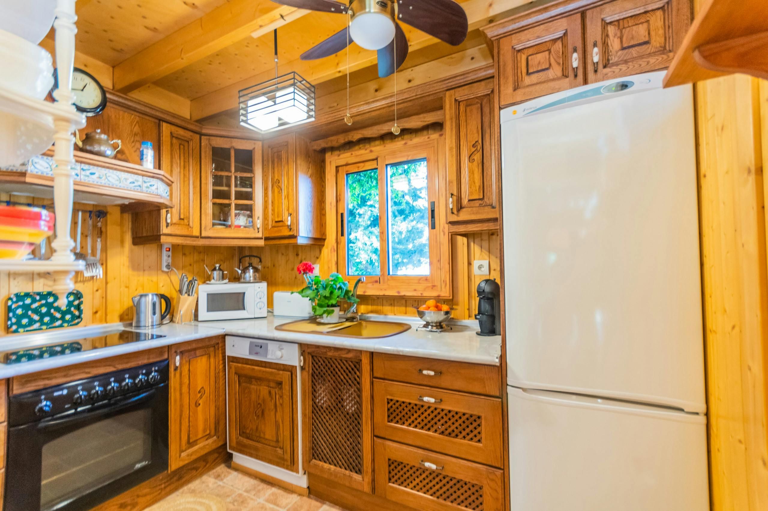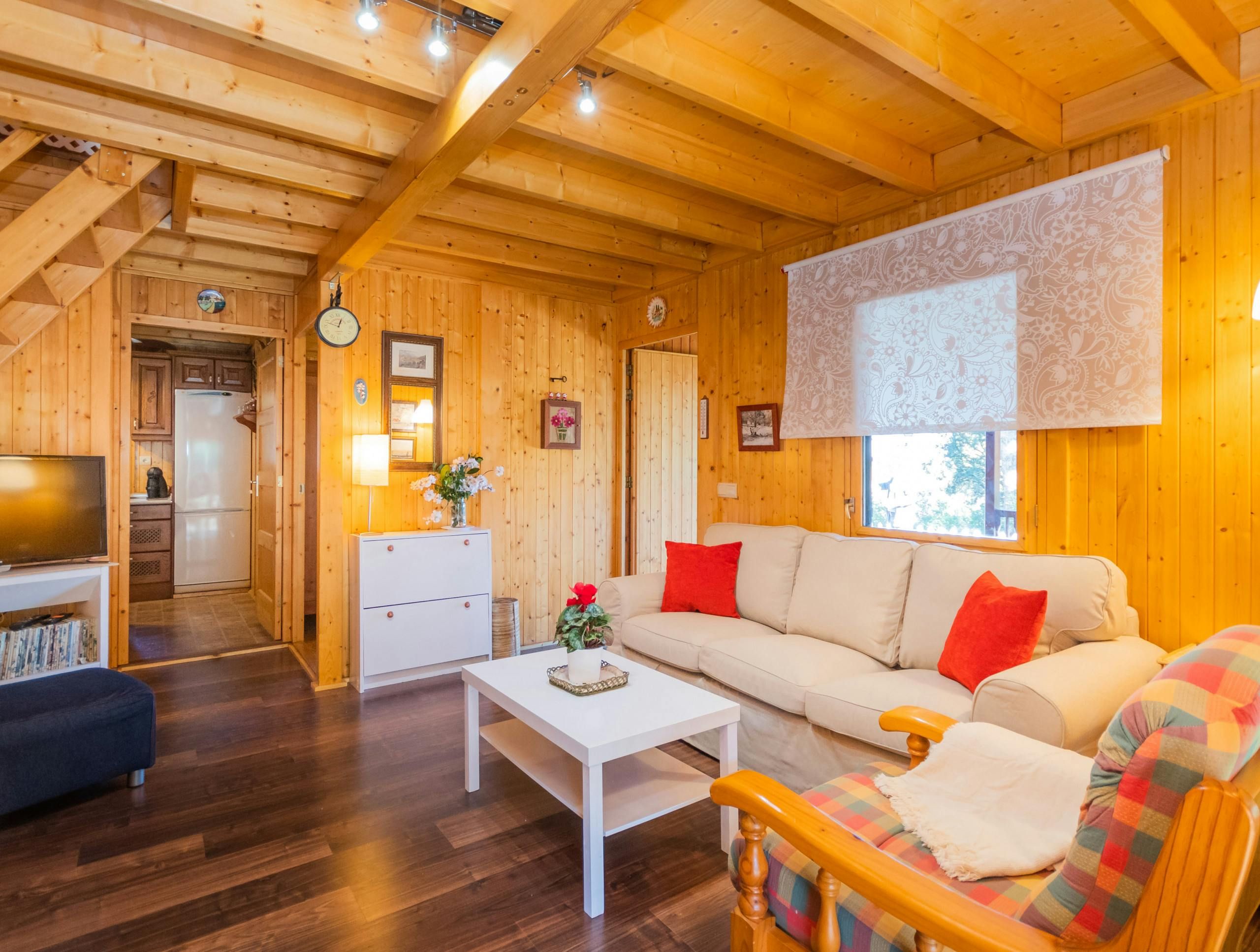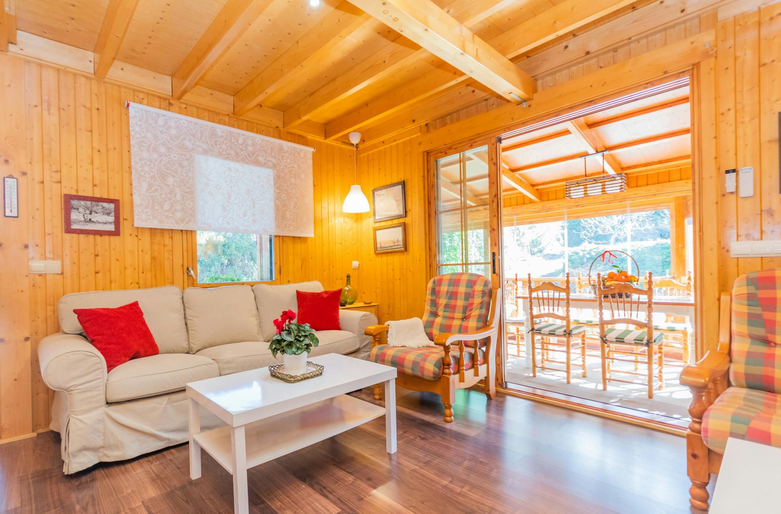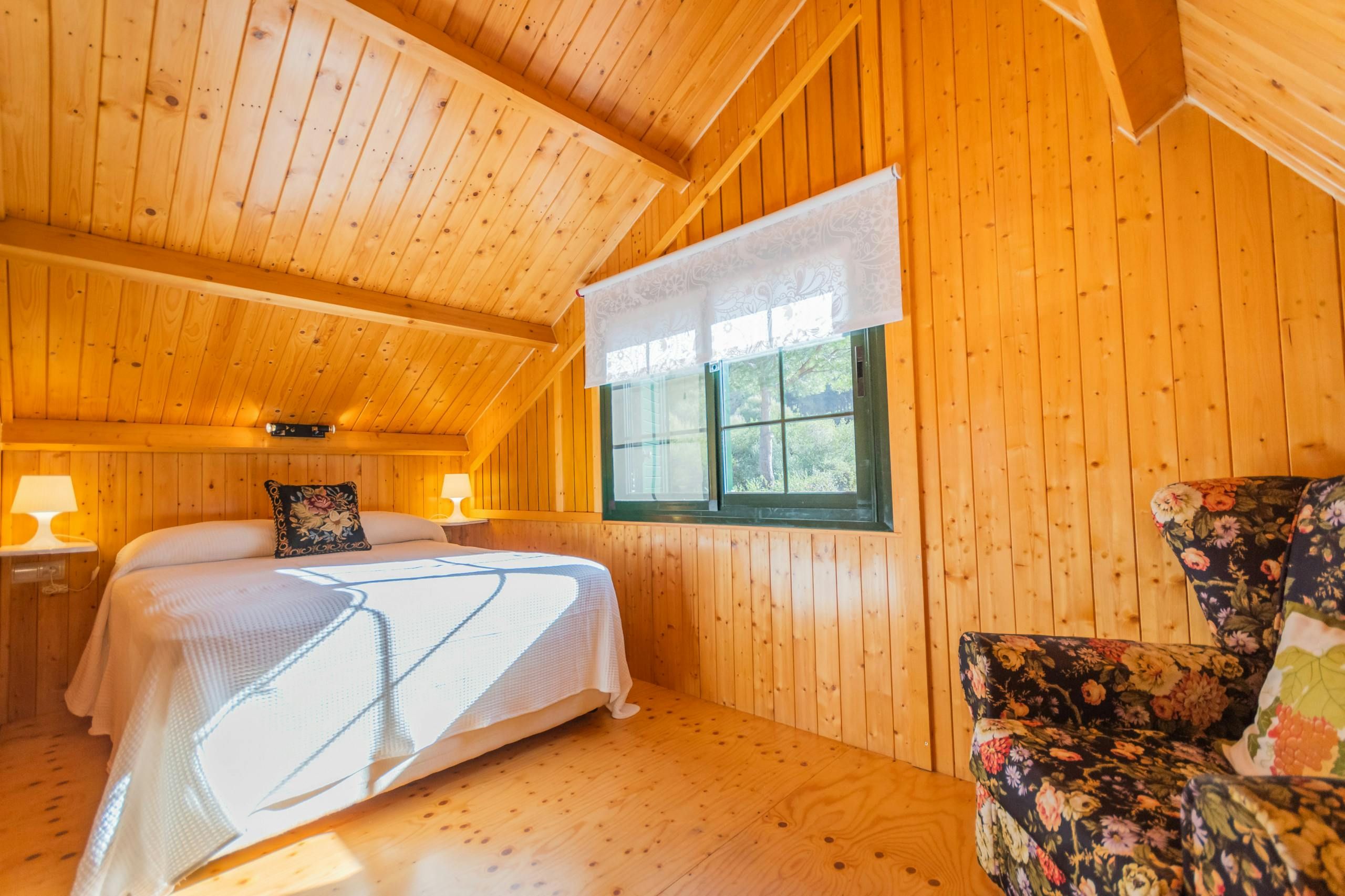 Surrounded by forests, this woodland home borders the Great Path of Malaga and offers a unique natural environment in which to relax. Located less than a five-minute drive from Alhaurín el Grande with the sandy beaches of Fuengirola just thirty minutes away by car, it's an ideal base for those wanting to explore the area. The home has a private pool with stunning forest views and a fabric pergola furnished with an outdoor table for alfresco dining. There's also a cosy glazed terrace that doubles as a dining room and reading area, so you can soak up the views of the garden and mountain all afternoon long. While the decor is rustic and feels much like cabin living, those looking for an all-natural getaway will appreciate its simplicity.