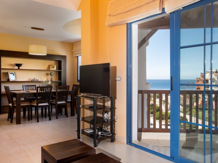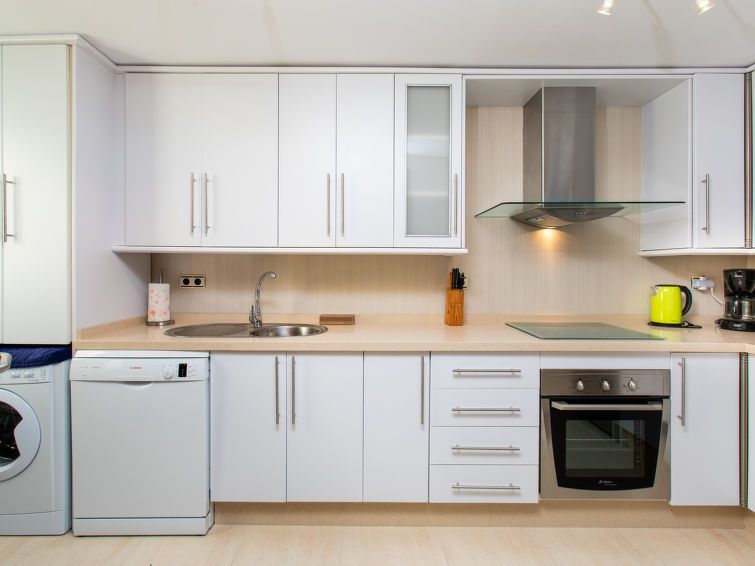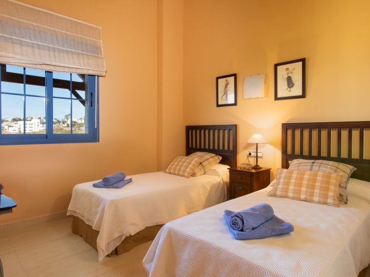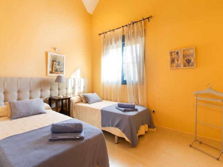 "Mirador Galera Playa", 4-room apartment 110 m2. Spacious and bright, practical and tasteful furnishings: living/dining room with TV, air conditioning and forced-air heating. Exit to the terrace. 1 room with 2 beds (90 cm, length 190 cm), air conditioning and forced-air heating. 1 room with 2 beds (90 cm, length 190 cm), air conditioning and forced-air heating.