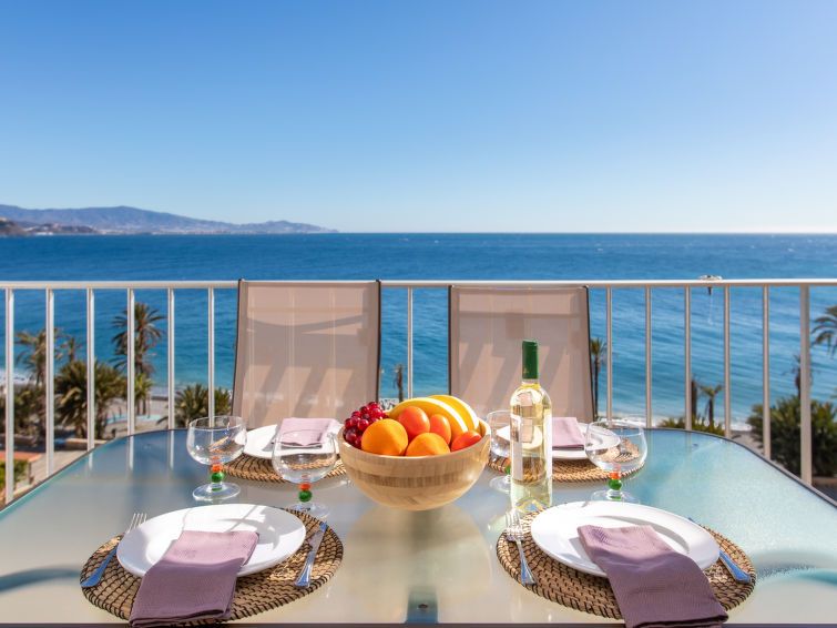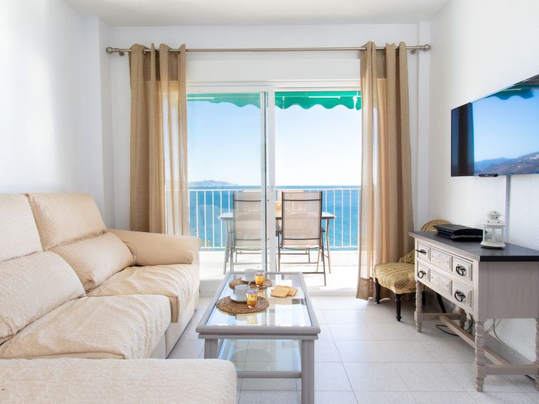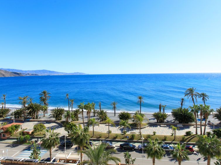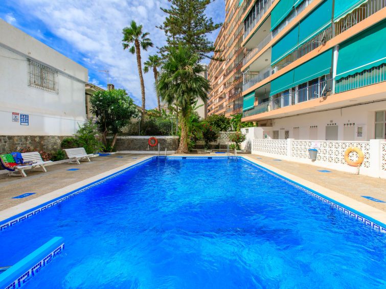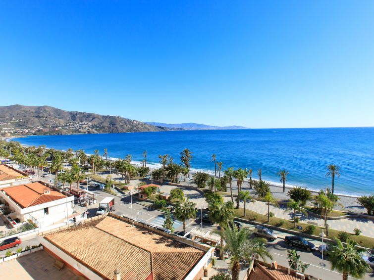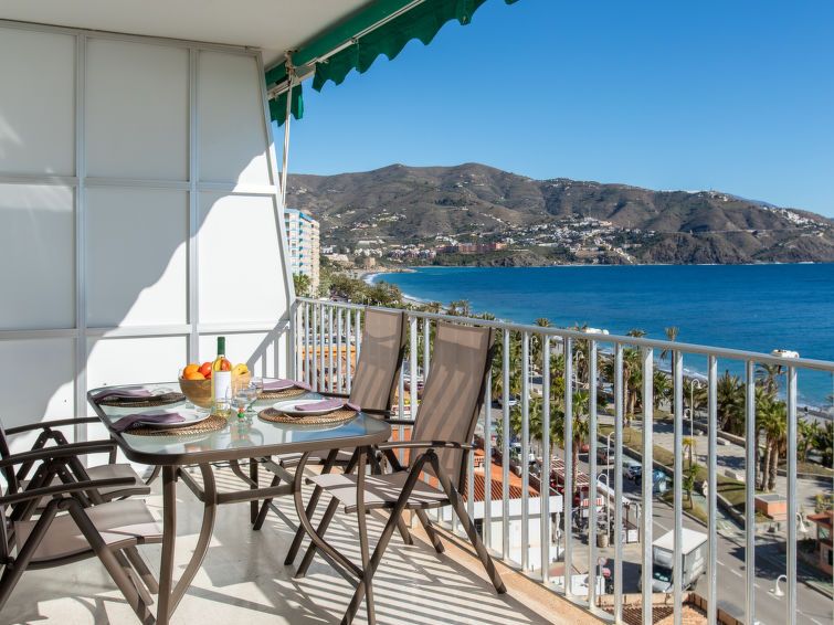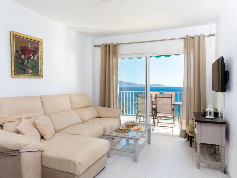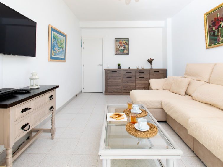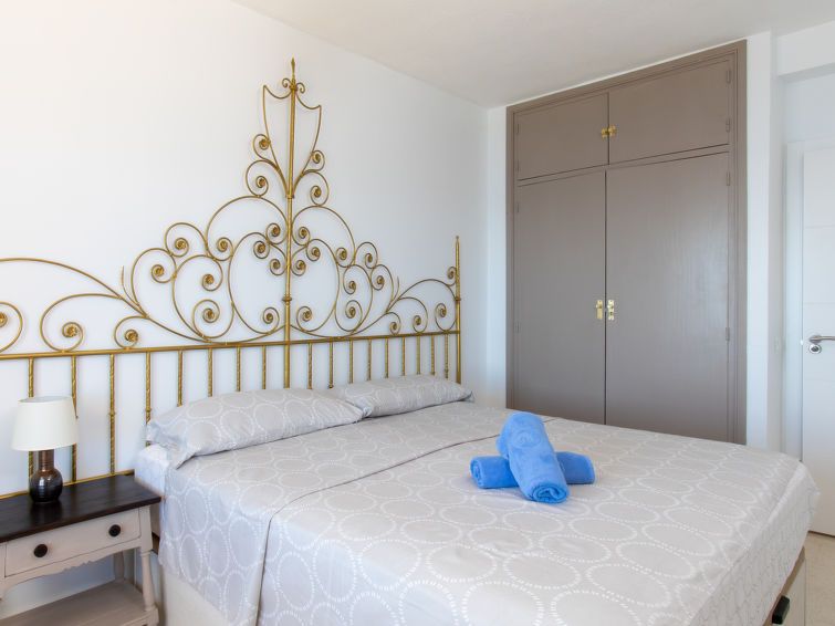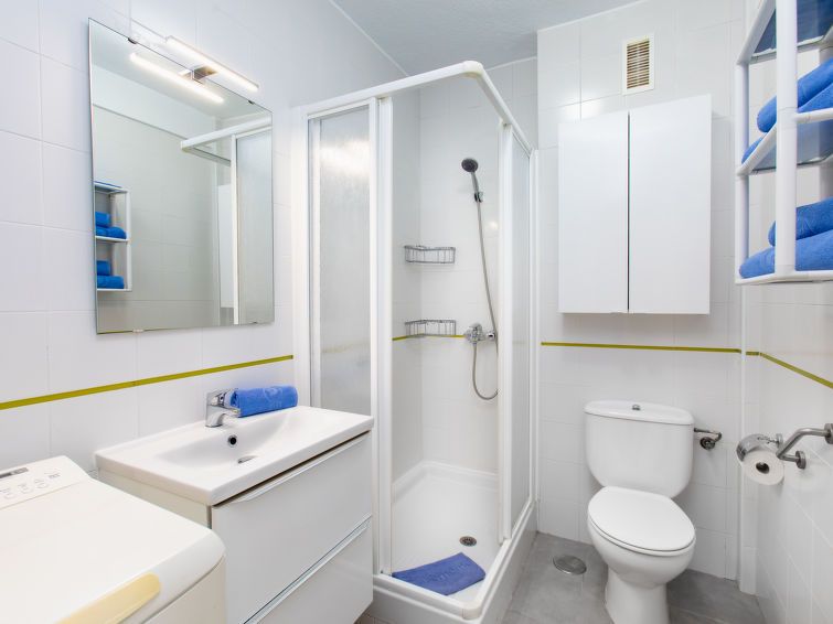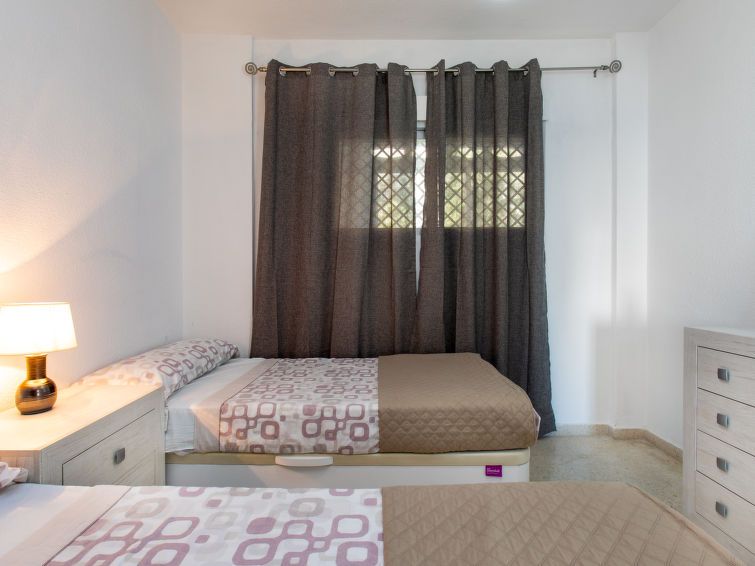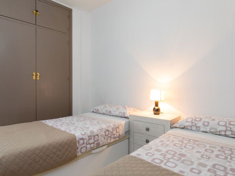 "Velilla", 3-room apartment 65 m2 on 7th floor, south facing position. Bright, simple and practical furnishings: living/dining room with digital TV. Exit to the terrace. 1 room with 2 beds (90 cm, length 190 cm), fan. 1 room with 1 french bed (180 cm, length 200 cm), fan. Open kitchen in the entrance (4 hot plates, oven, toaster, kettle, microwave, freezer, electric coffee machine, Capsules for coffee machine (dolce gusto)) with air conditioning and forced-air heating.