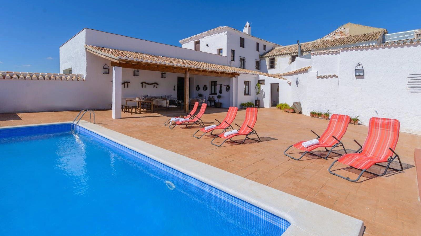 The owners of this former mill have gone to great lengths to preserve its original spirit. In fact, you can admire its impressive traditional features whilst relaxing in the living room or cooking in the kitchen. And while there’s plenty of rustic charm, there are also contemporary comforts here too – including the private swimming pool and outdoor bar area. From here, lazy days can be spent relaxing at home, admiring the beautiful views or exploring the Andalusian countryside. You’ll find Villanueva de Tapia is just 4.3 kilometres away, while the beaches of the Costa del Sol are 60 kilometres away.