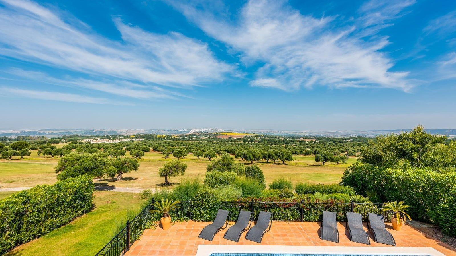 Just eight kilometres away from the white town of Arcos de la Frontera – which is perched dramatically atop a limestone ridge – this peaceful villa sits in an elegant suburb. Overlooking a pristine golf course, you'll see stunning scenery stretching out to the horizon.