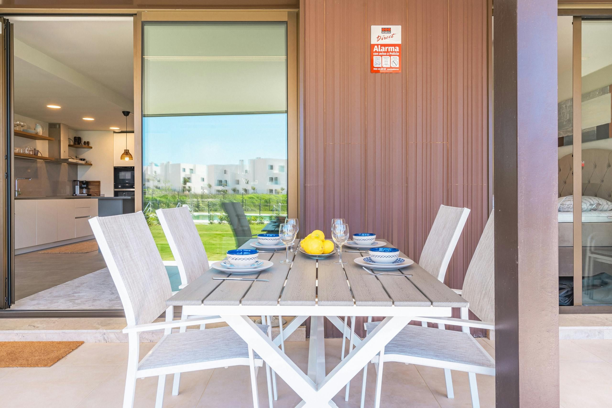 The stretch of coastline between Estepona and Sabinillas offers all the typical Costa del Sol attractions – golfing, beaches, and charming seaside resorts. This family-friendly apartment in Casares Costa is a great base for exploring the local area – but equally, an inviting spot for a lazy, sun-soaked break. The open-plan living space and wide patio doors make for an ideal layout for gatherings, and you're spoiled by the size of the dining terrace. Little ones will love playing on the lawn (a benefit of a ground-floor home, even if you don't have the best sea view), and there are two pools on the resort to keep them entertained, too.