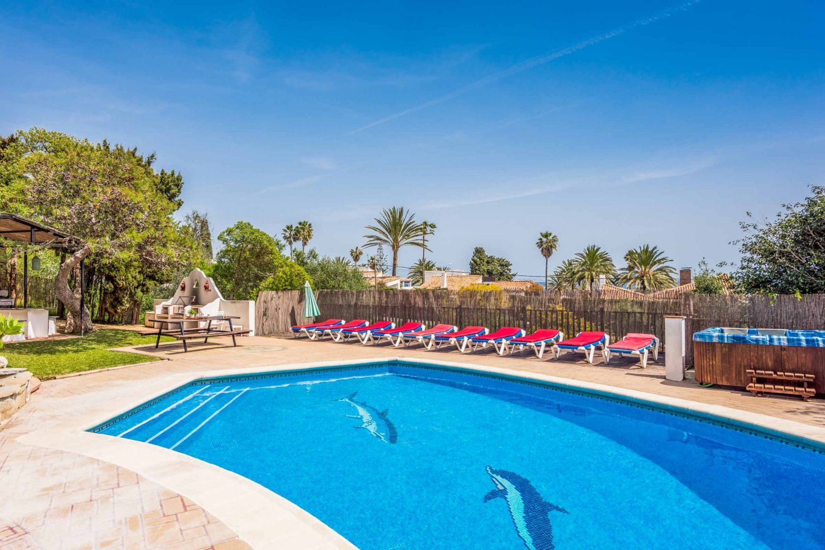 This home's lush garden and central location in a popular Costa del Sol resort combine to create a hidden oasis for you and your guests to retreat to after a day at the nearby beach, hidden away by large plants. With plenty of bathrooms, there will be no holdup in the mornings, while the pool has plenty of sun loungers for everyone. Bedrooms open up onto the garden and upstairs terrace, meaning you're never more than a few seconds from the sun. In the evenings, you might like to try out the home's hot tub, although this comes with an added fee. Nearby, you'll find sandy beaches and shops within walking distance.