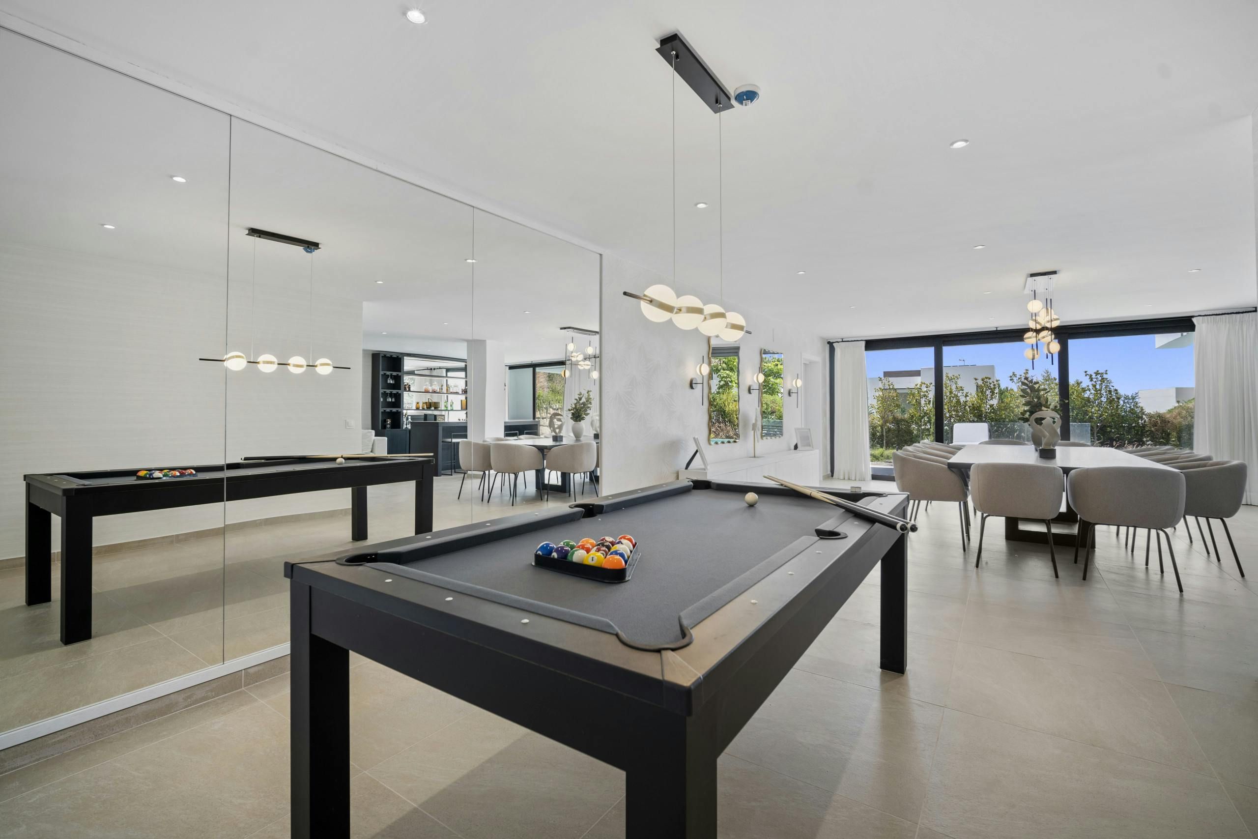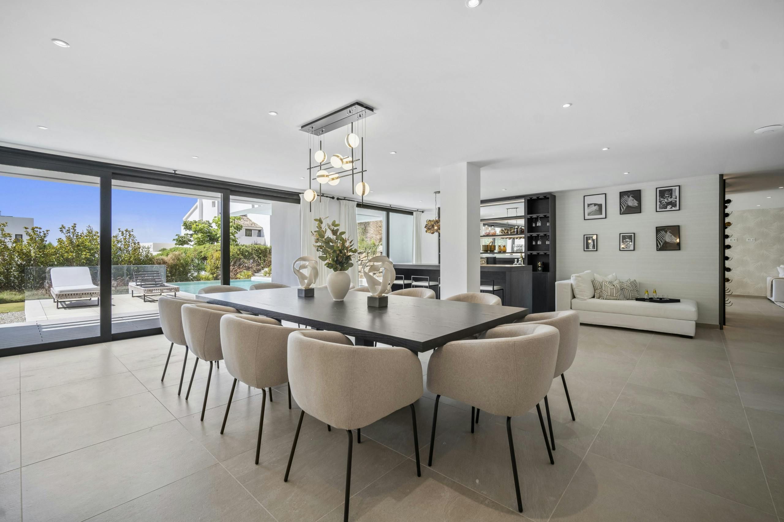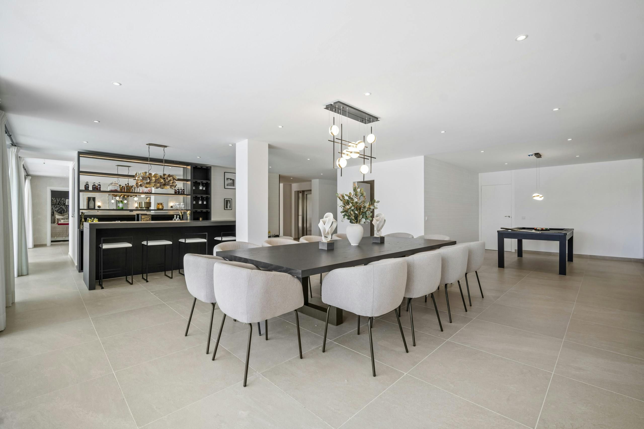 This impressive villa in Benahavís is all set up for a truly unique experience and a memorable stay in Southern Spain’s Costa del Sol. There are three floors of entertainment space here, with a lift to transport you to every level. So whether you’re cooling off in the pool, shaking up cocktails in the bar, dining alfresco or playing a few games of pool, you’re never out of options here. And if you’d like to leave the cooking to a professional, why not have your host arrange a catered dinner?