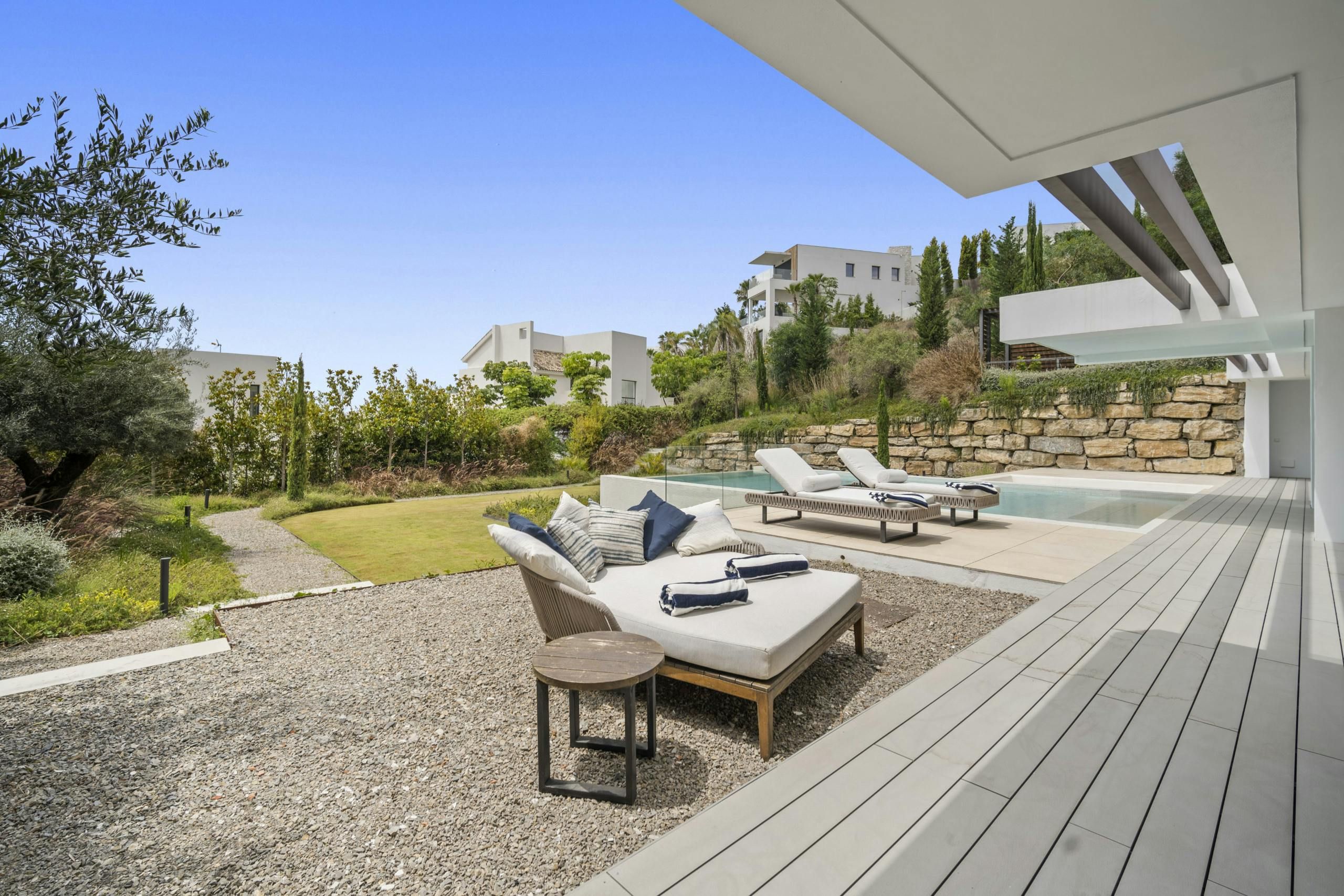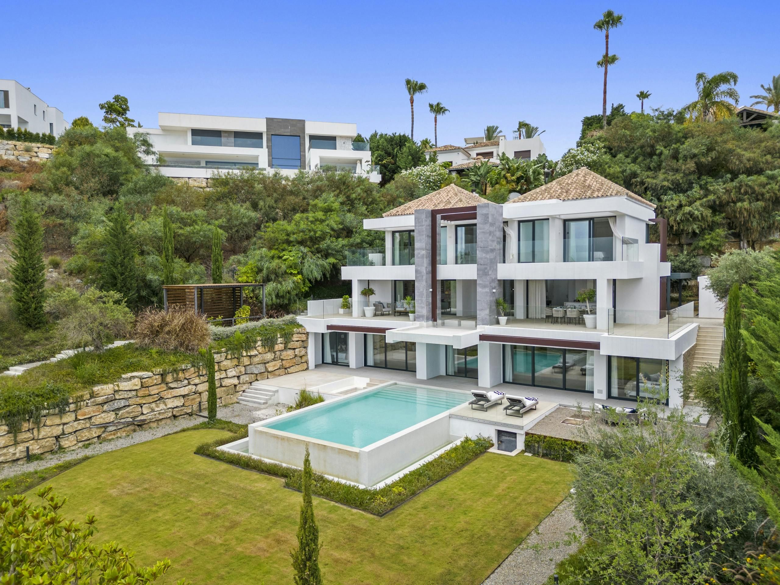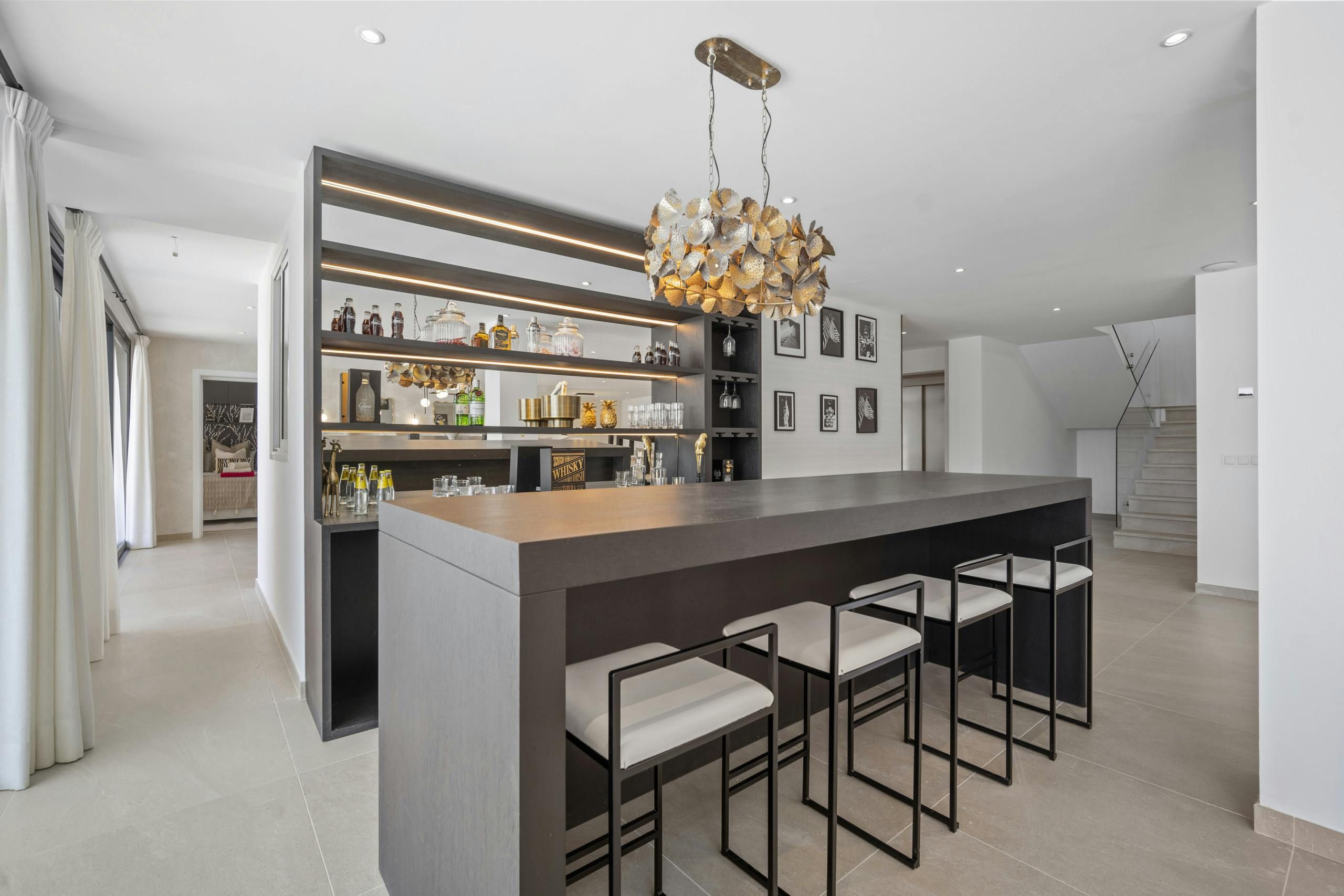 This impressive villa in Benahavís is all set up for a truly unique experience and a memorable stay in Southern Spain’s Costa del Sol. There are three floors of entertainment space here, with a lift to transport you to every level. So whether you’re cooling off in the pool, shaking up cocktails in the bar, dining alfresco or playing a few games of pool, you’re never out of options here. And if you’d like to leave the cooking to a professional, why not have your host arrange a catered dinner?